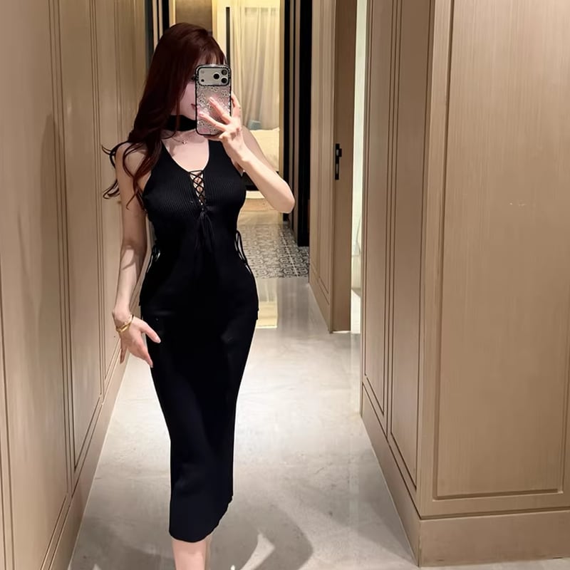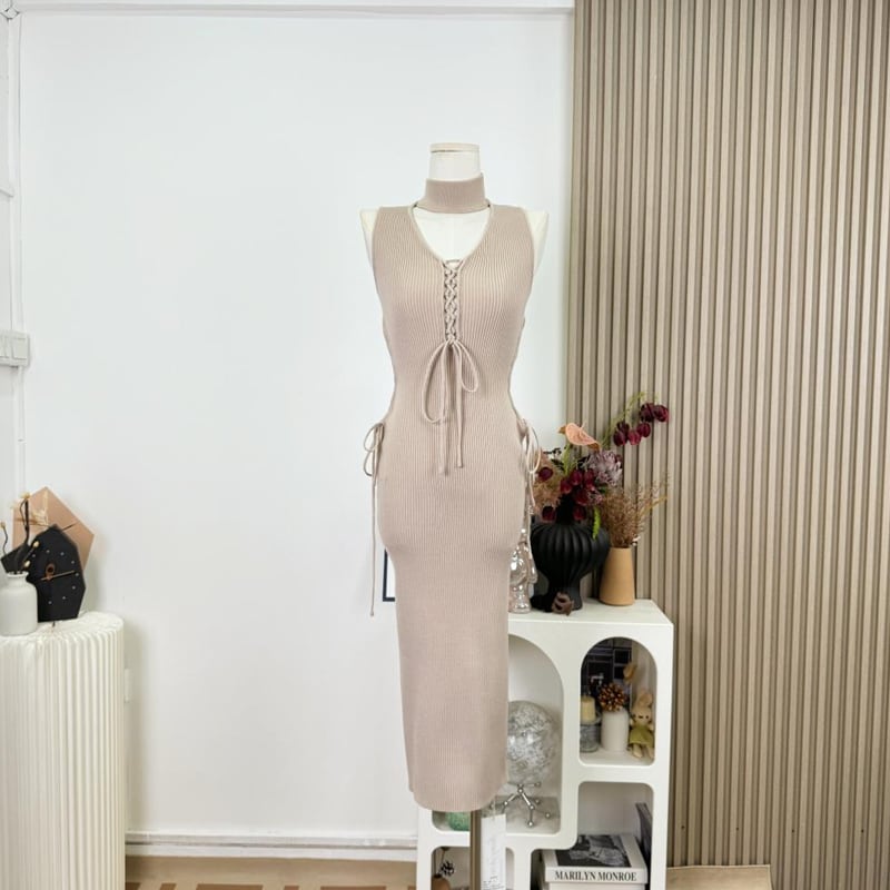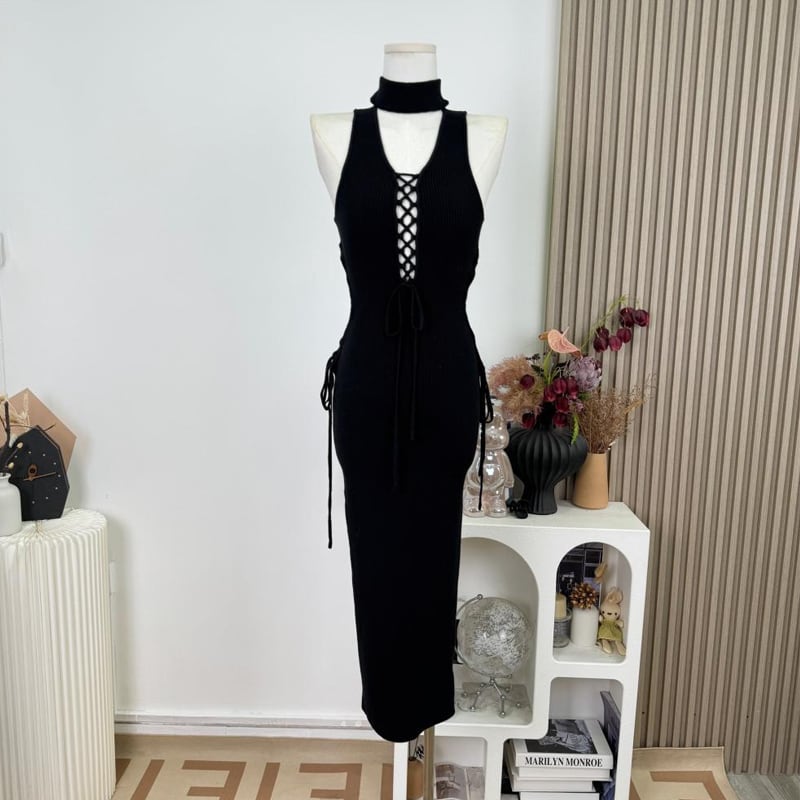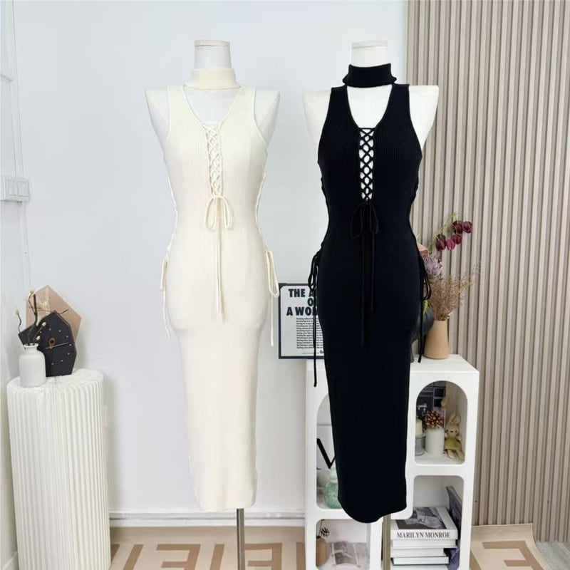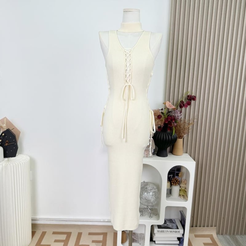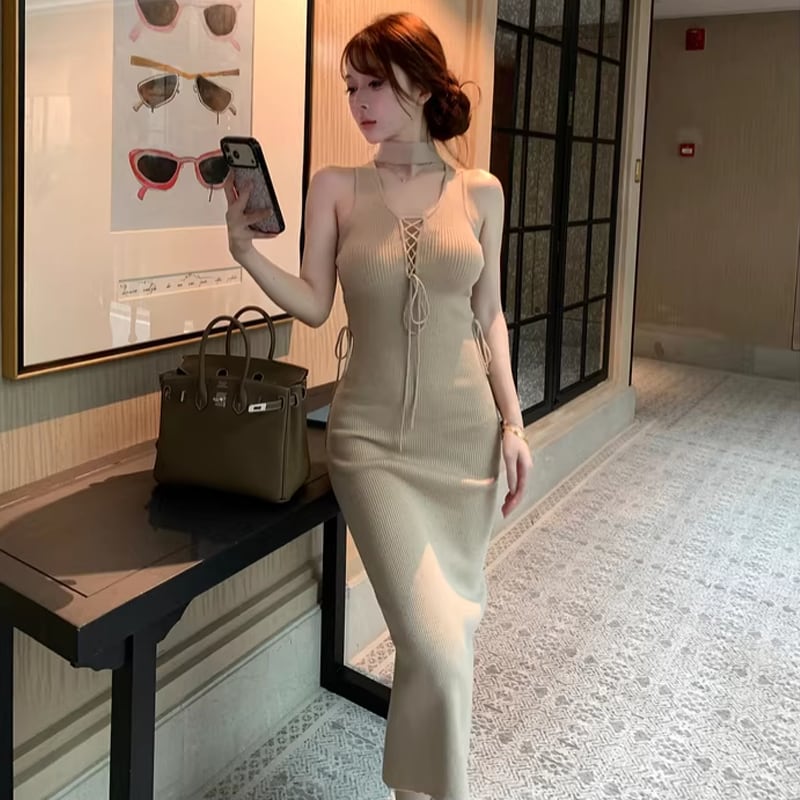 【dress】ストラップデザインロングニットキャミワンピース Q7803