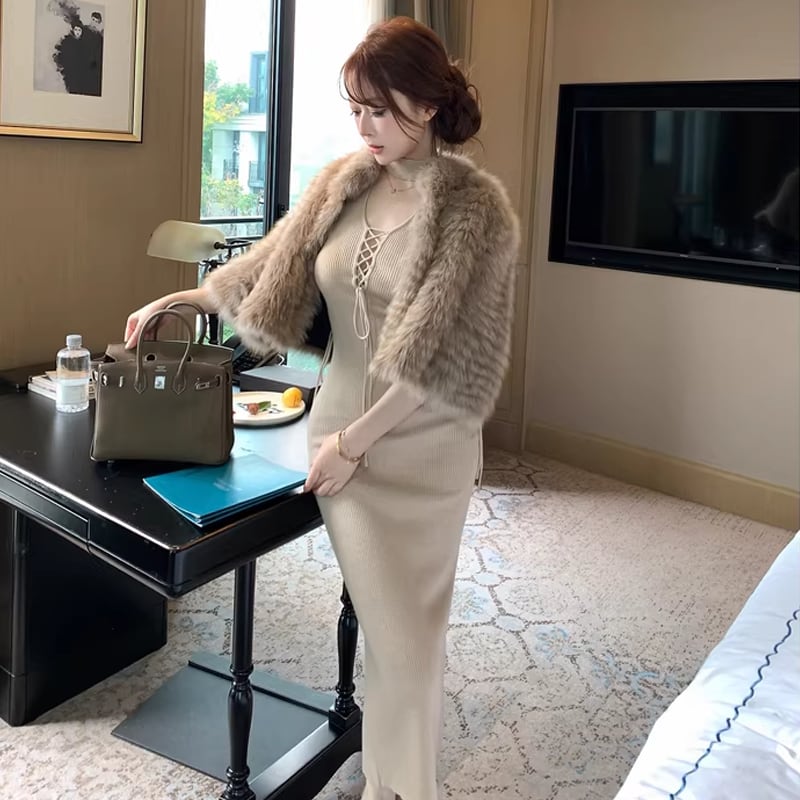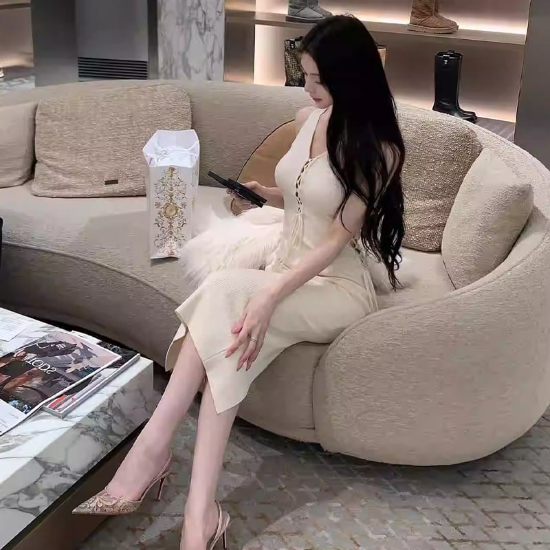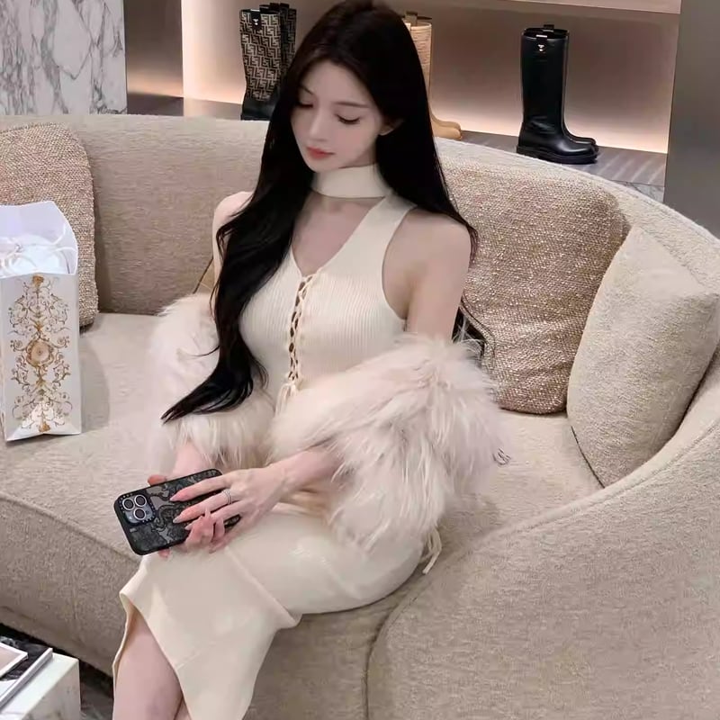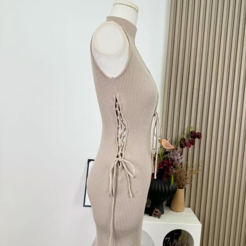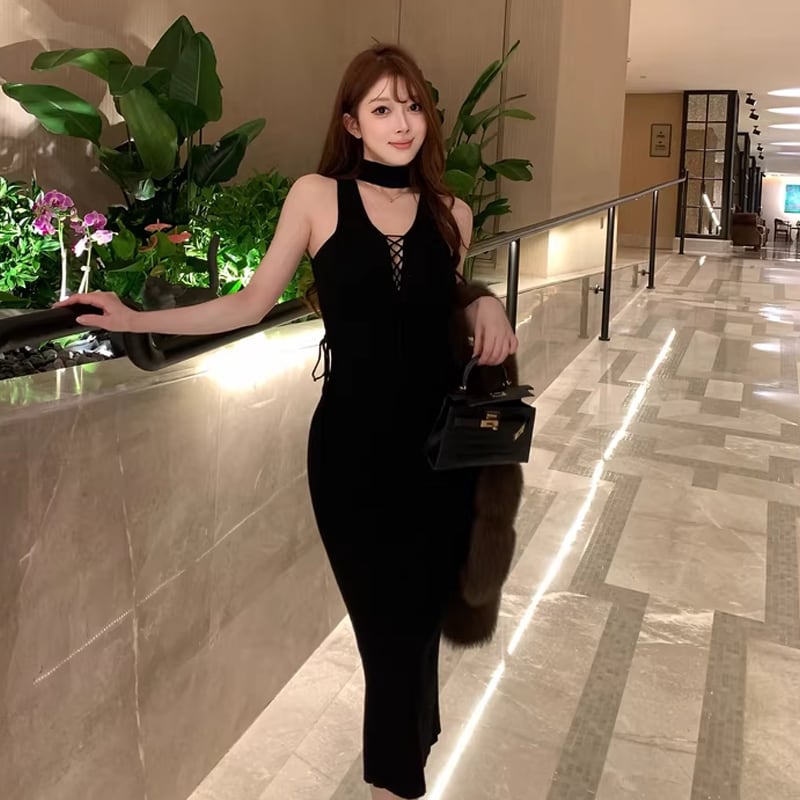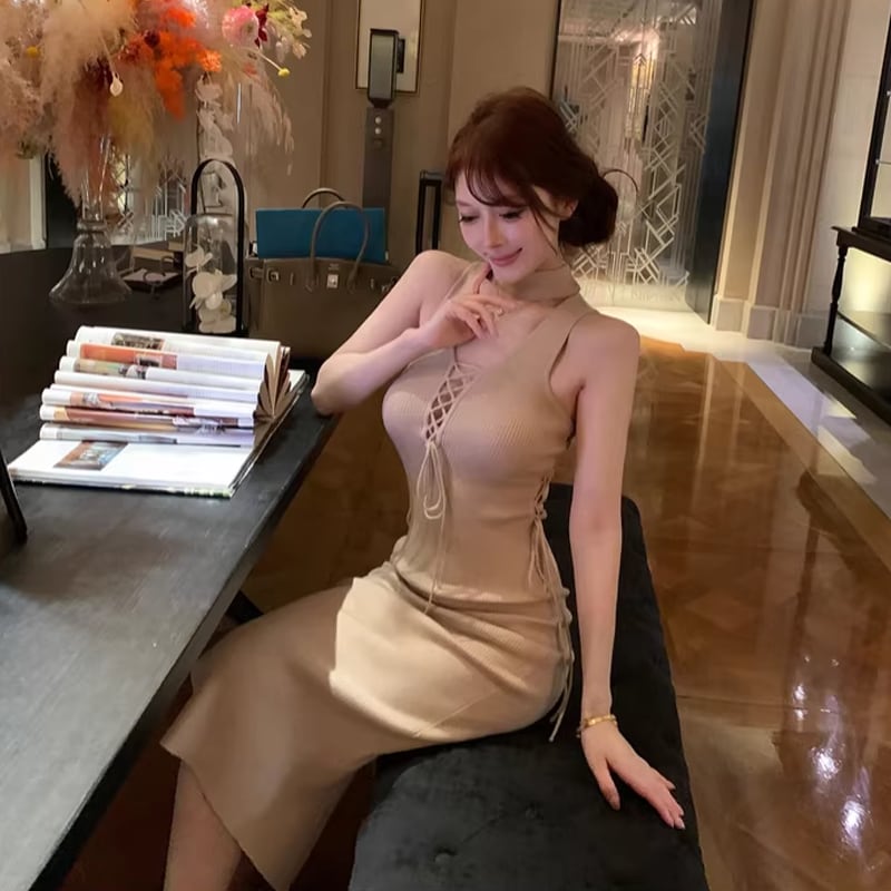 【dress】ストラップデザインロングニットキャミワンピース Q7803