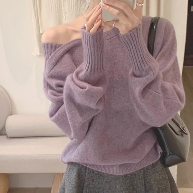【tops】クロスネックニットトップス Q7826