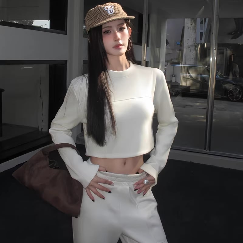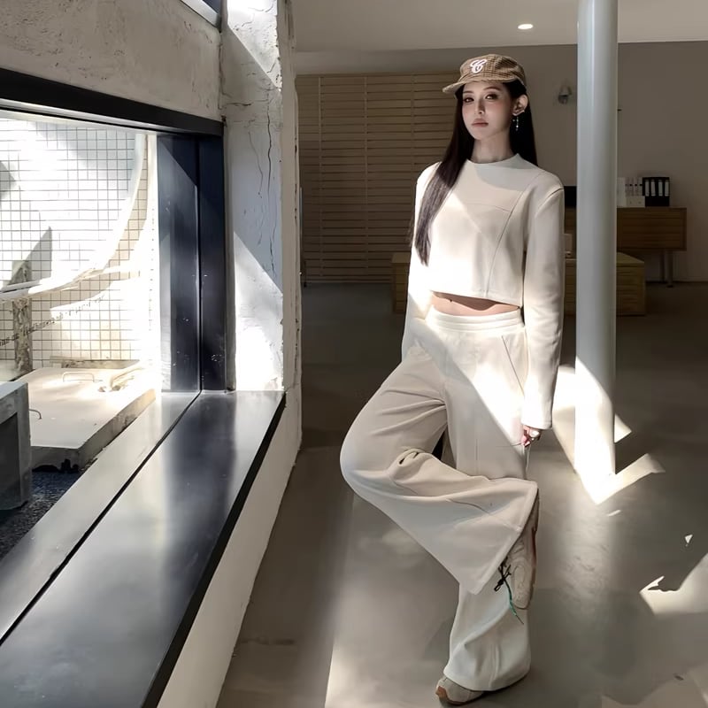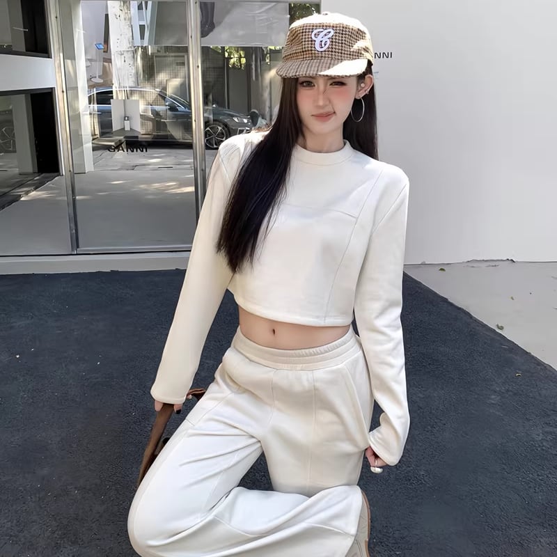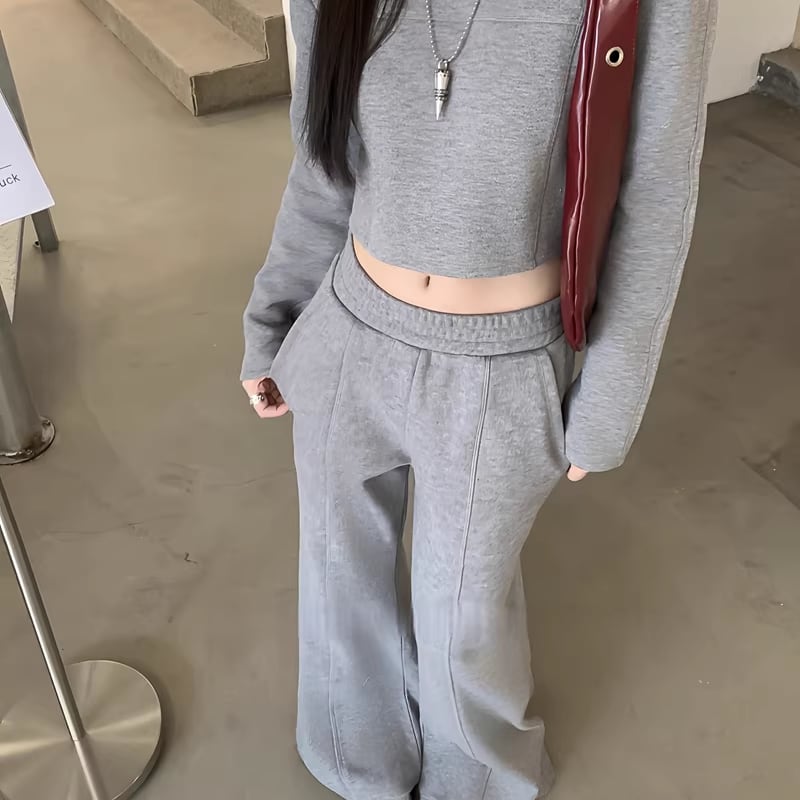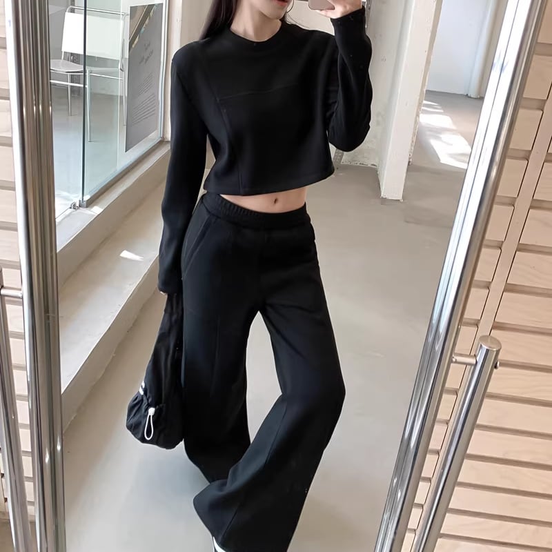【set】ショート丈トップス×ワイドパンツセット Q7847