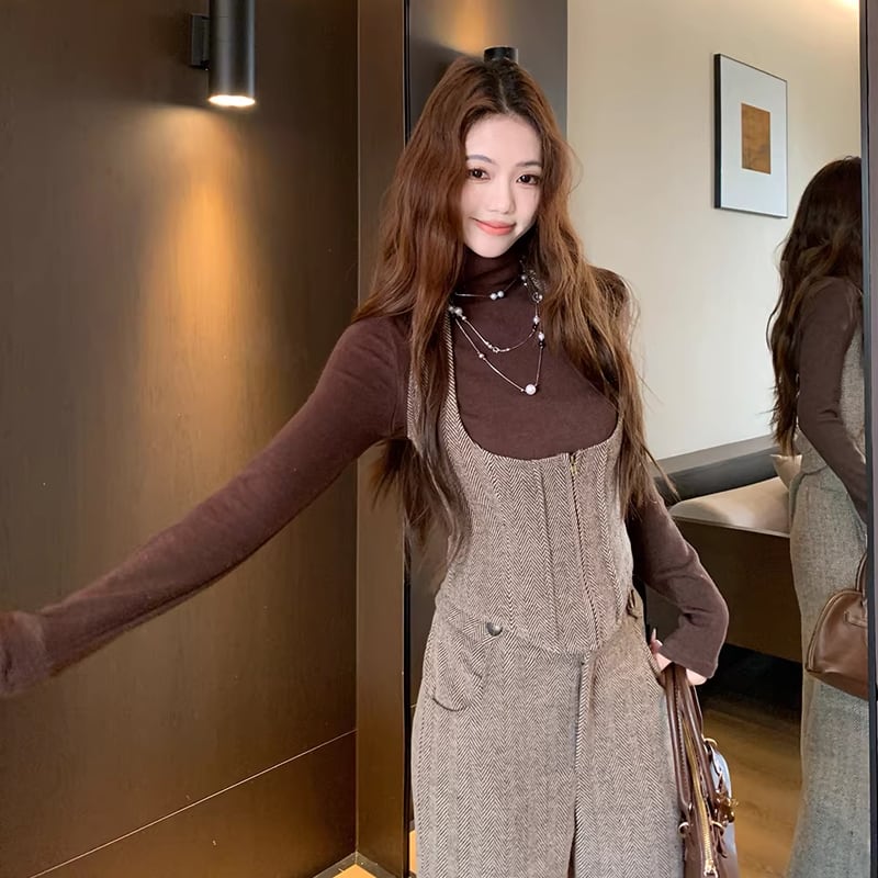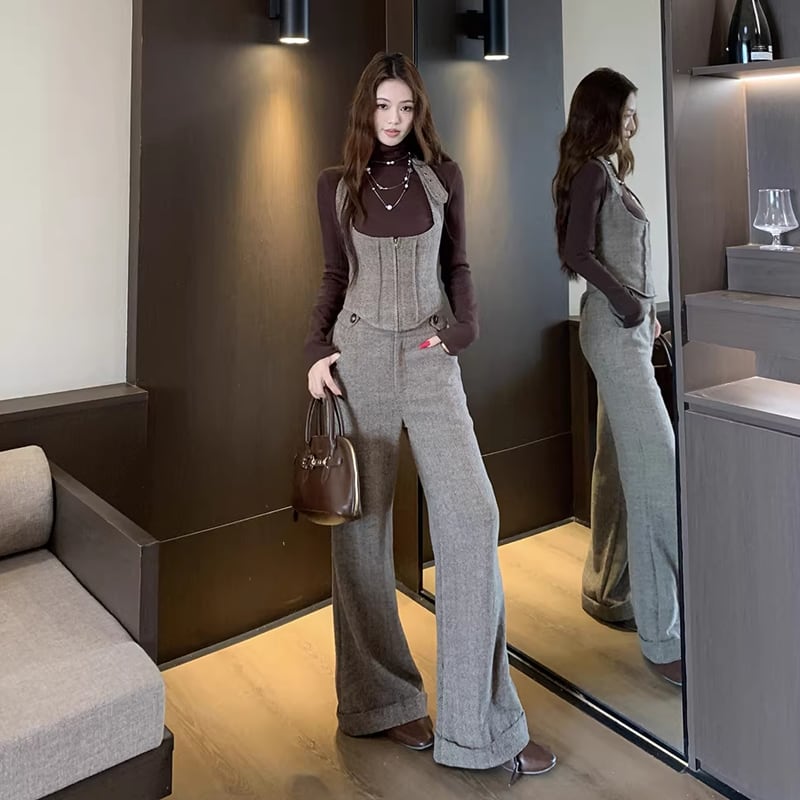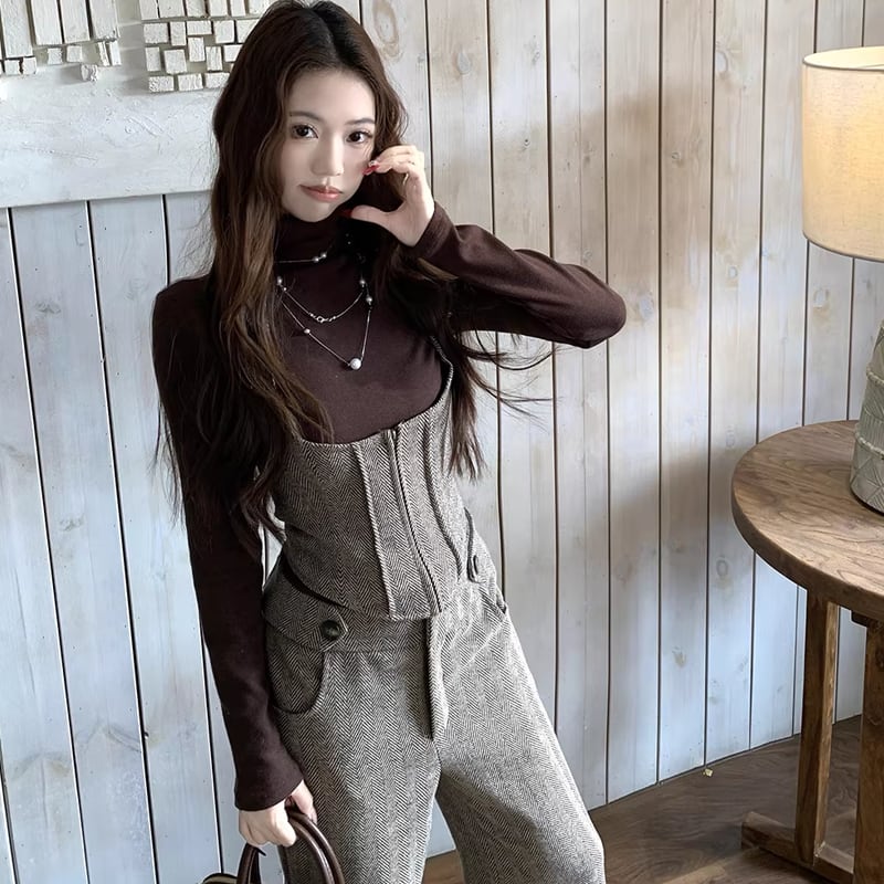 【set】スタントカラートップス×ベスト×ワイドパンツ3点セット Q7849