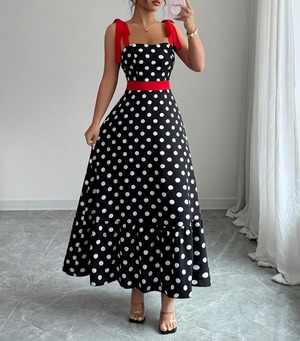 【dress】ドット柄キャミワンピース Q7856