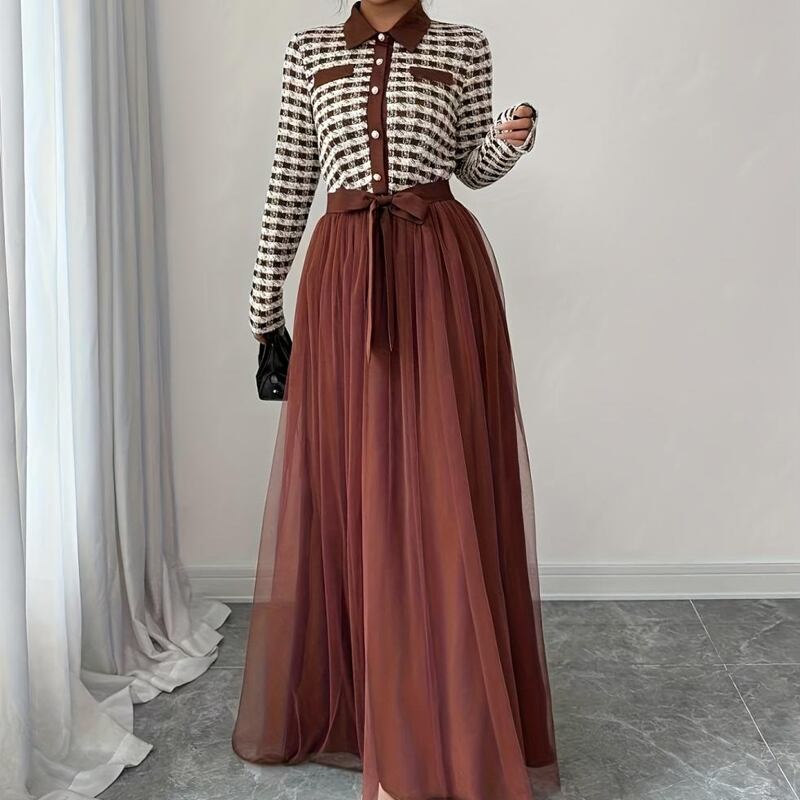 【dress】チュールドッキングロングワンピース Q7858