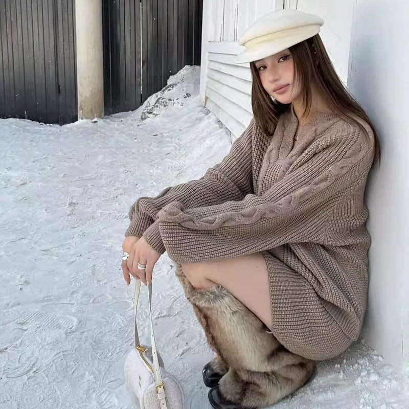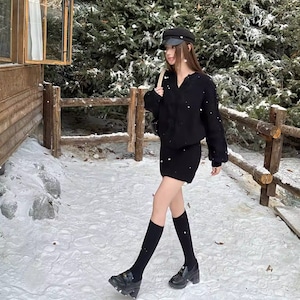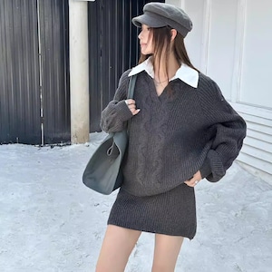 【set】フェイクレイヤードニットトップス×ミニスカートセット Q7864