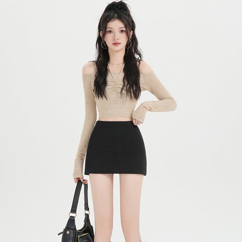 【bottoms】3色展開タイトスカート付きショートパンツ Q7869