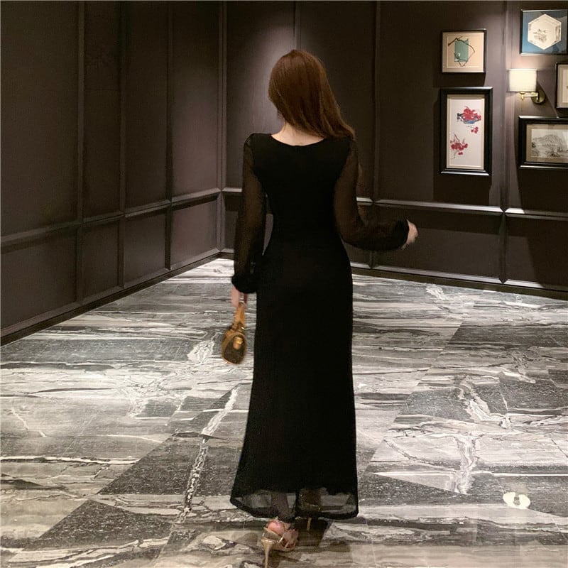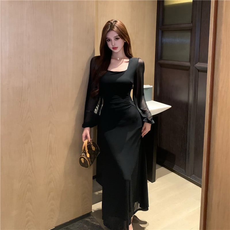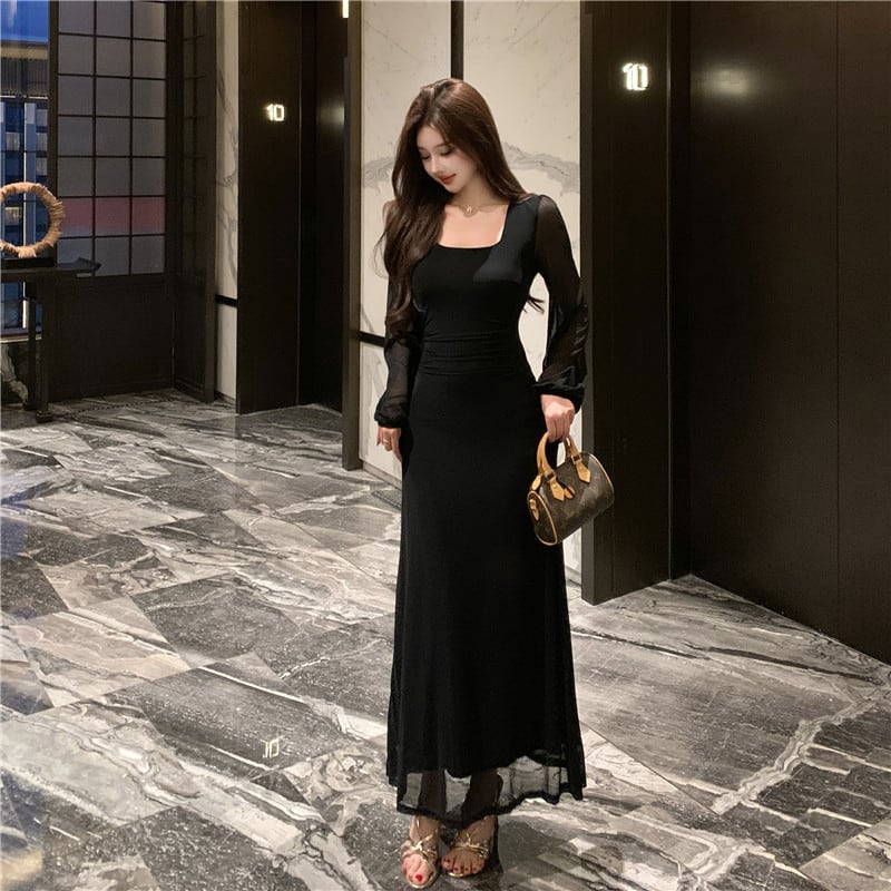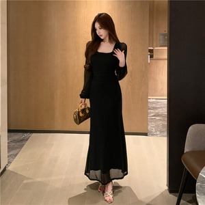 【dress】チュールドッキングロングワンピース Q7872