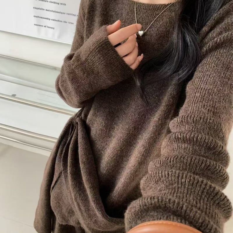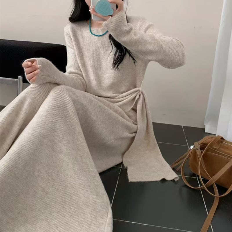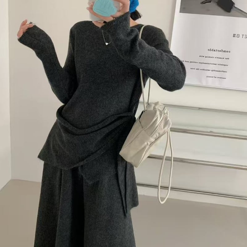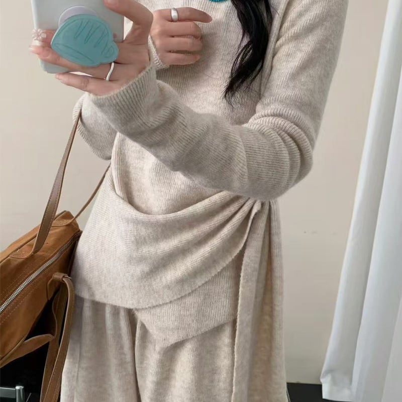 【set】4色展開ニットトップス×ワイドパンツセット Q7883