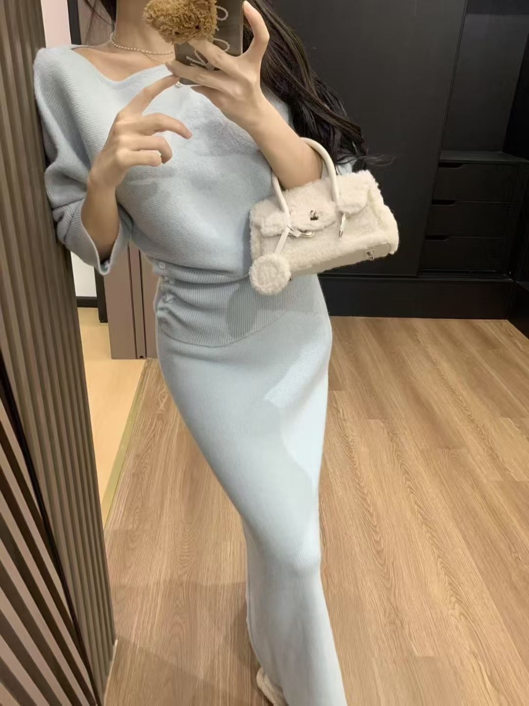 【set】8色展開ニットトップス×ロングスカートセット Q7887