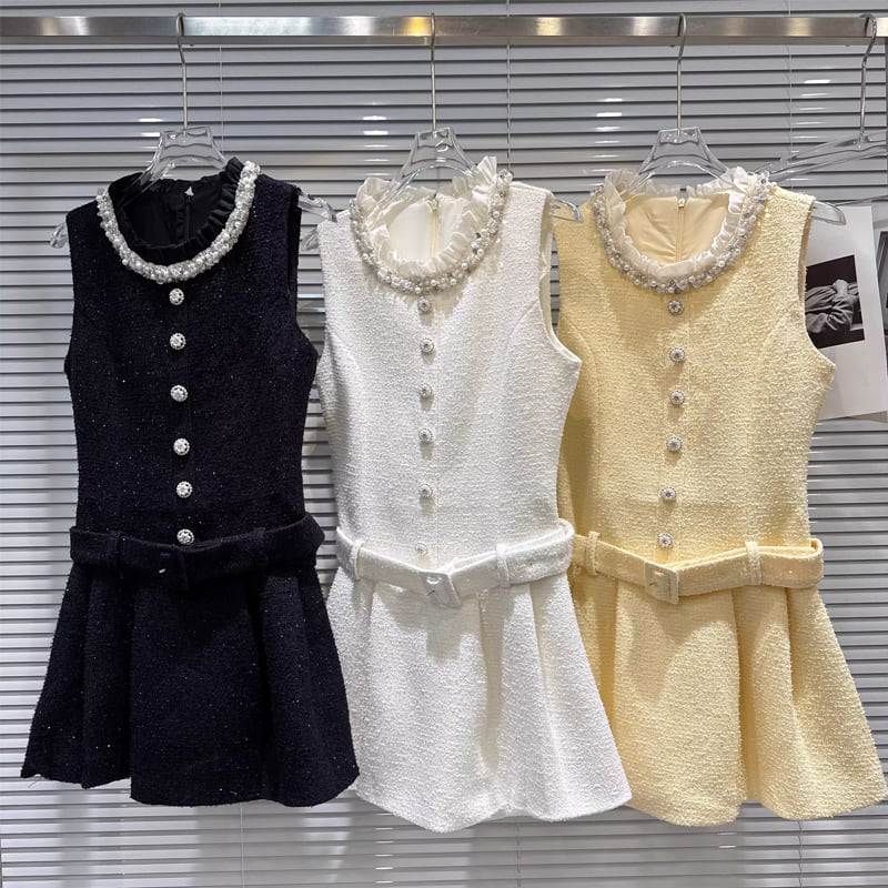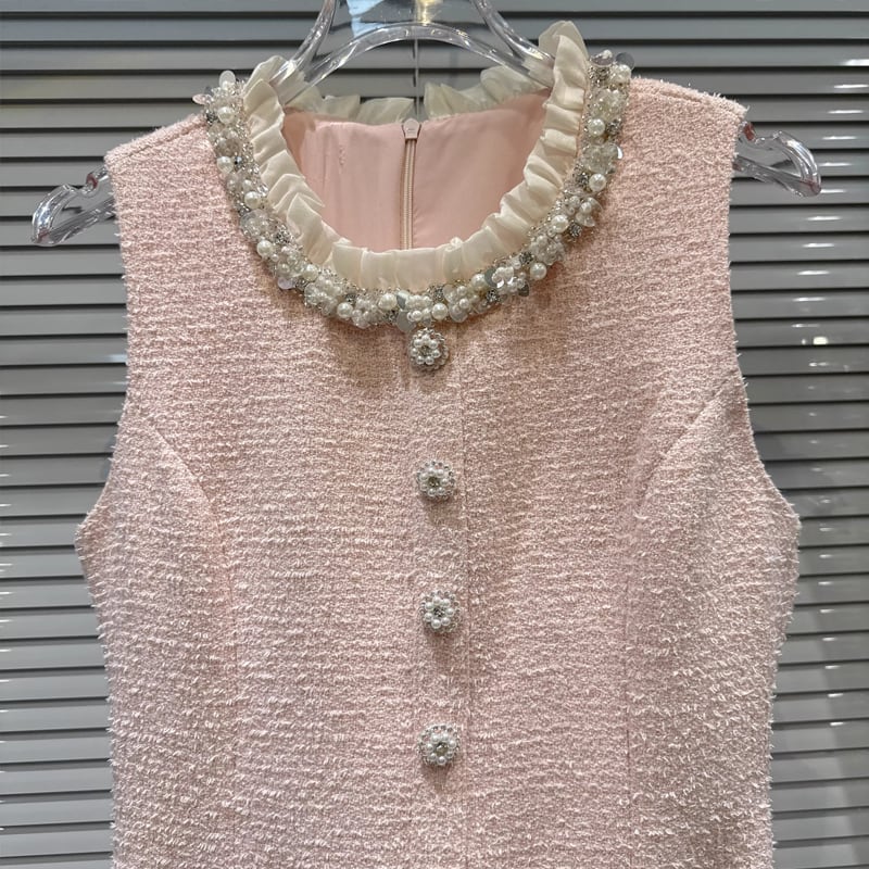 【dress】ツイードレース付きベストワンピース Q7891