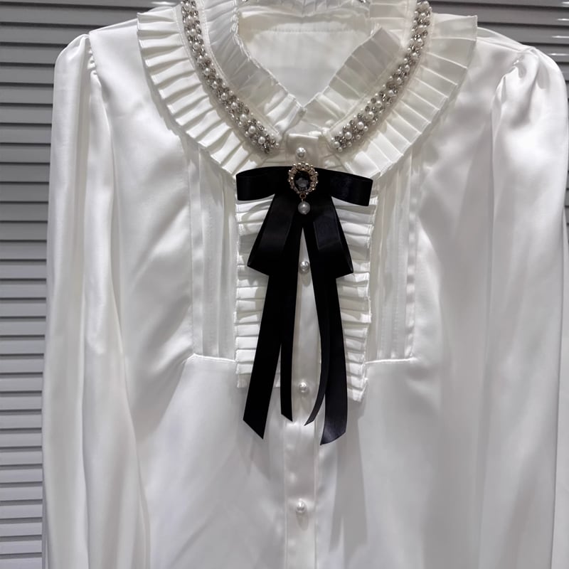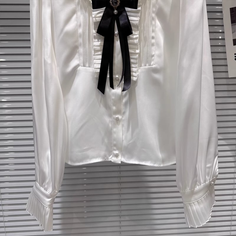 【tops】リボン付きギャザーフリルシャツ Q7893