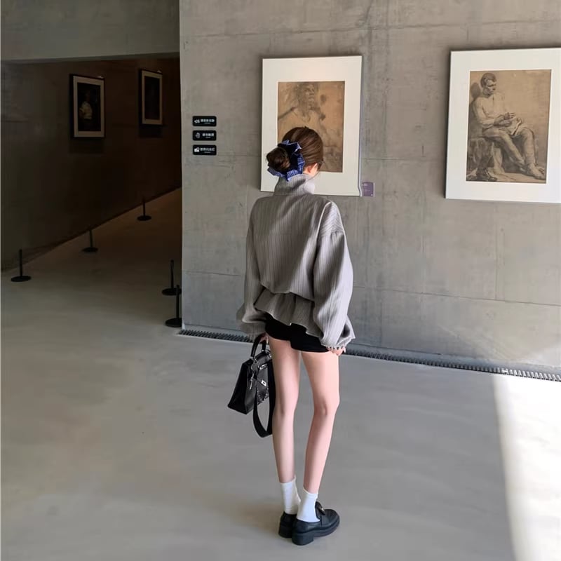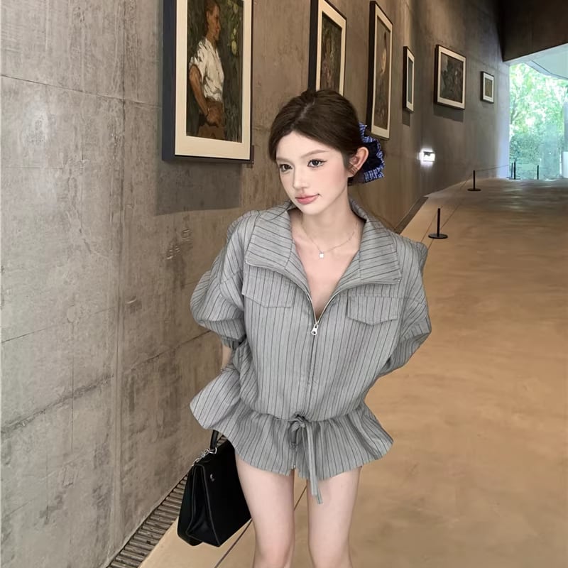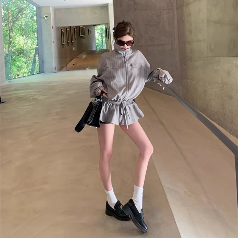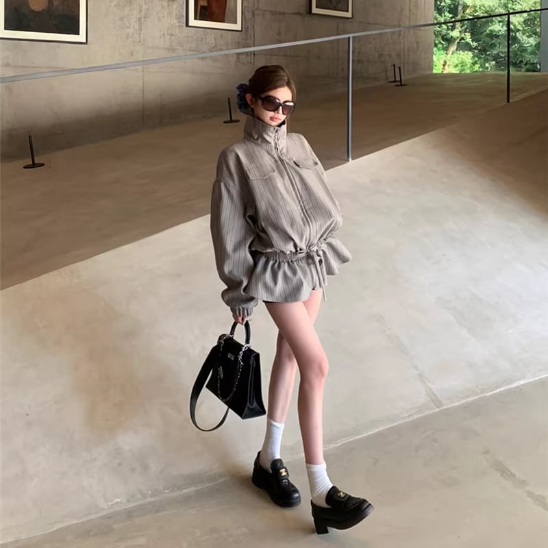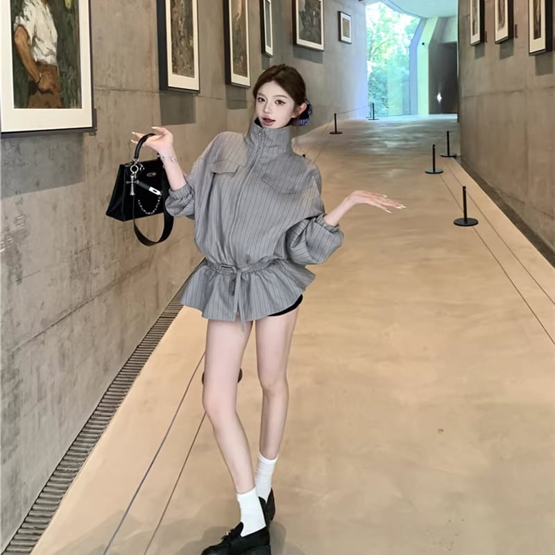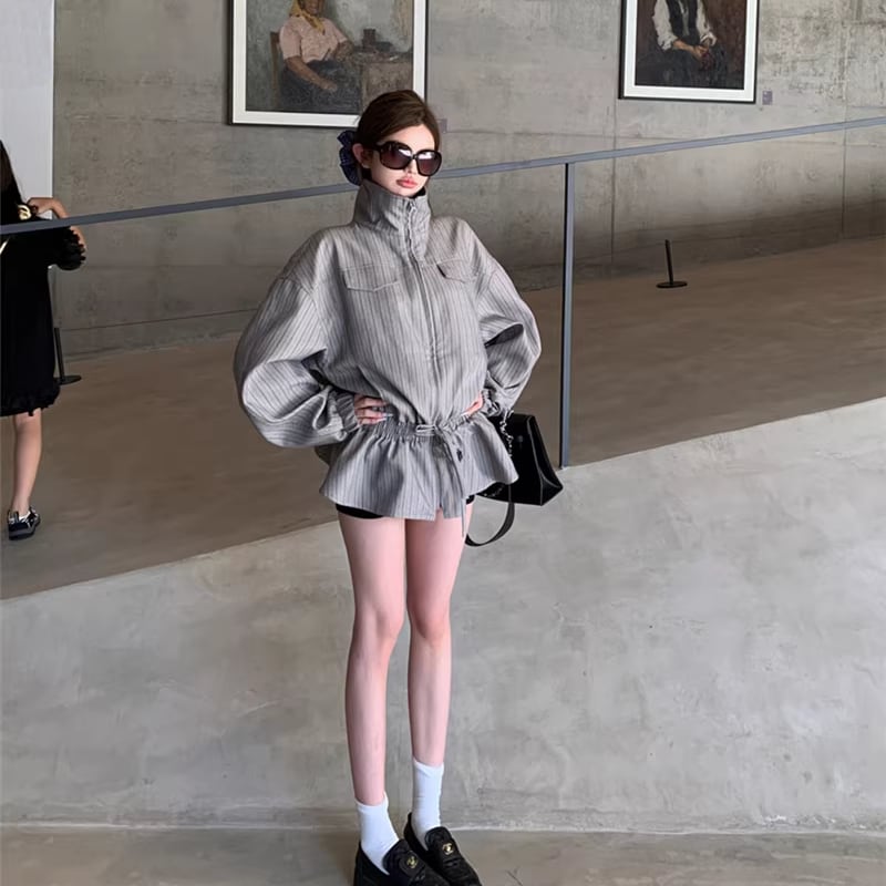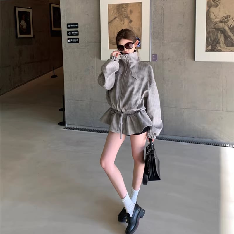 【outer】ストライプ柄フレアコート Q7910