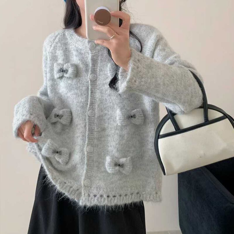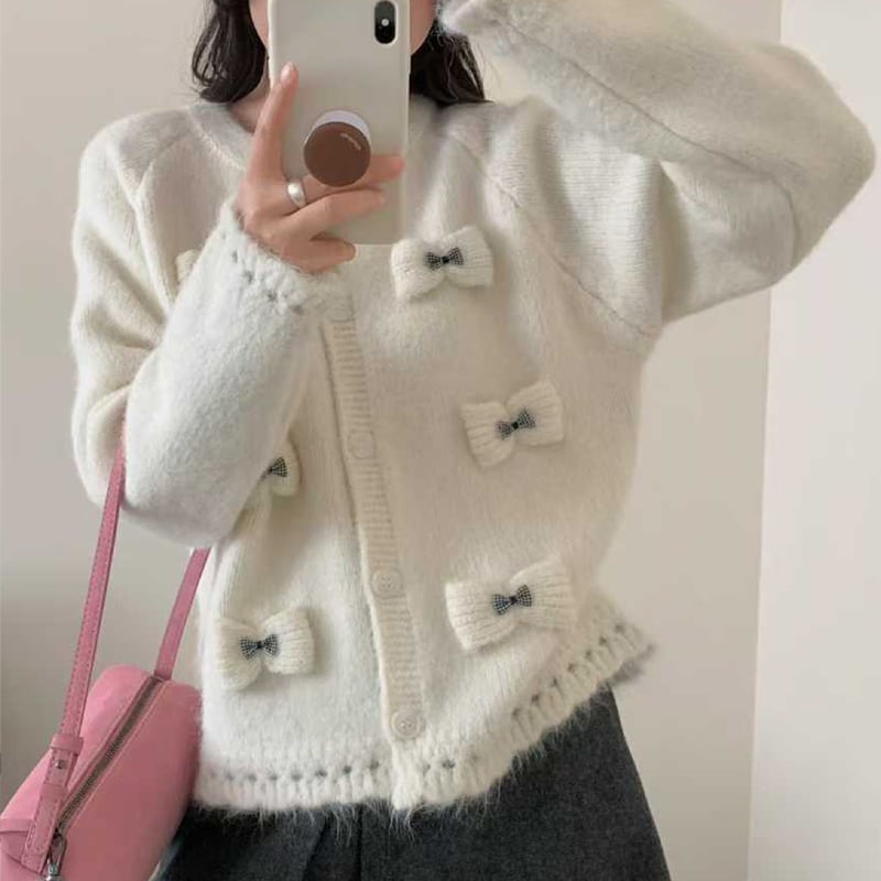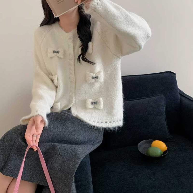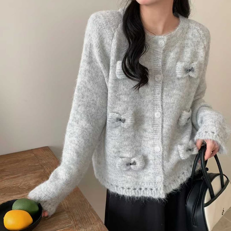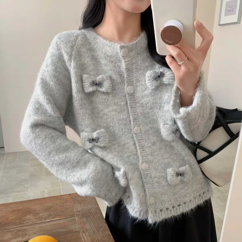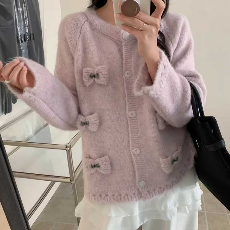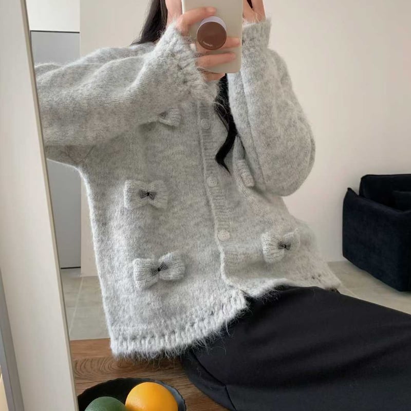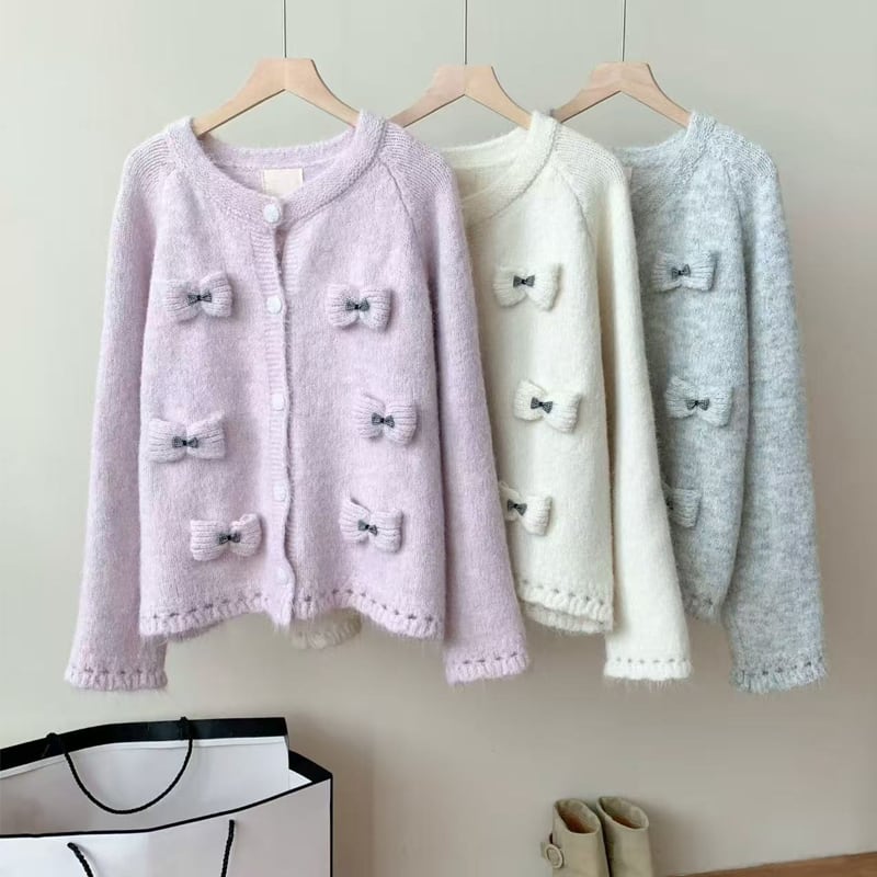 【outer】立体感リボンニットカーディガン Q7920