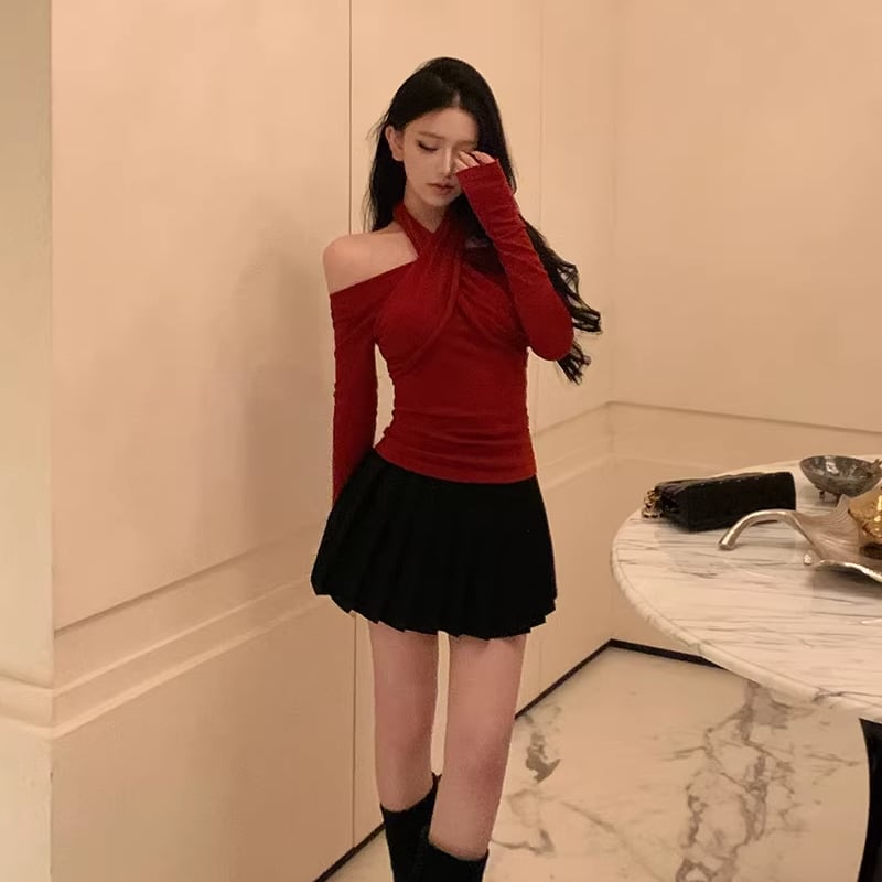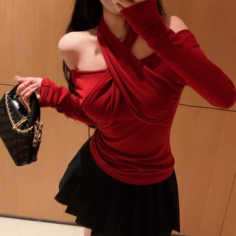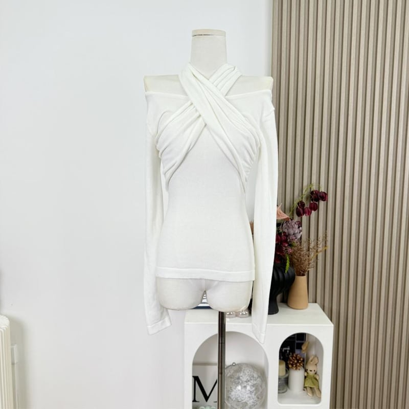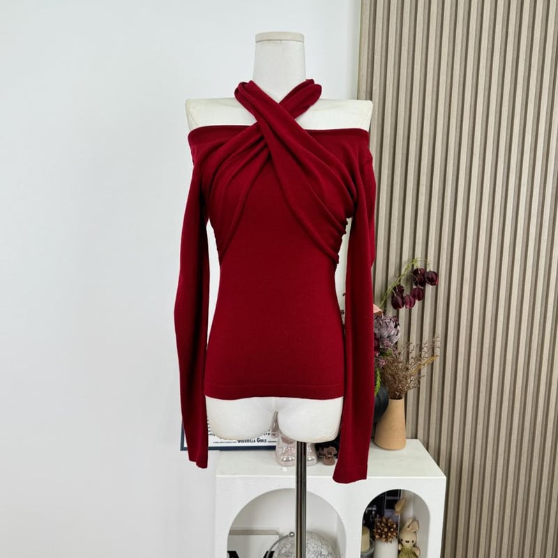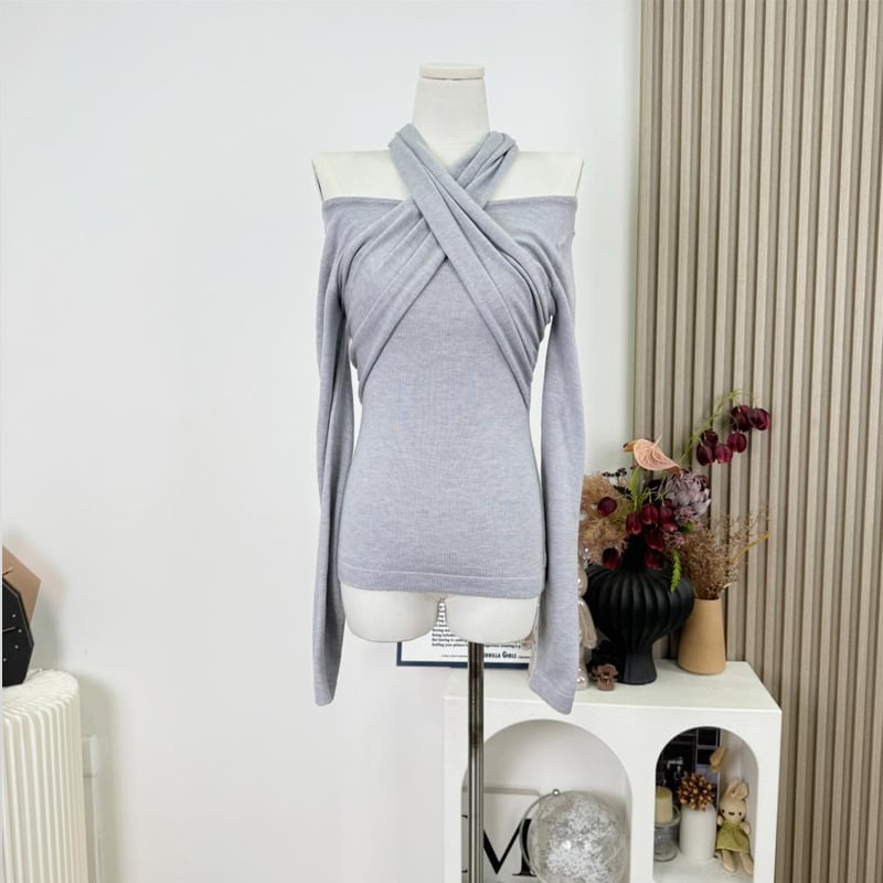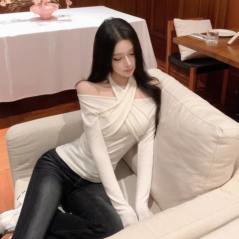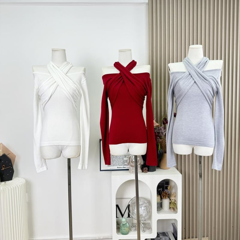 【tops】3色展開クロスホルターネックトップス Q7922