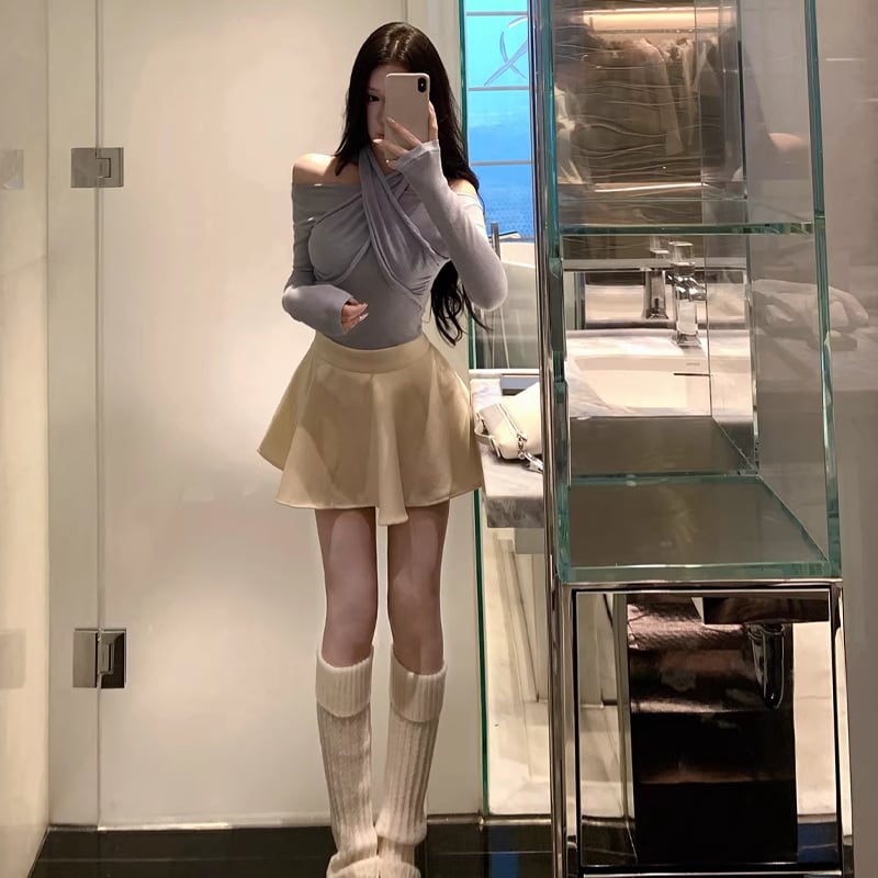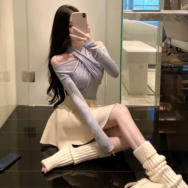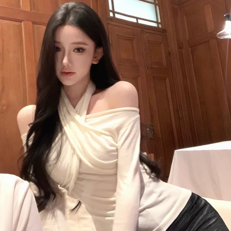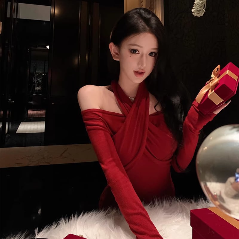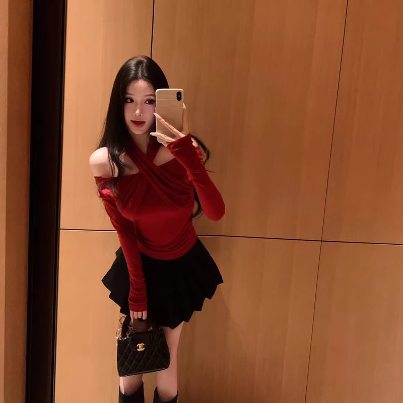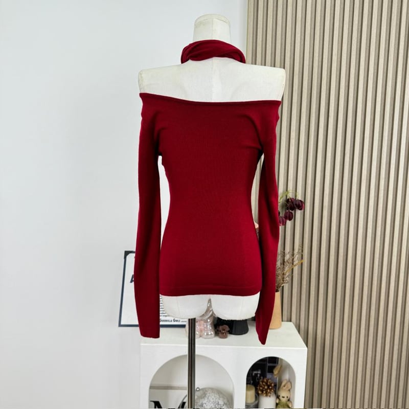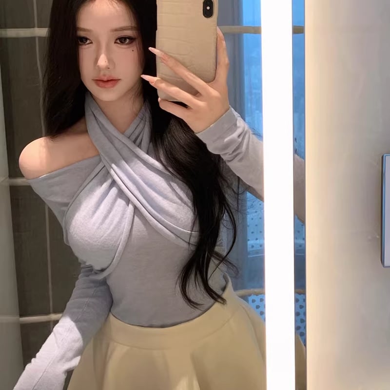 【tops】3色展開クロスホルターネックトップス Q7922