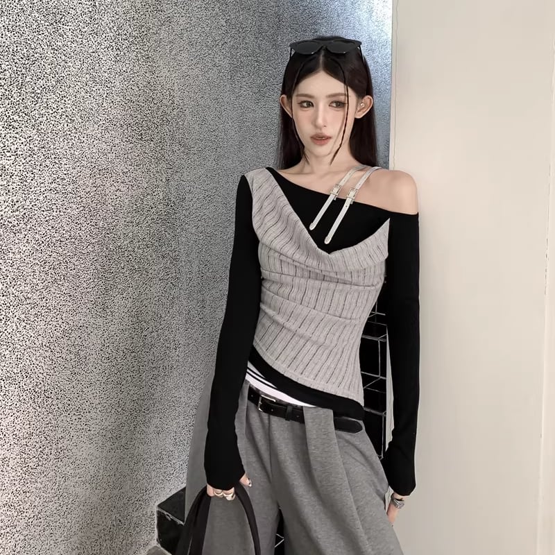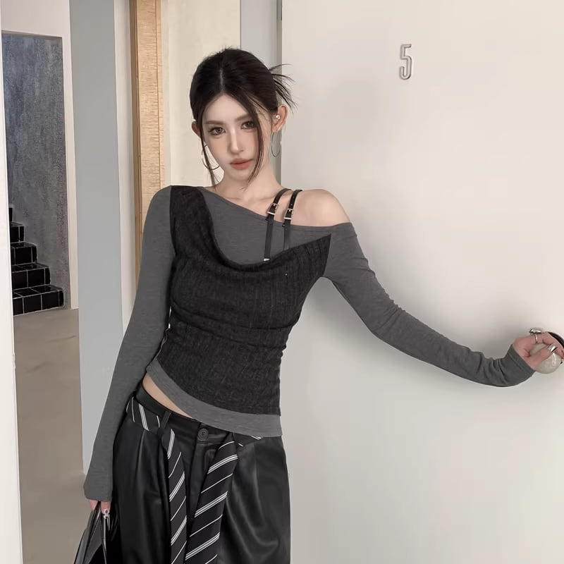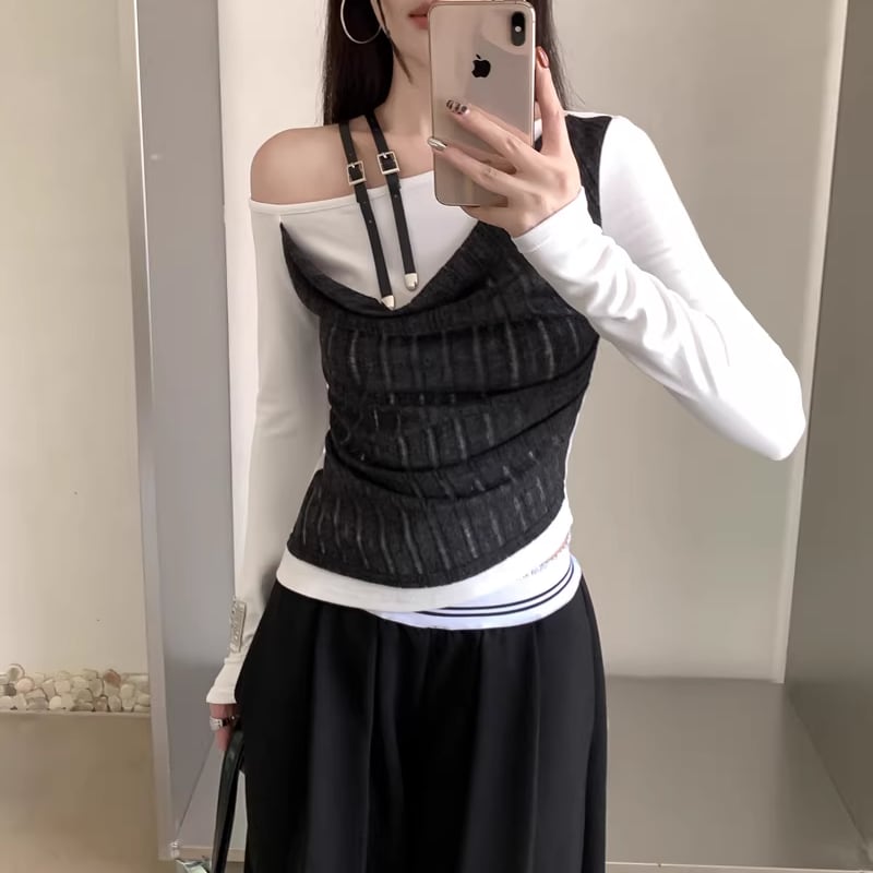 【tops】フェイクレイヤードトップス Q7940