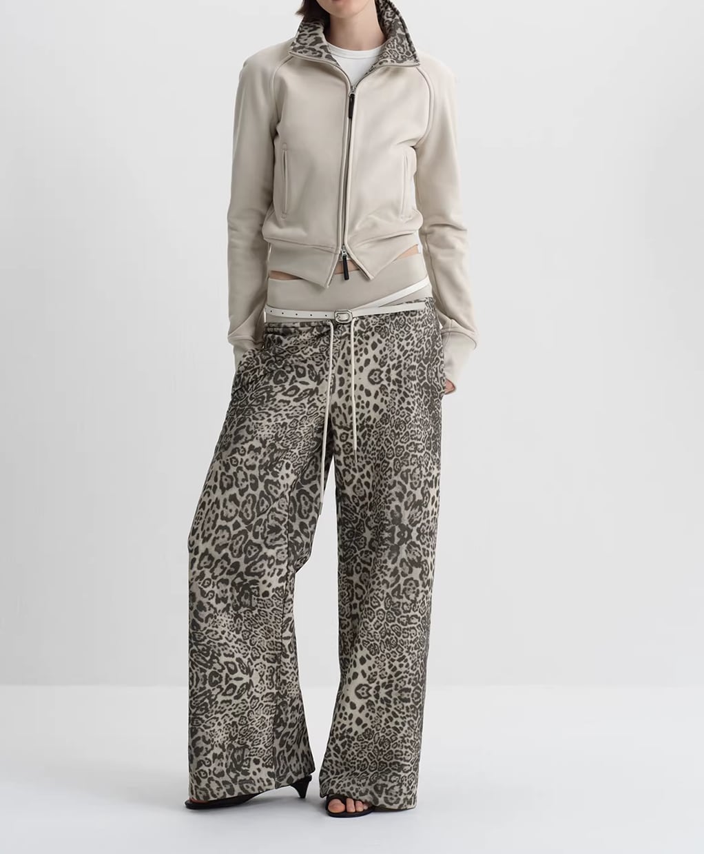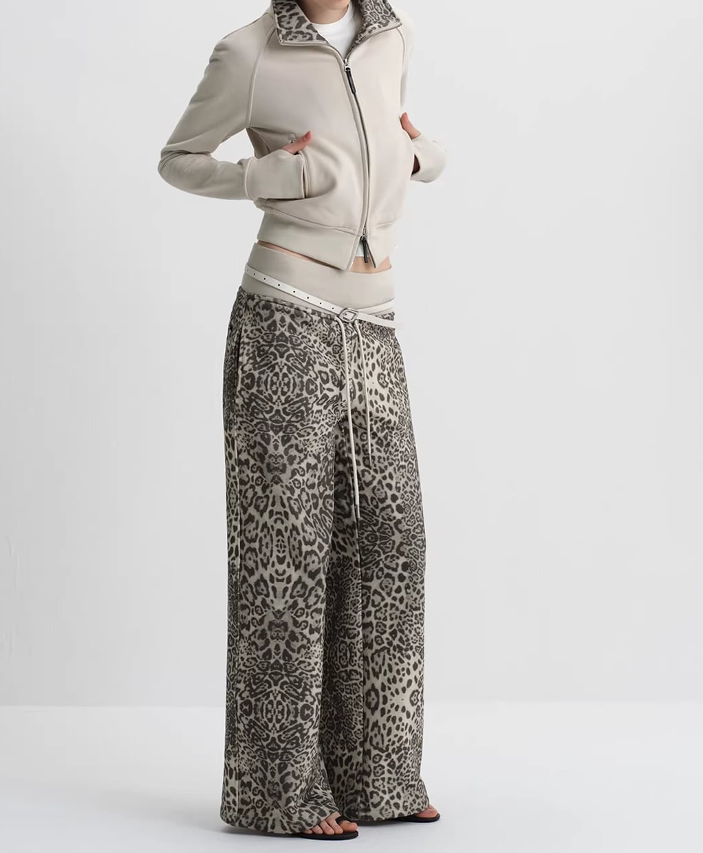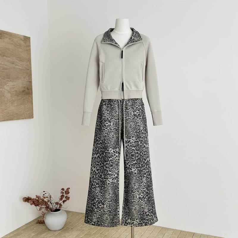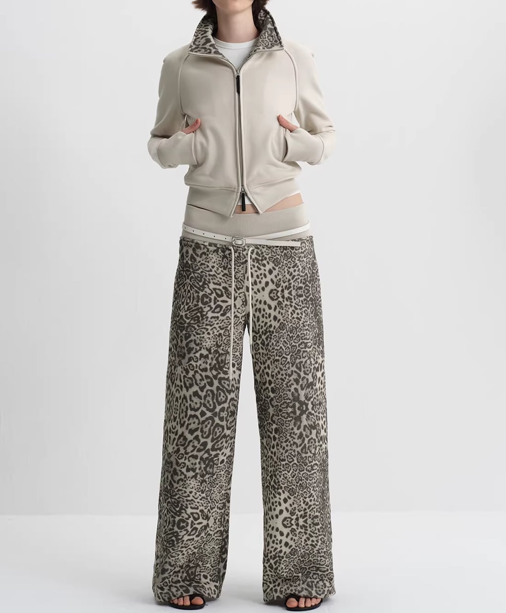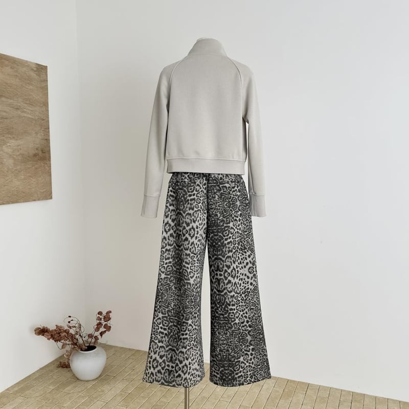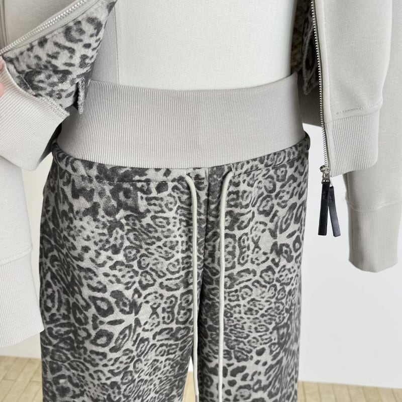 【set】裏起毛ヒョウ柄ドッキングコート×ワイドパンツセット Q7945