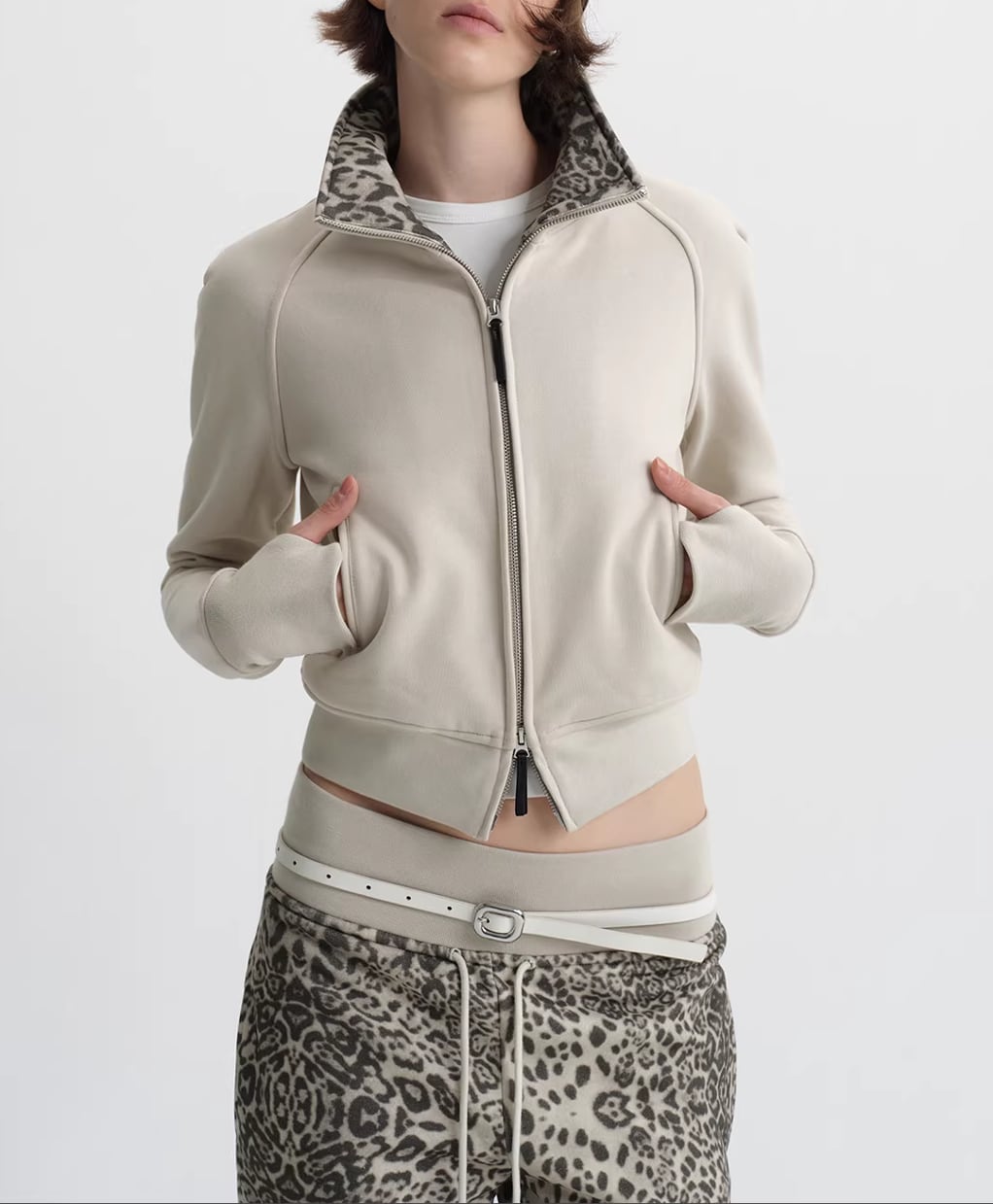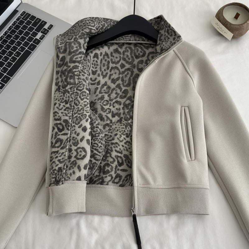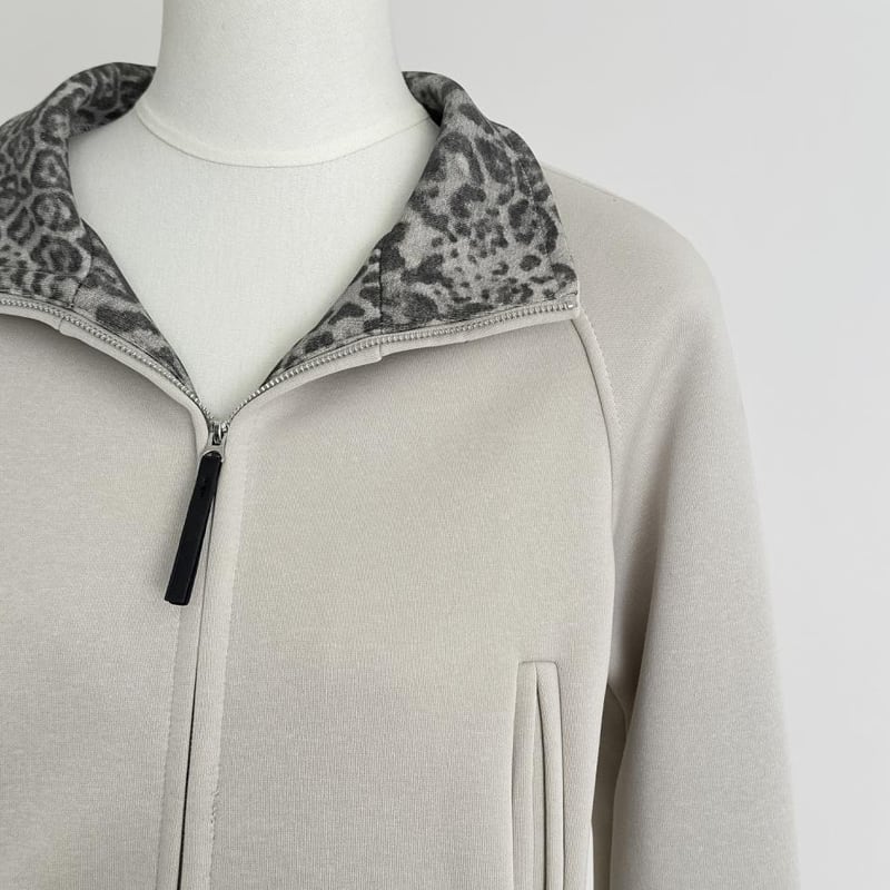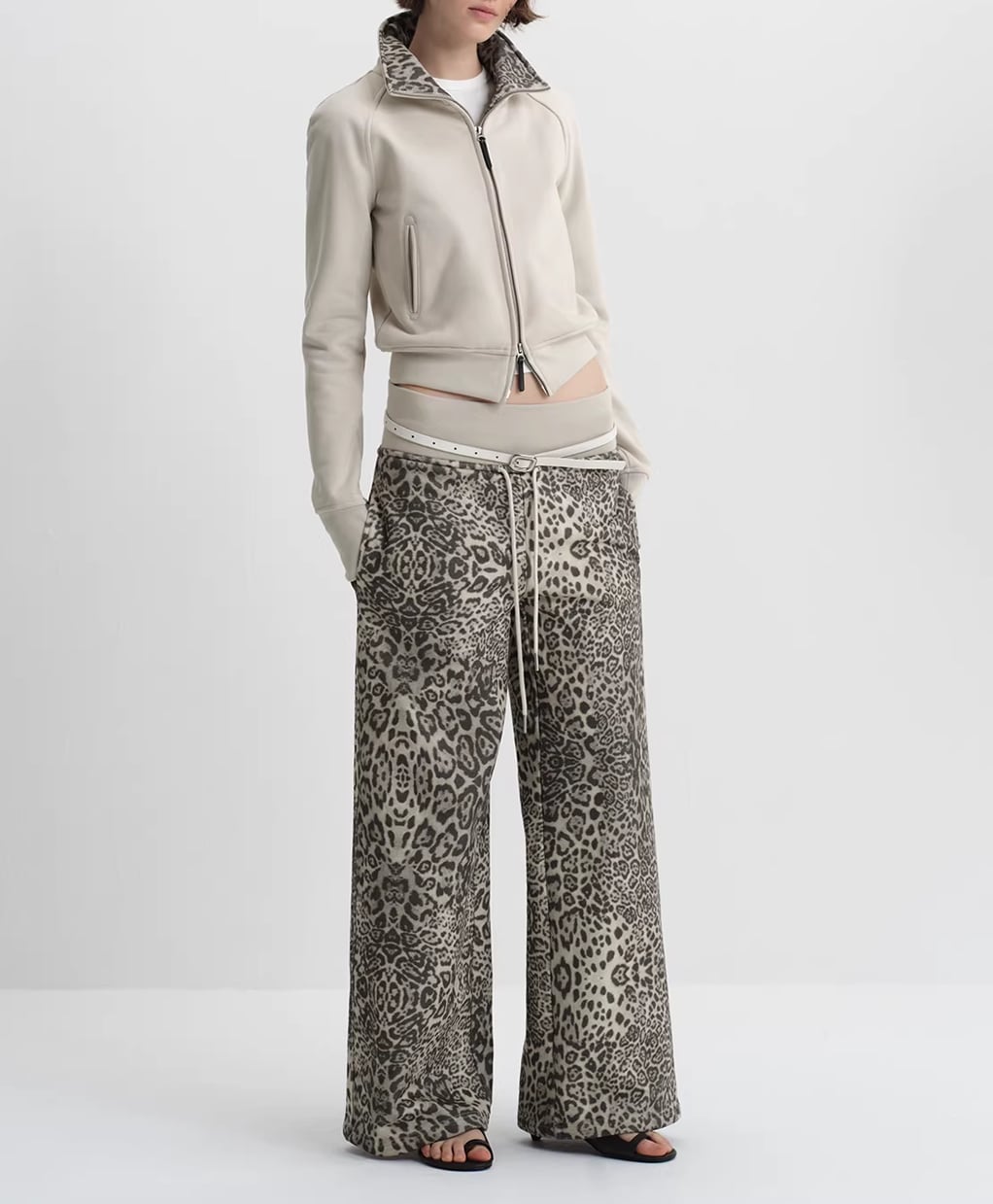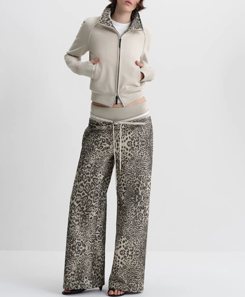【set】裏起毛ヒョウ柄ドッキングコート×ワイドパンツセット Q7945