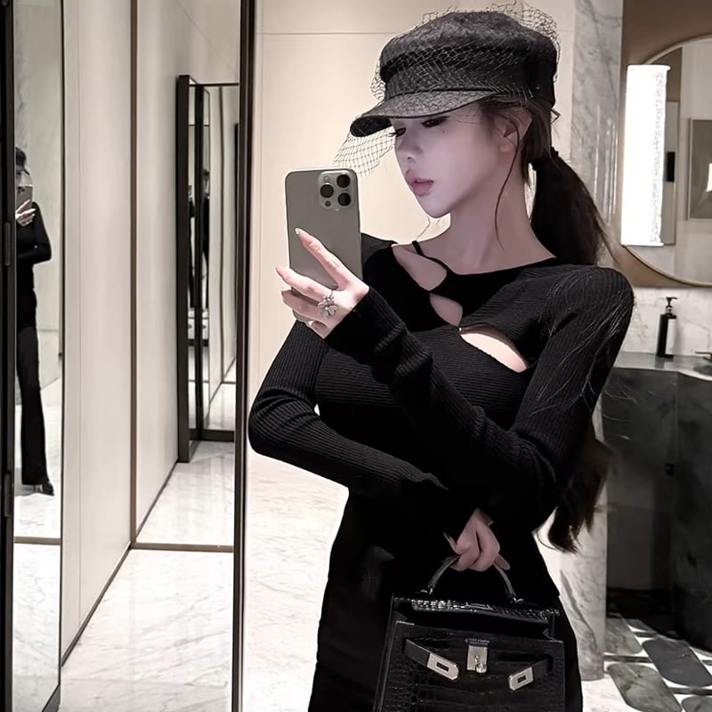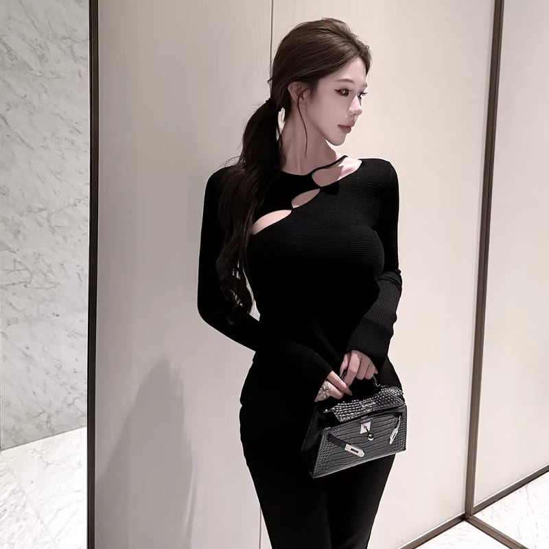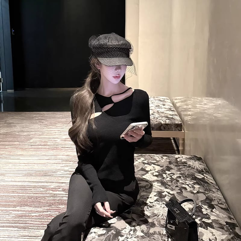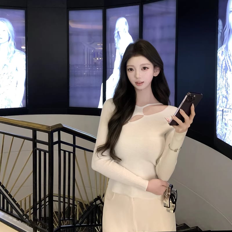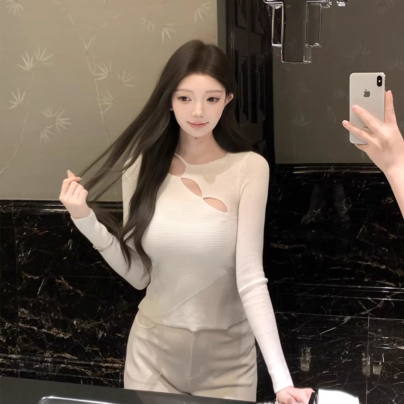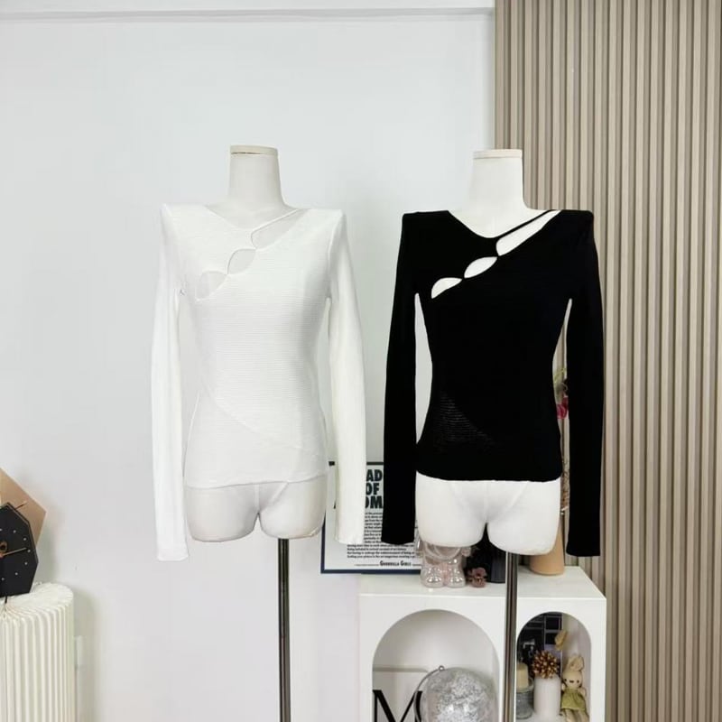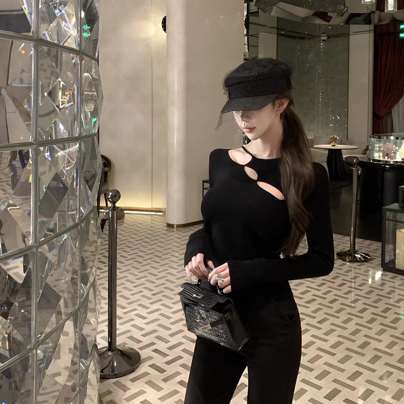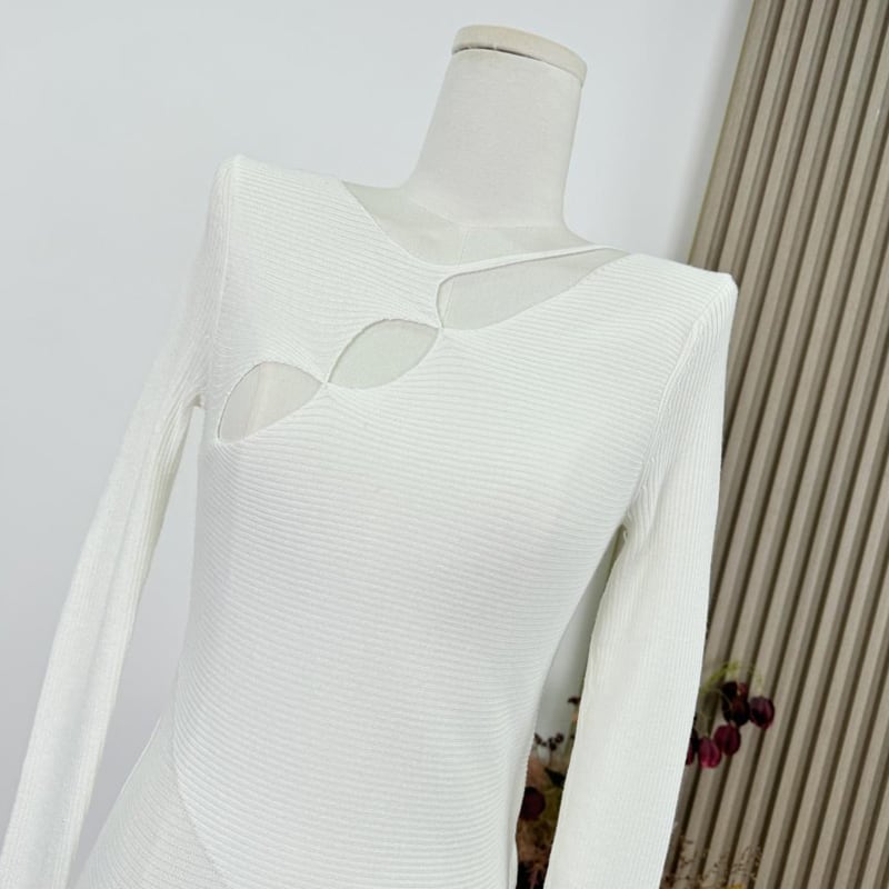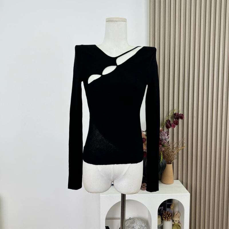【tops】フロントカットニットトップス Q7949