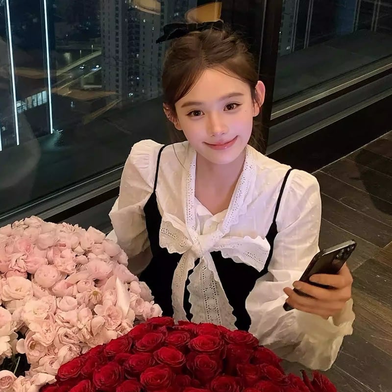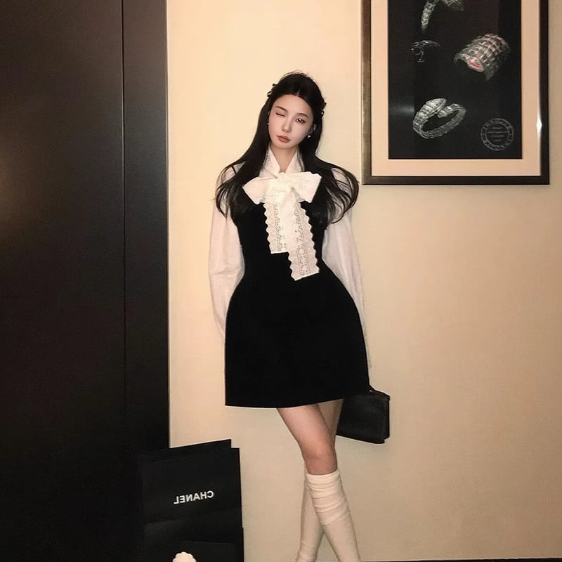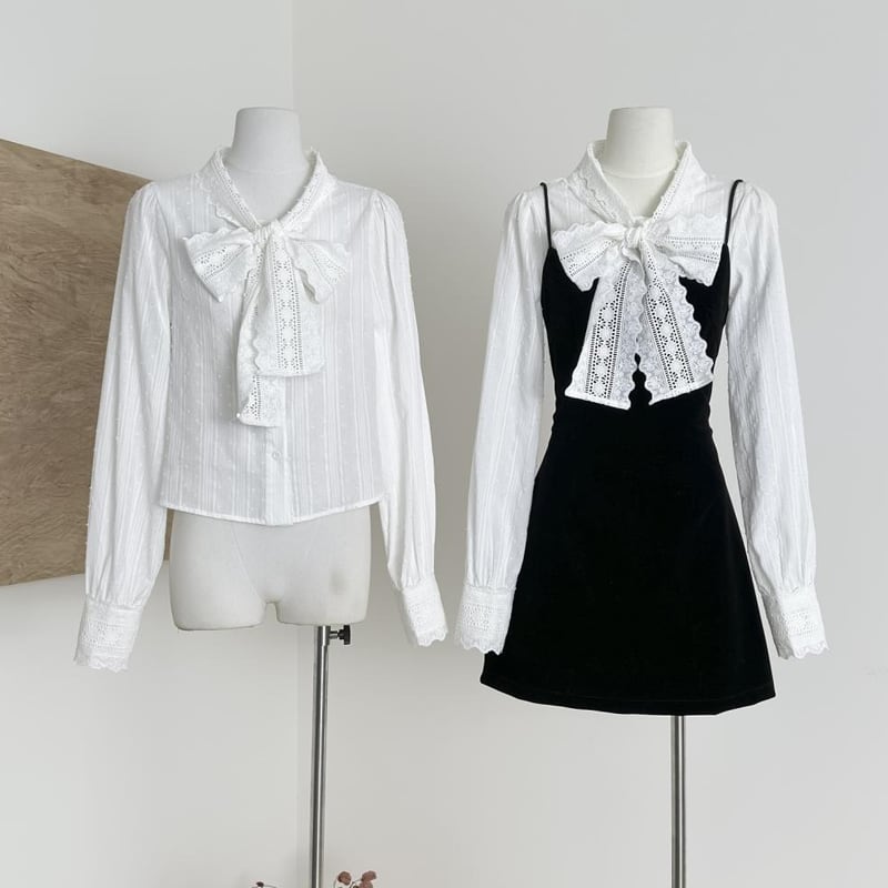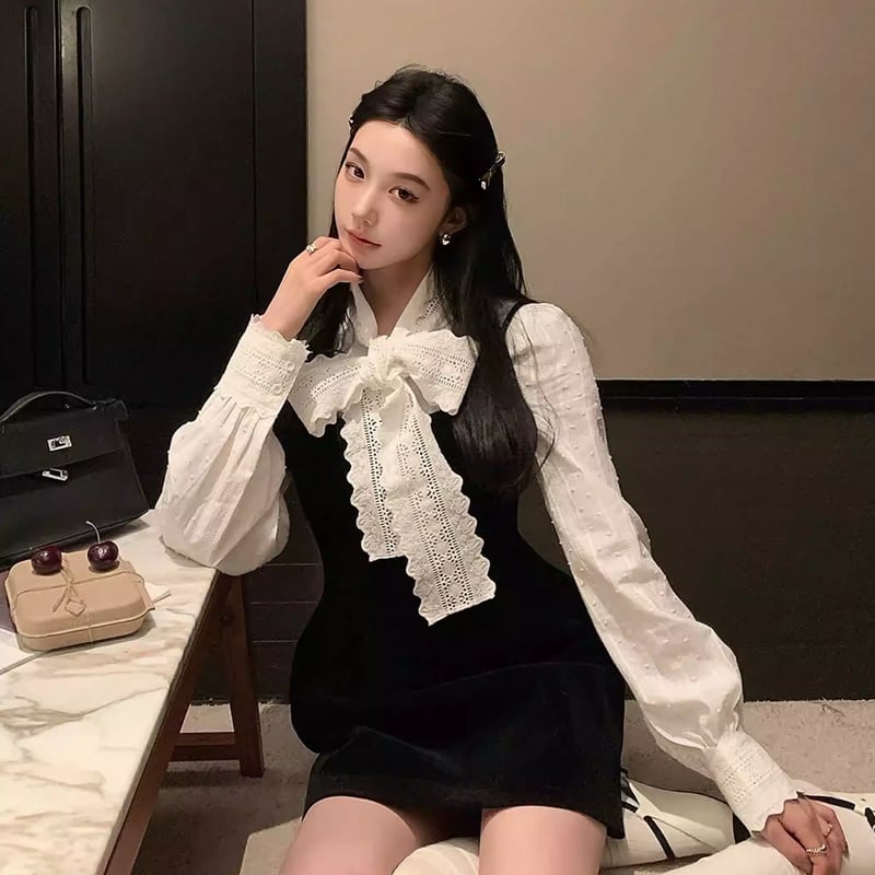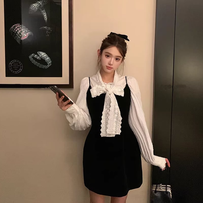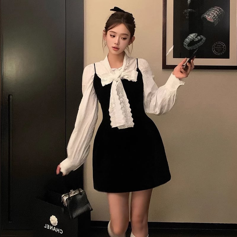 【set】リボン付きシャツ×キャミワンピースセット Q7953