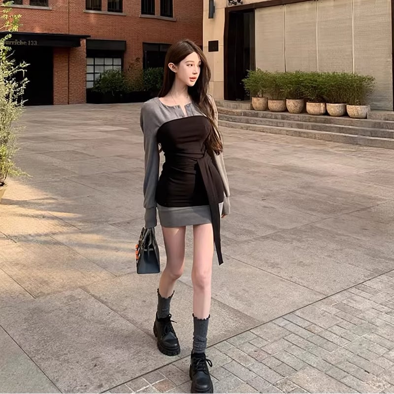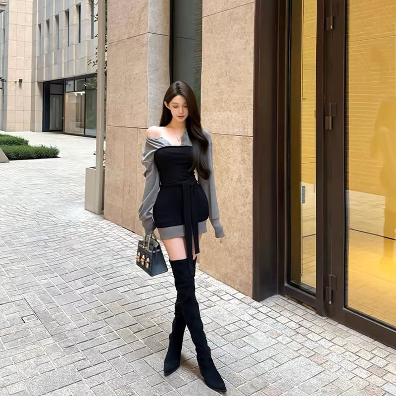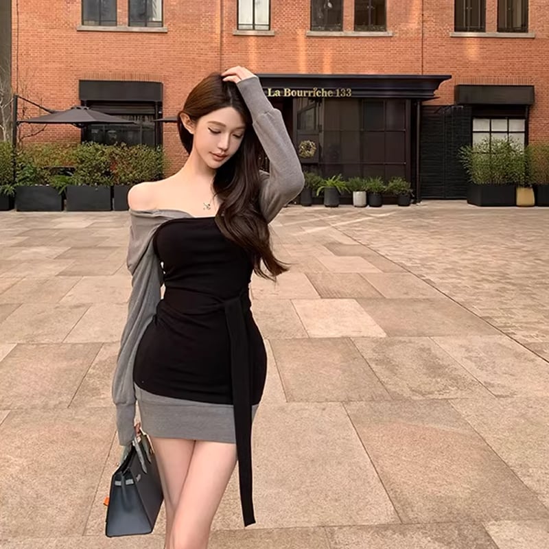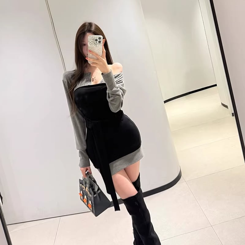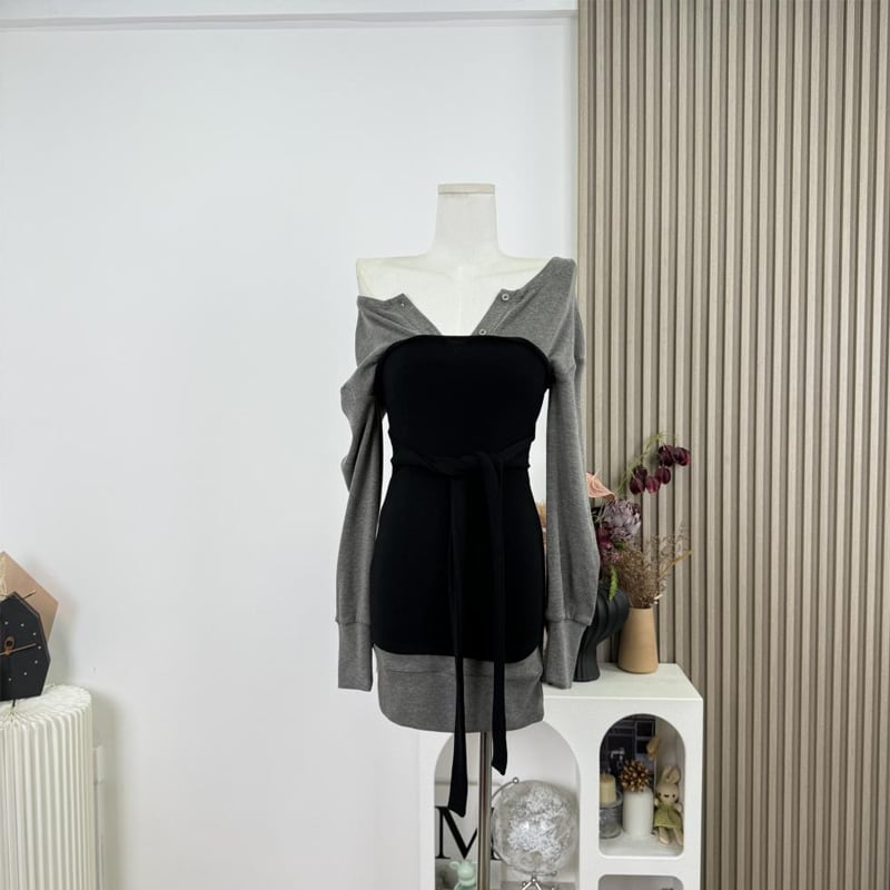 【set】チューブワンピ×パーカーワンピセット Q7954
