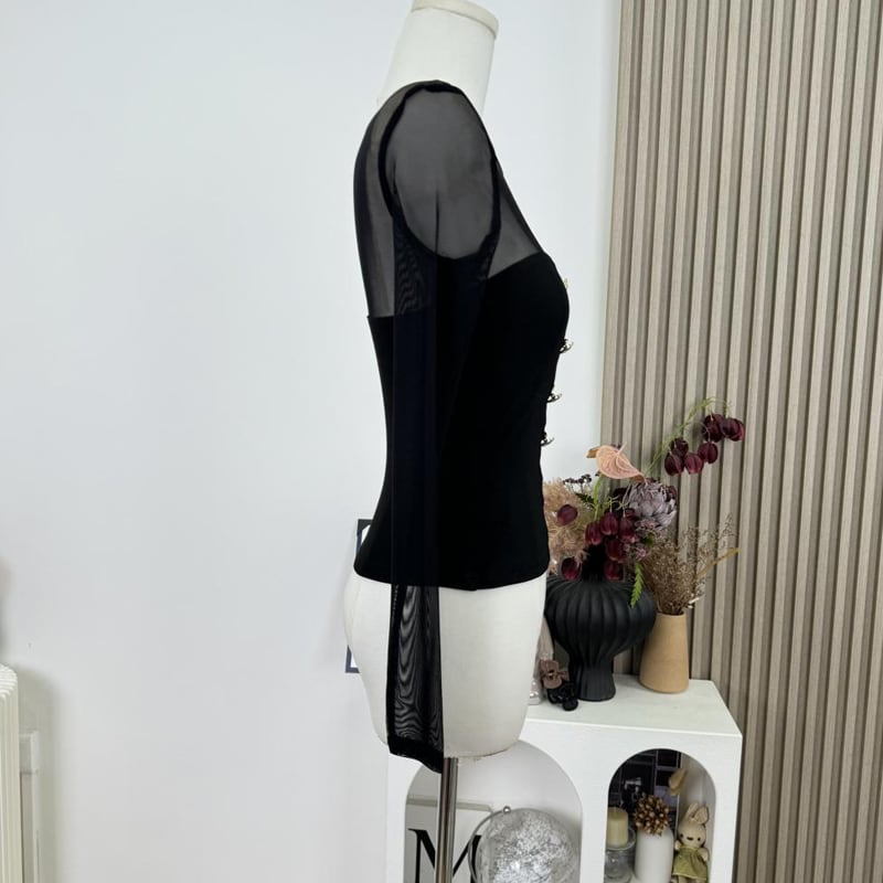 S着丈48cm/ バスト74cm/ ウエスト56cm/ 肩幅33cm/ 袖丈59cm