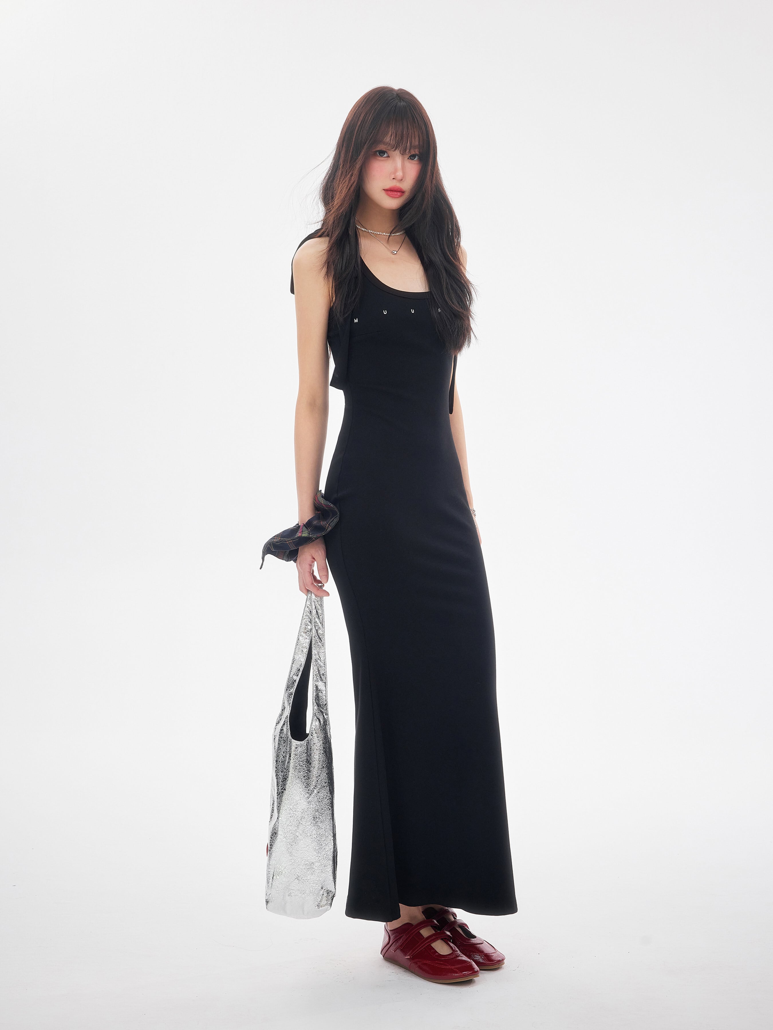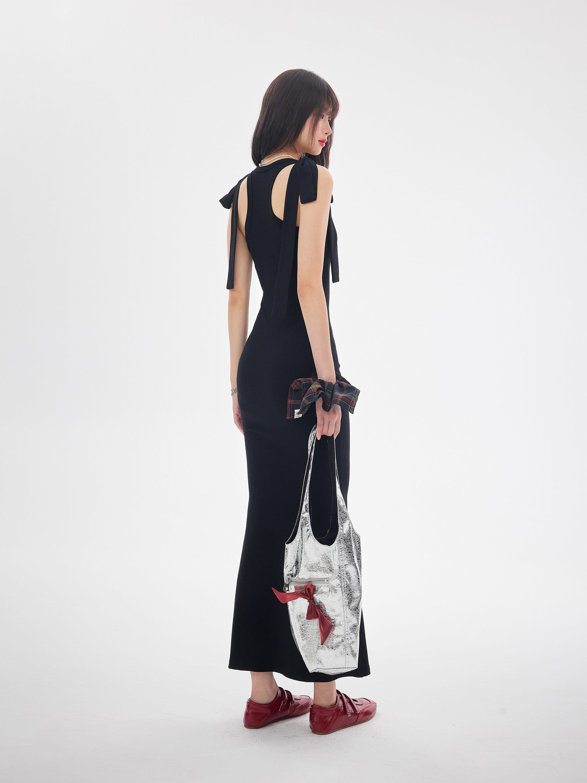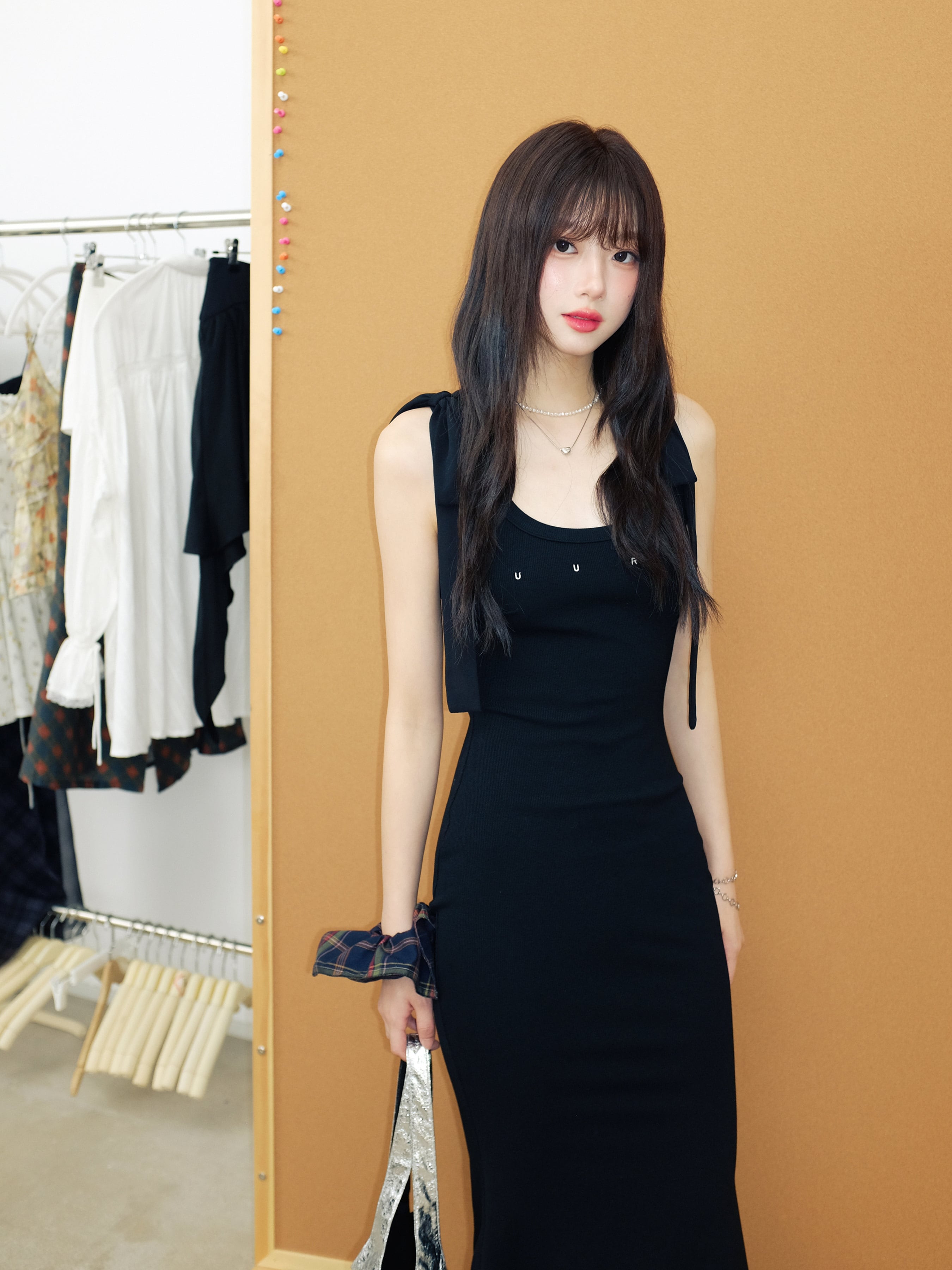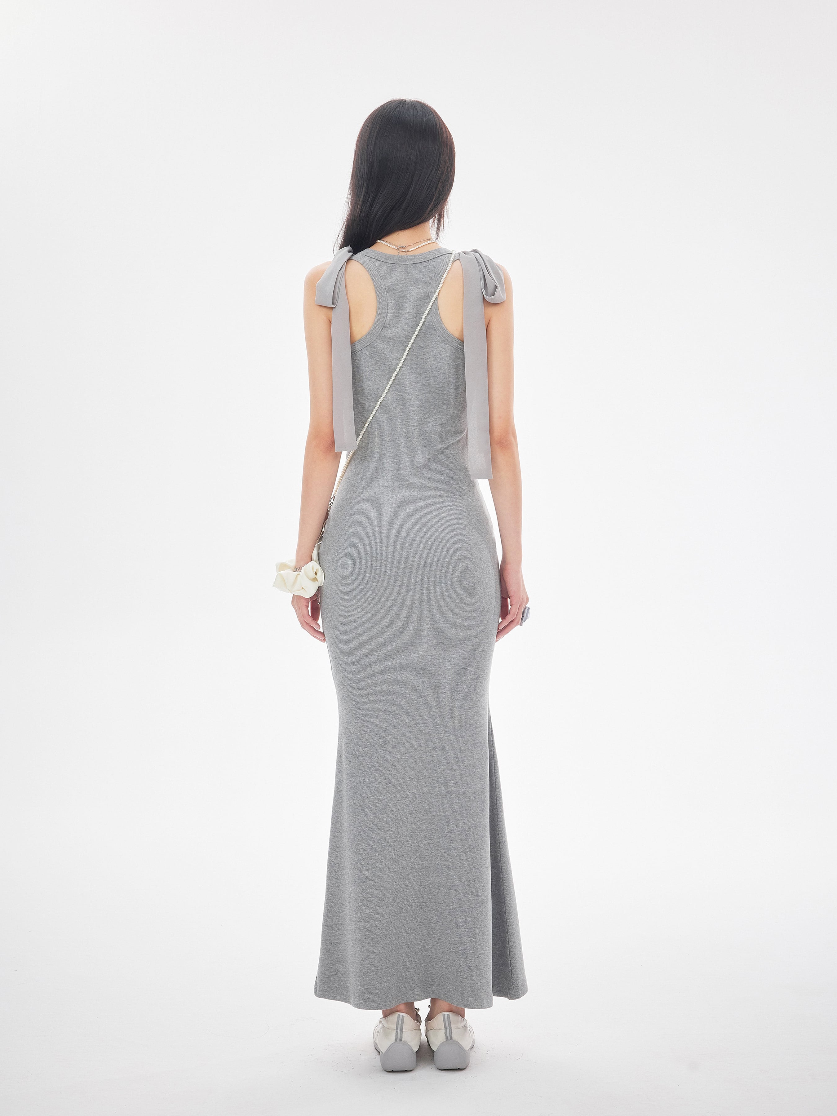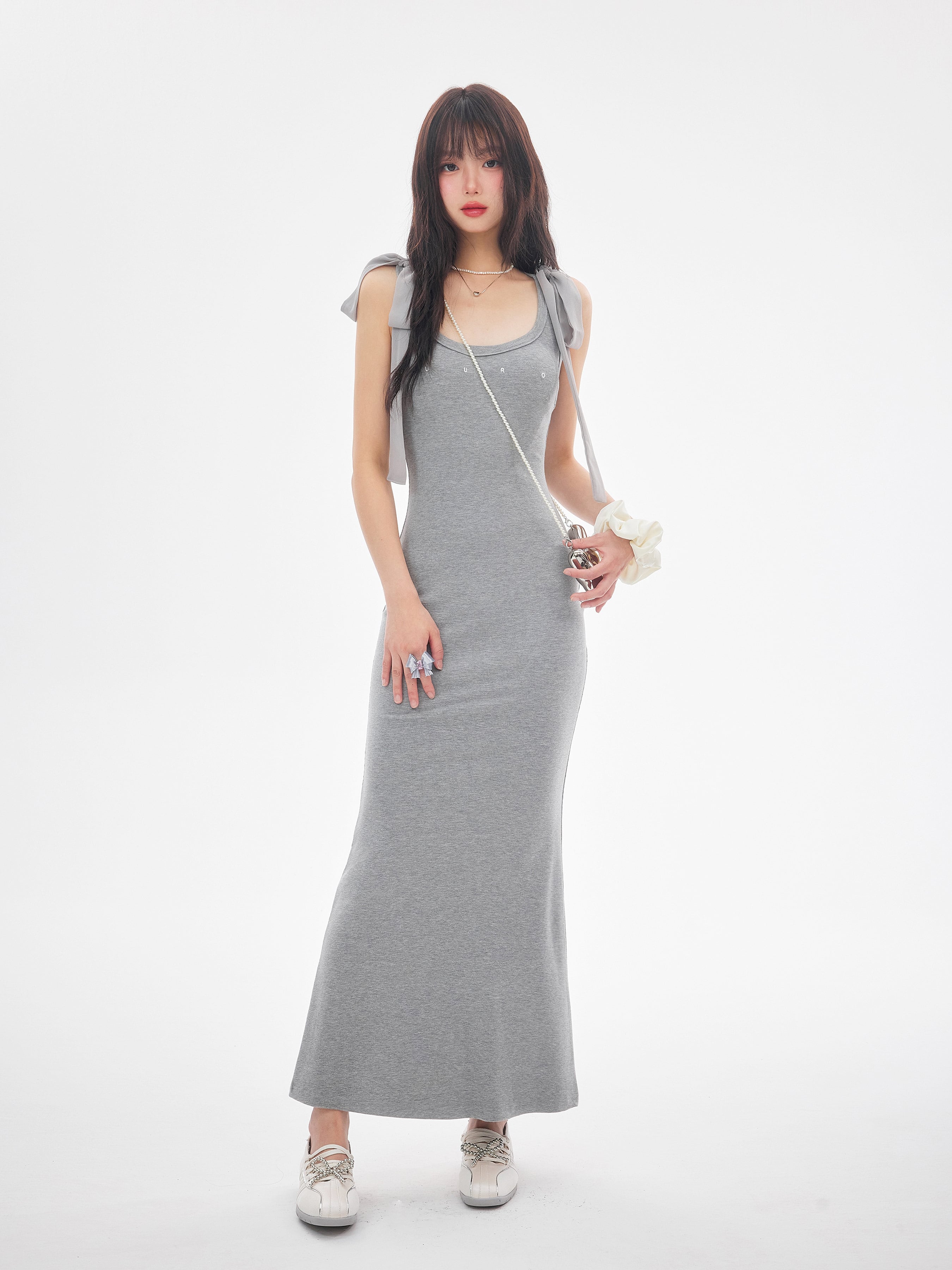 【dress】ショルダーリボンシェイプリブカットロングワンピース N3520