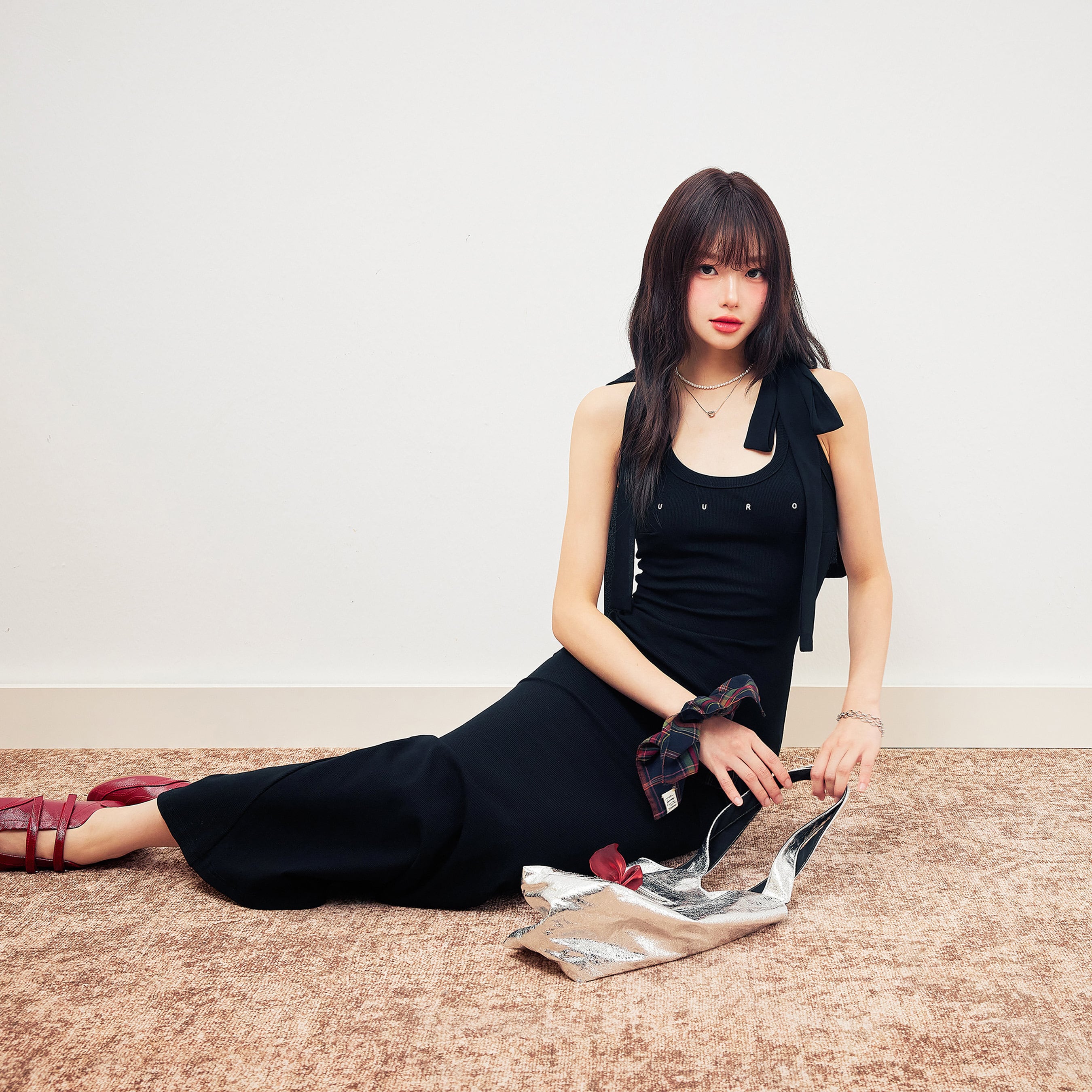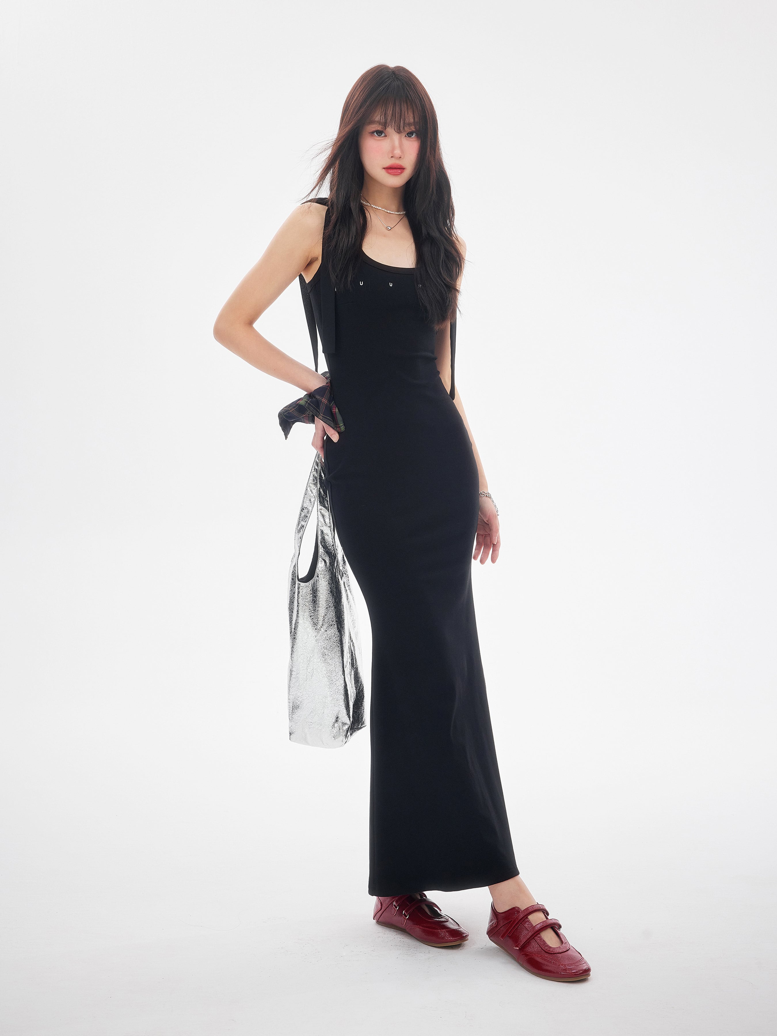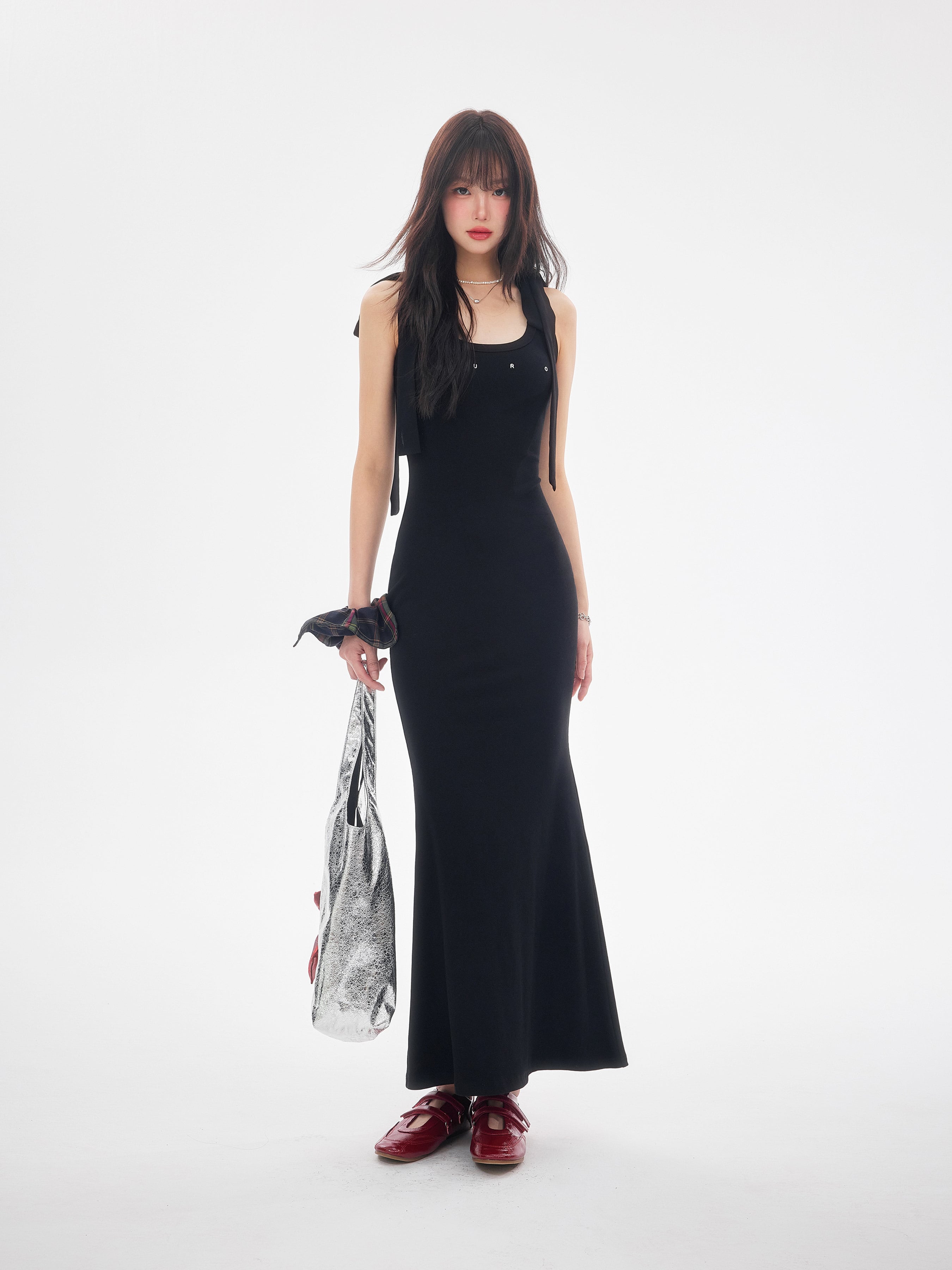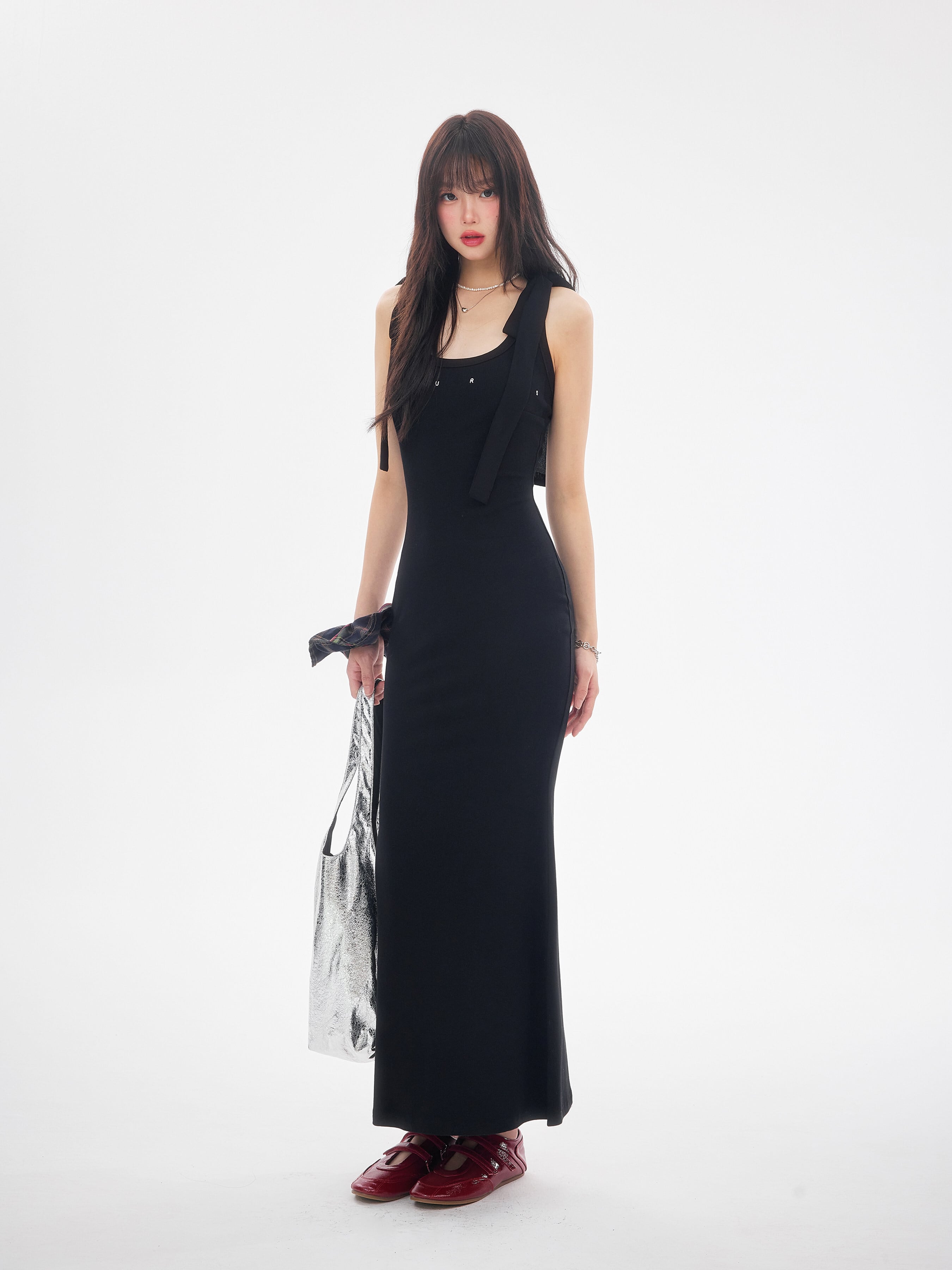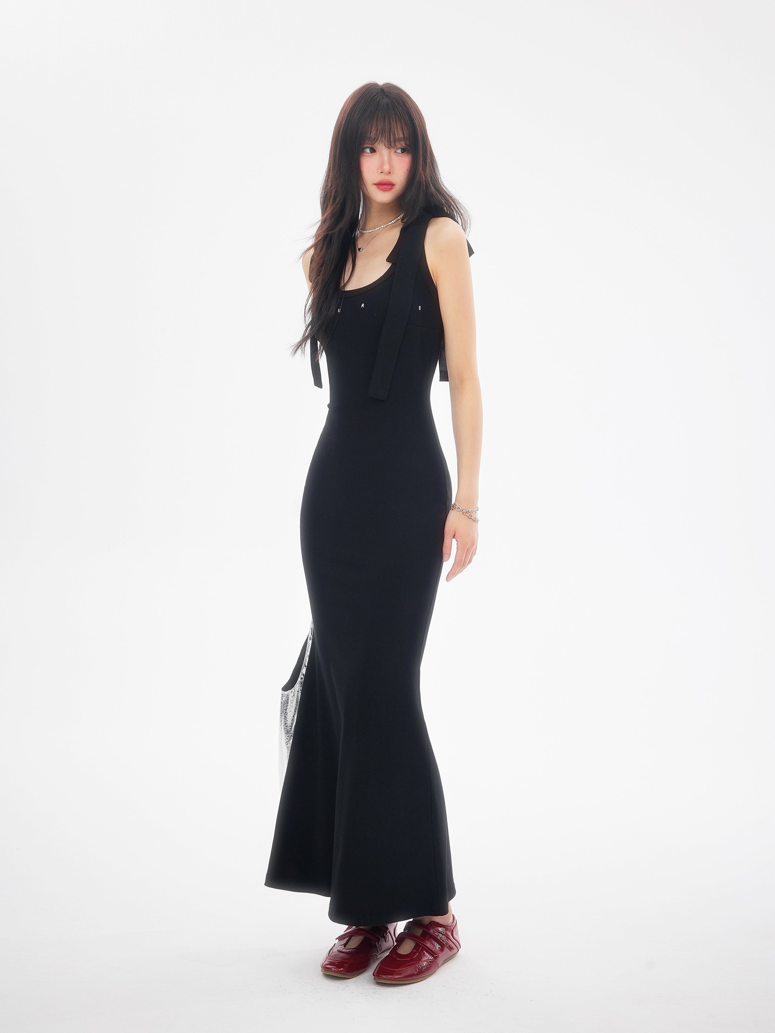 【dress】ショルダーリボンシェイプリブカットロングワンピース N3520