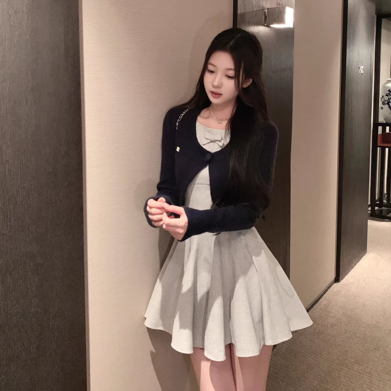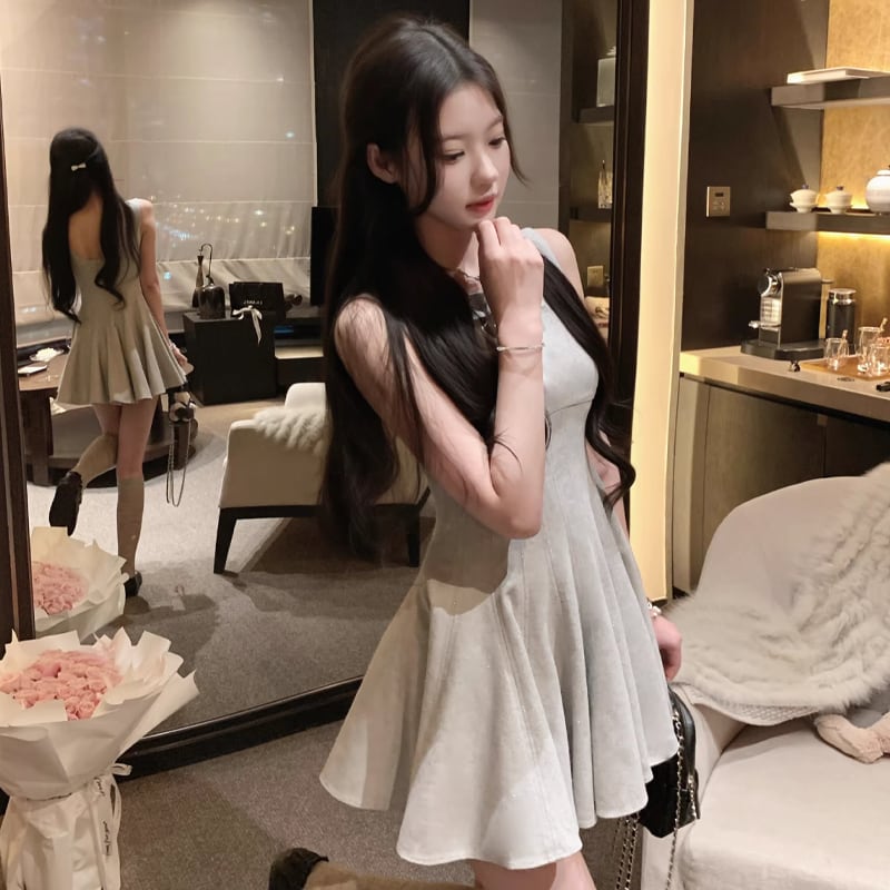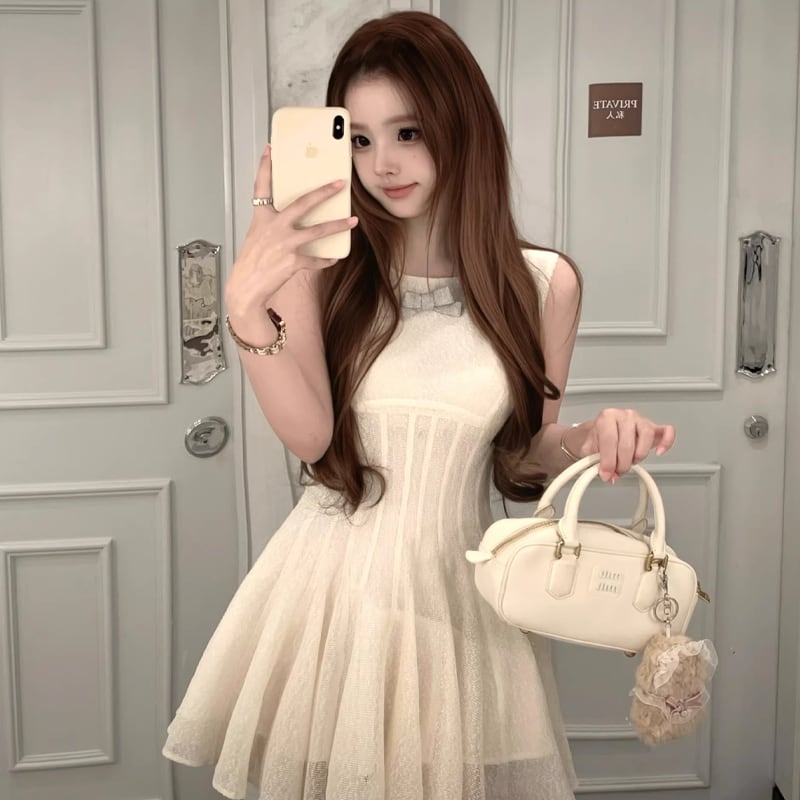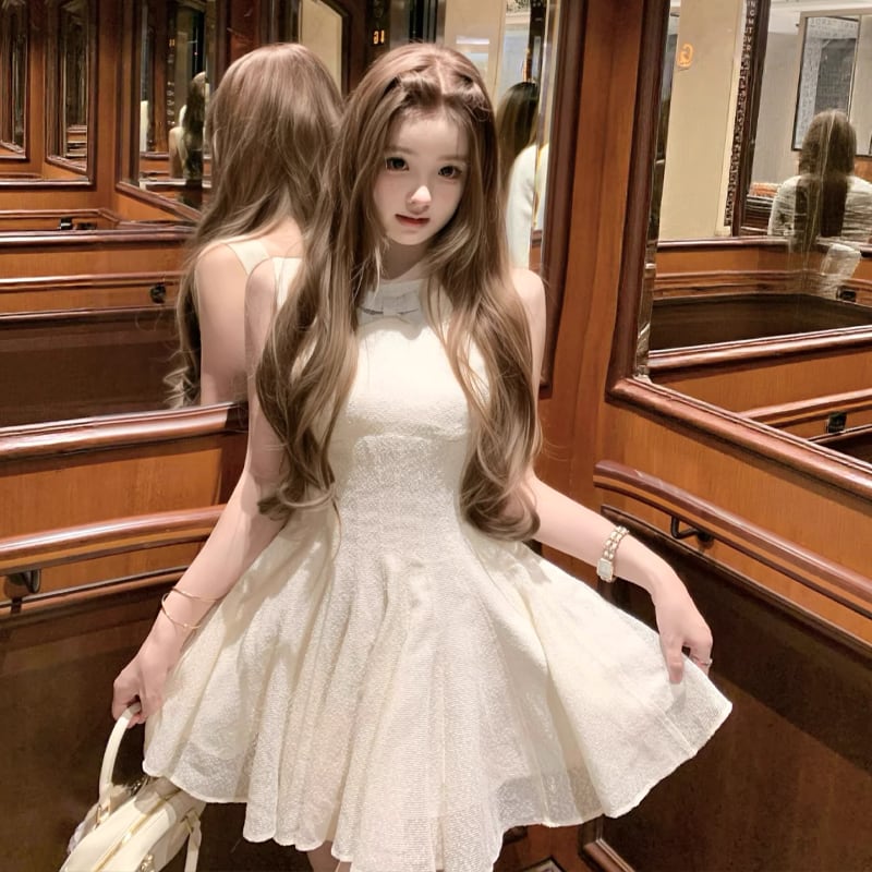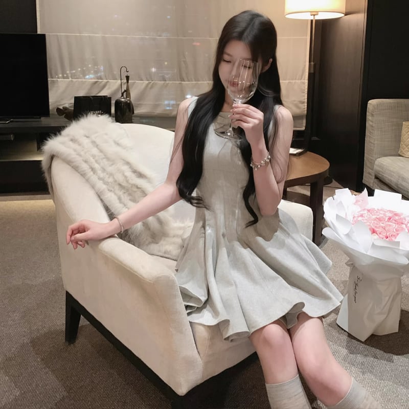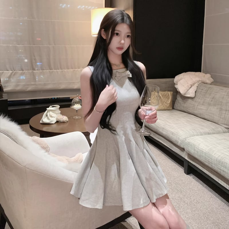 【dress】リボン付きノースリーブリネンワンピース Q7968