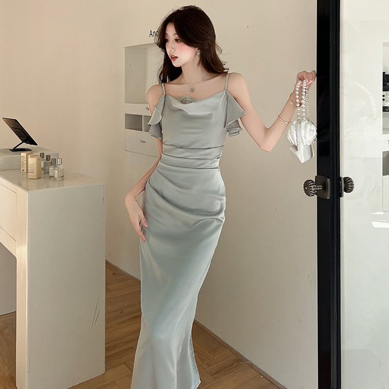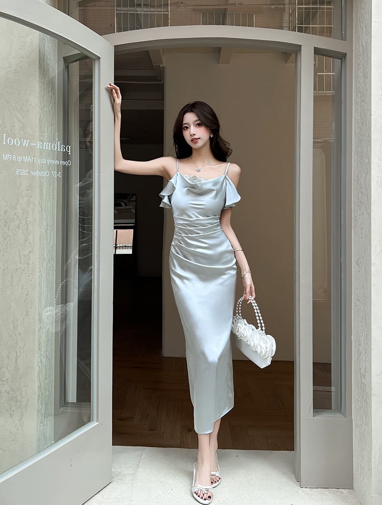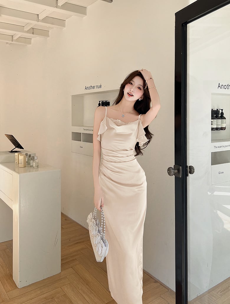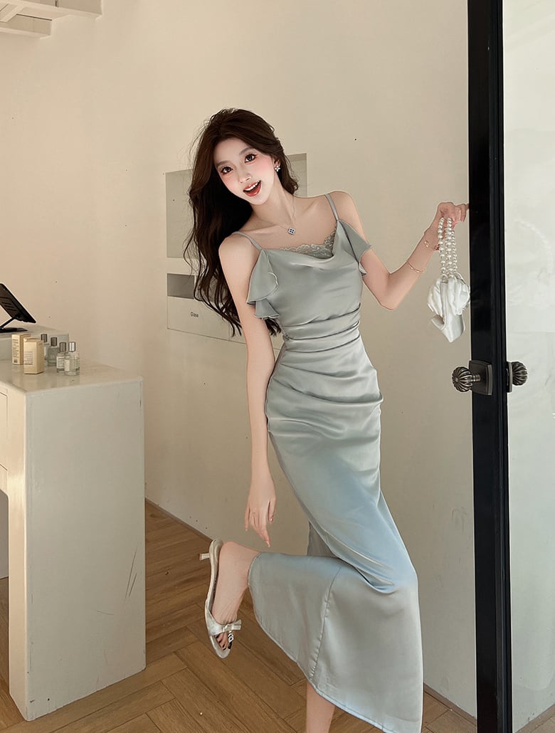 【dress】レースドッキングドレープドネックキャミワンピース Q7979