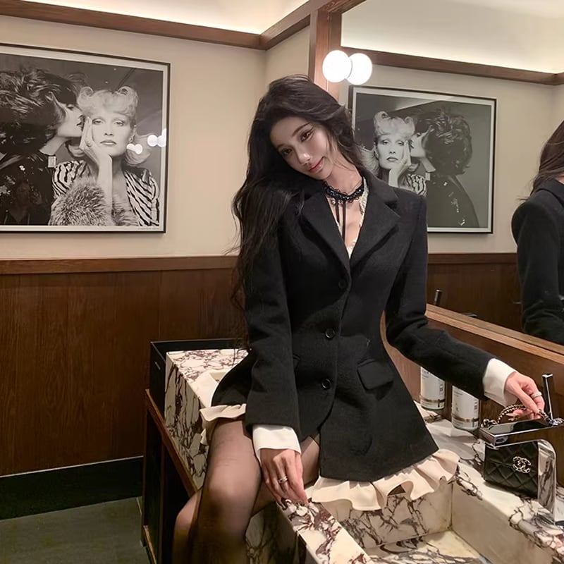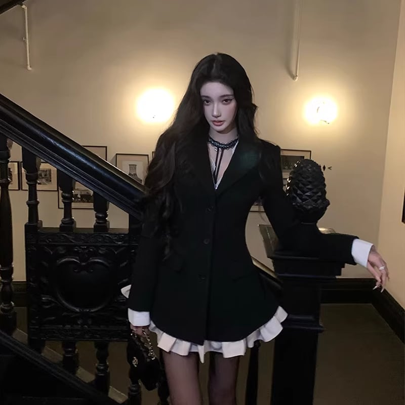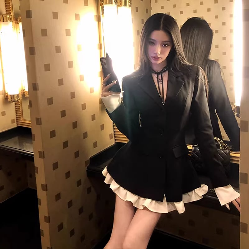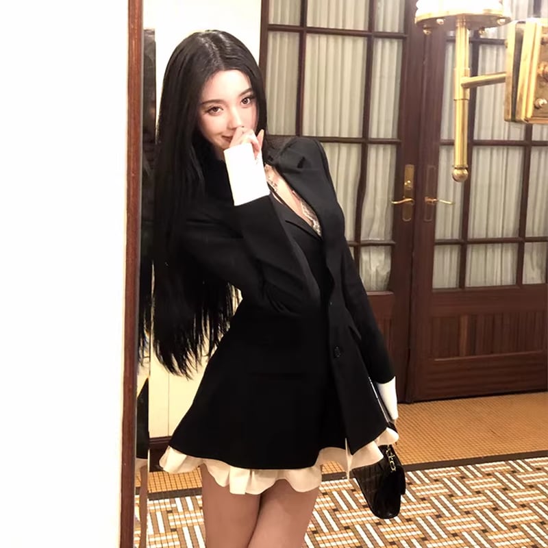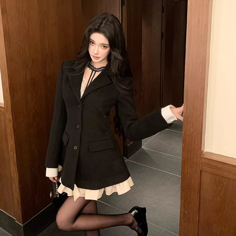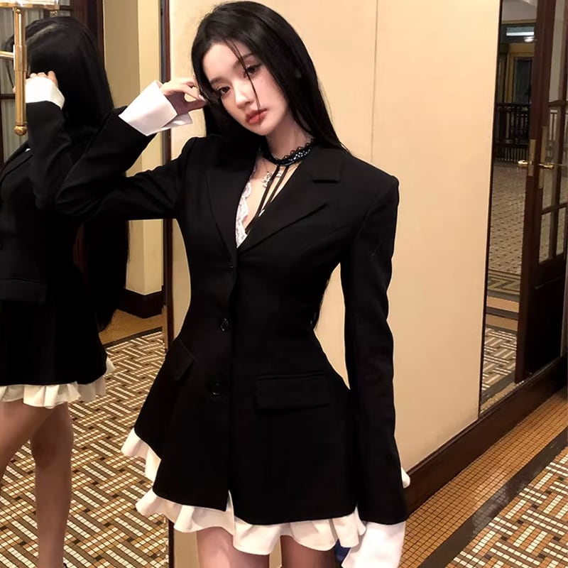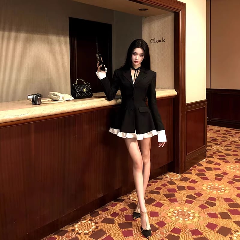 【dress】フェイクレイヤードスーツワンピース Q7986