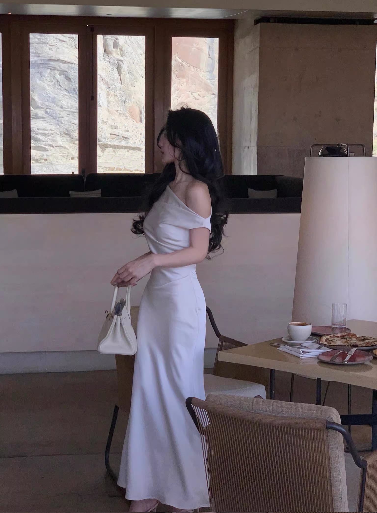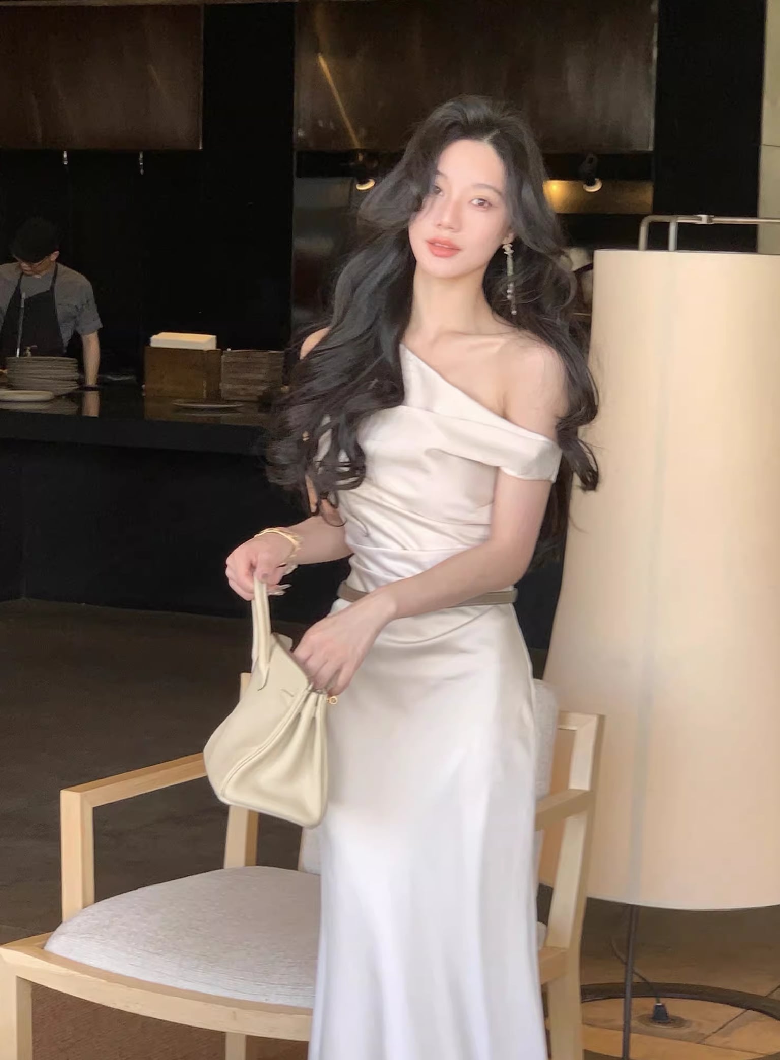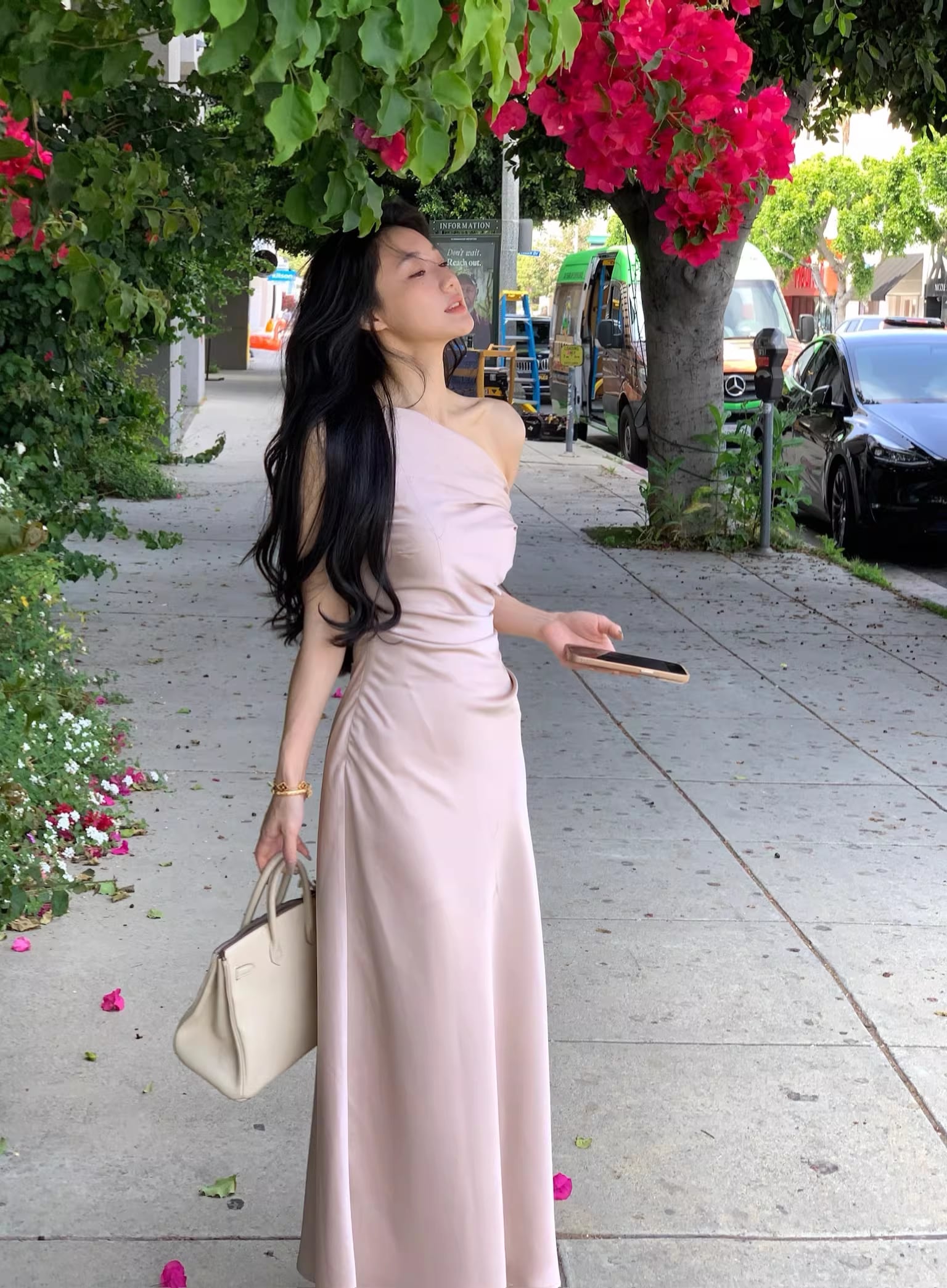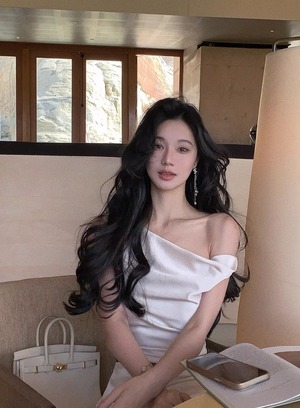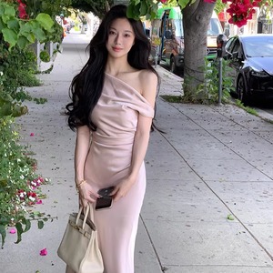 【dress】ノースリーブワンショルダーロングワンピース Q7987
