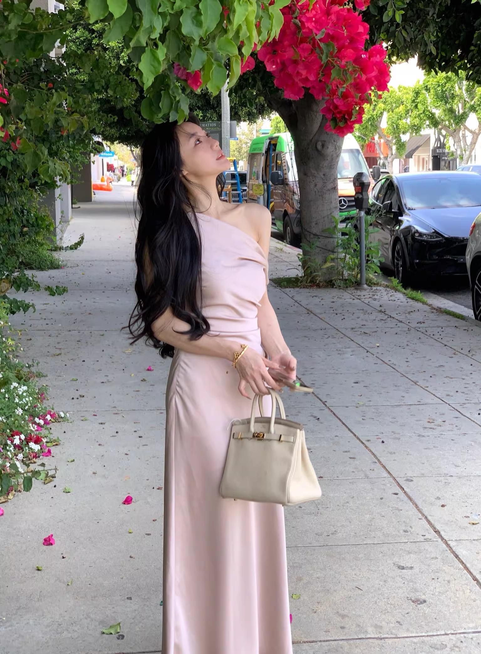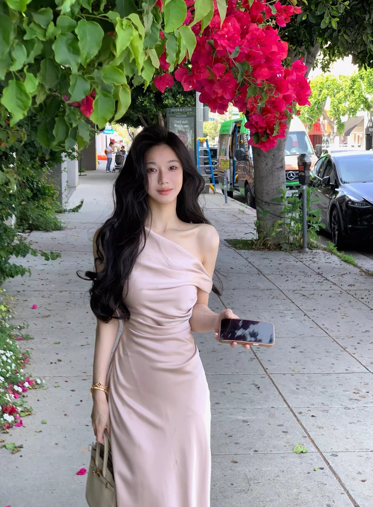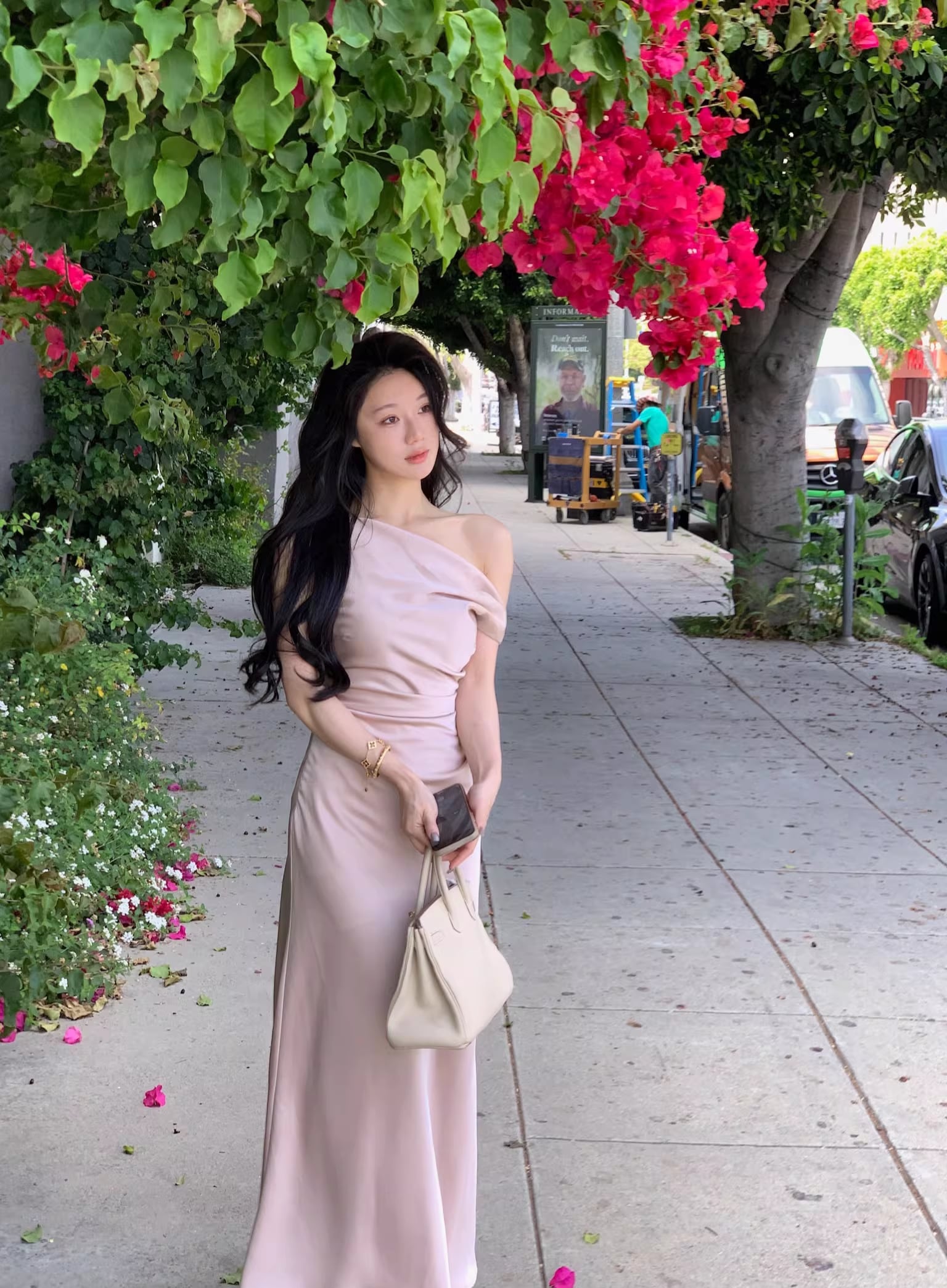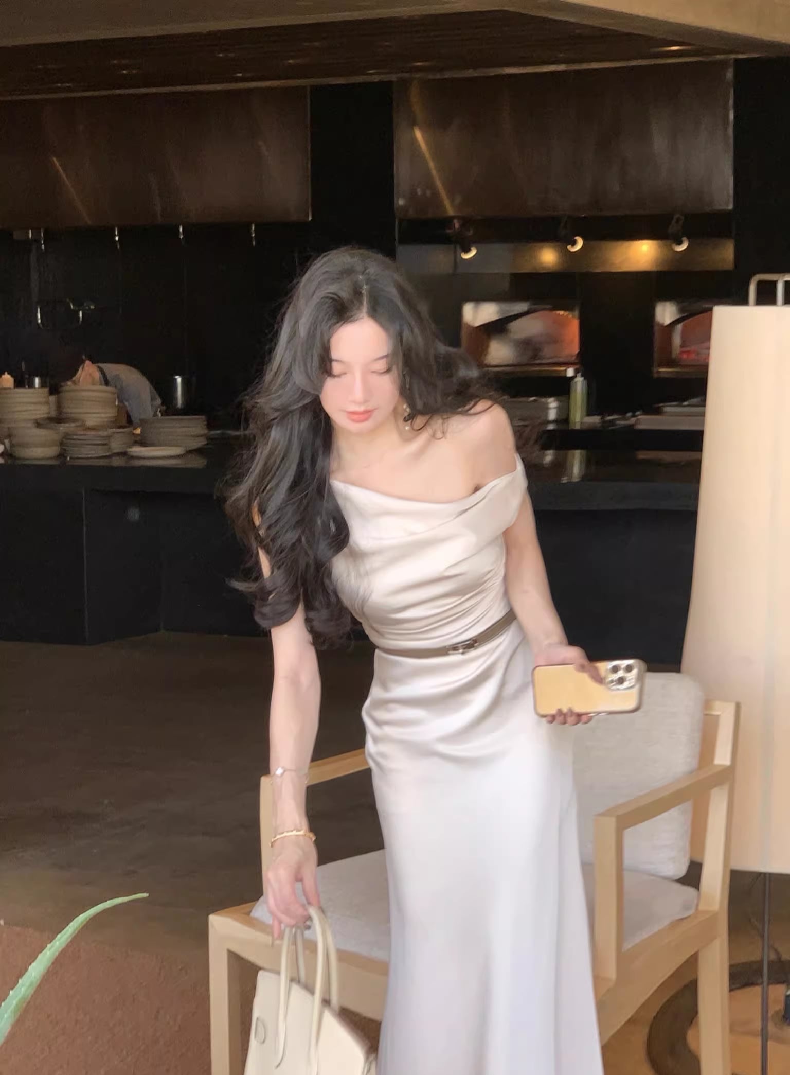 【dress】ノースリーブワンショルダーロングワンピース Q7987