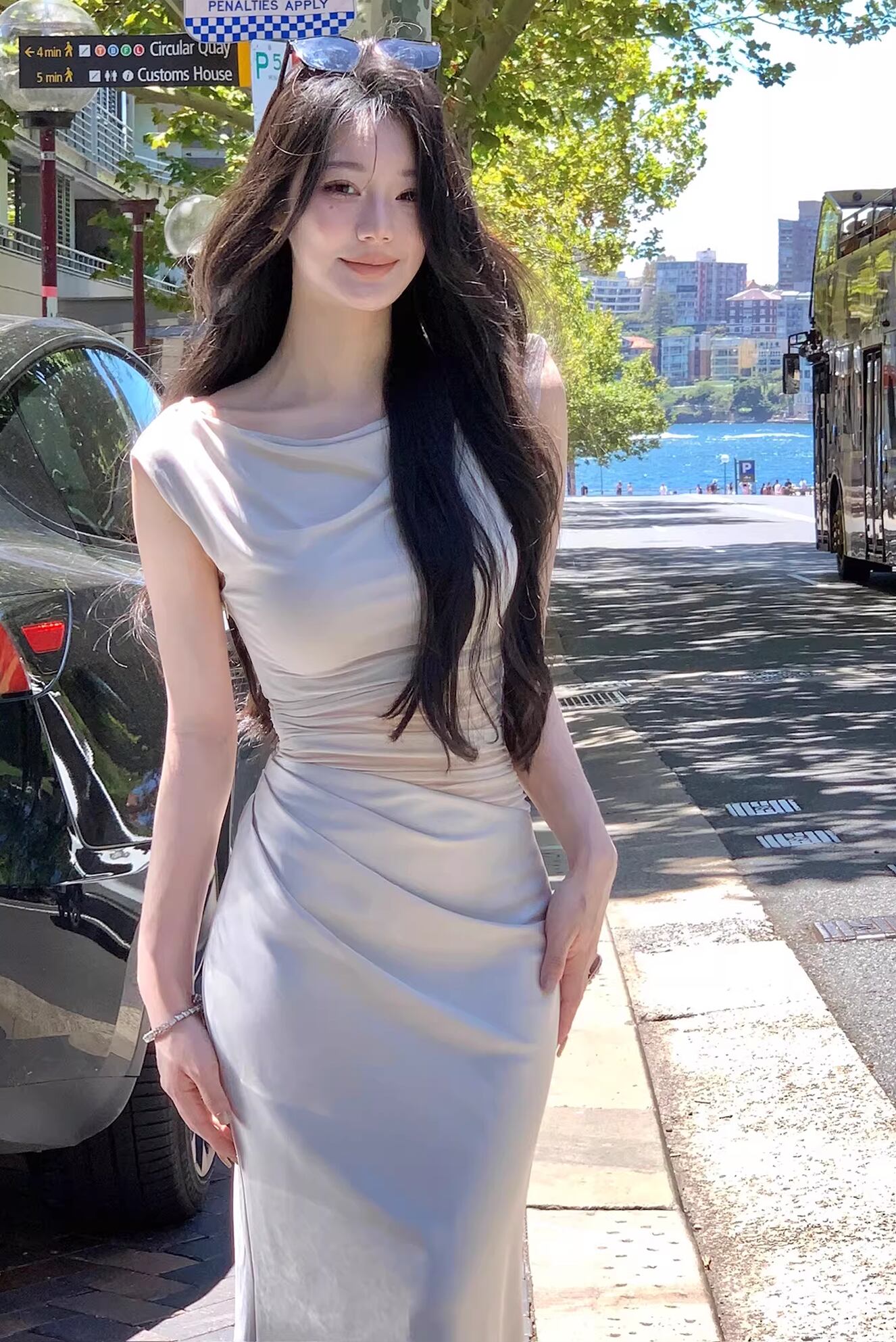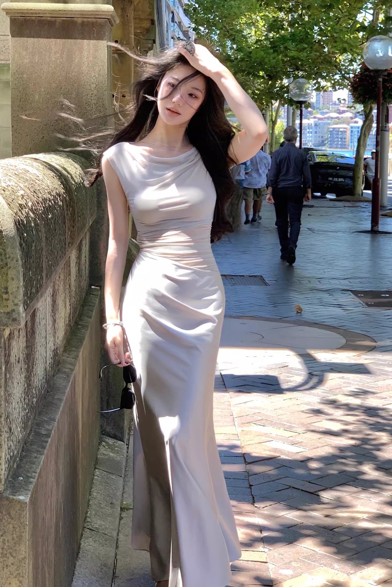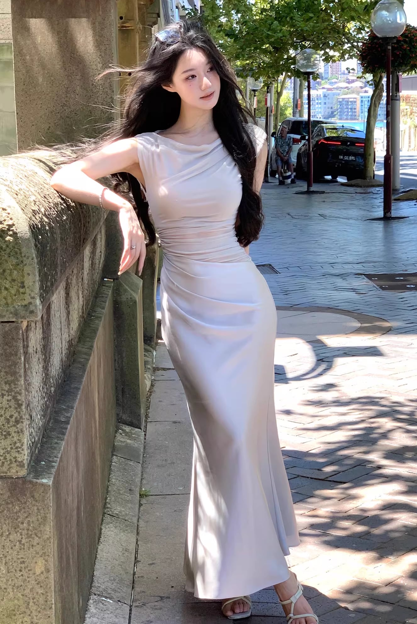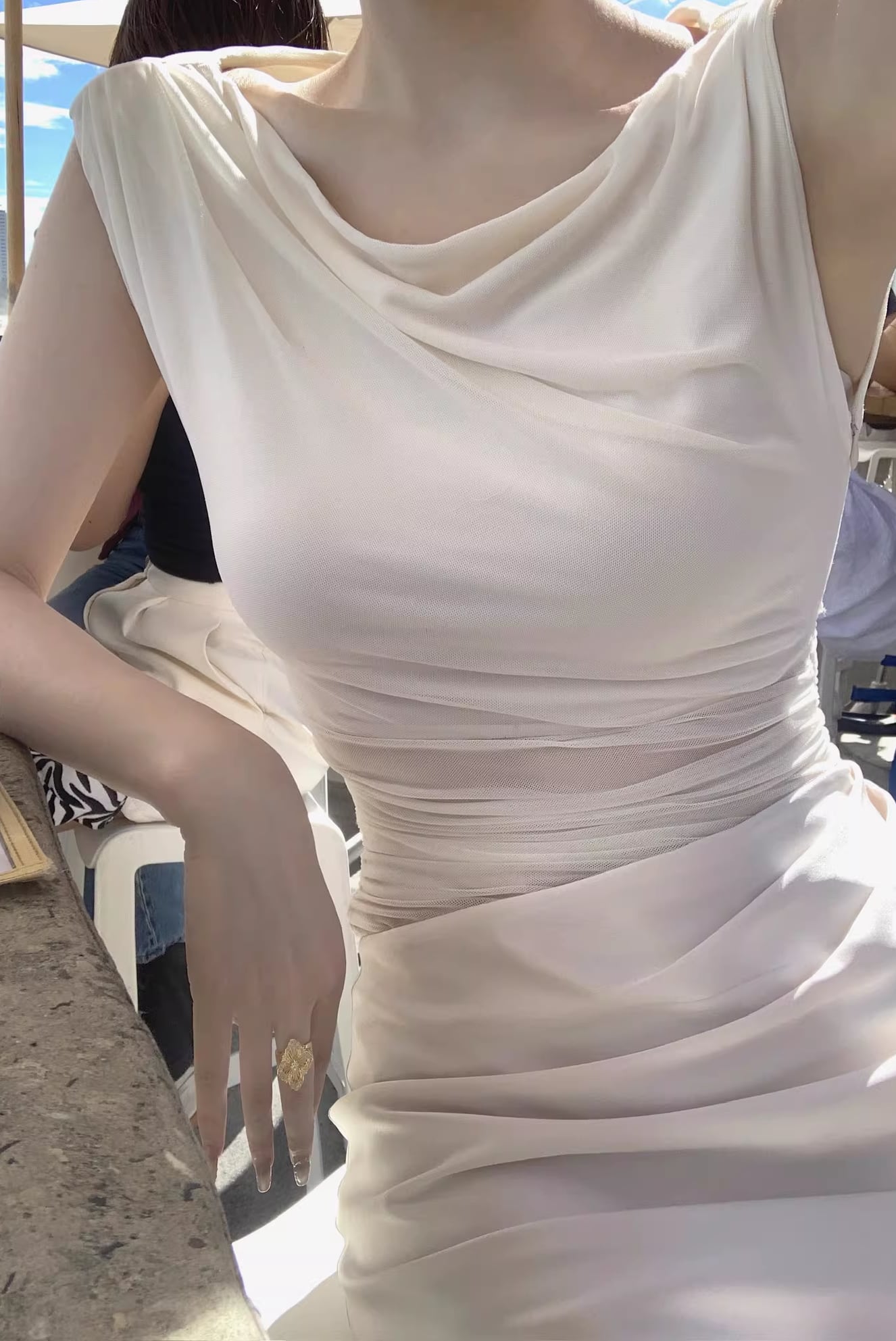 【dress】ノースリーブチュールドッキングロングワンピース Q7988