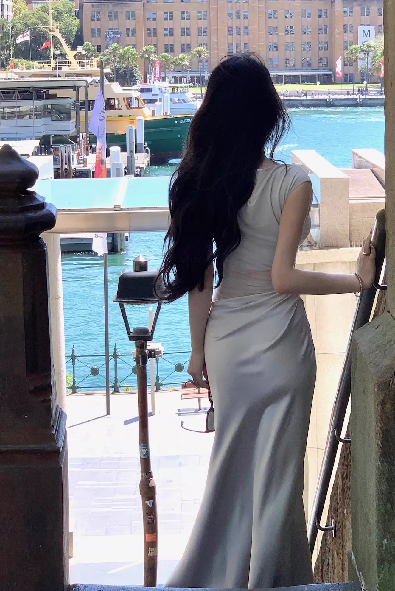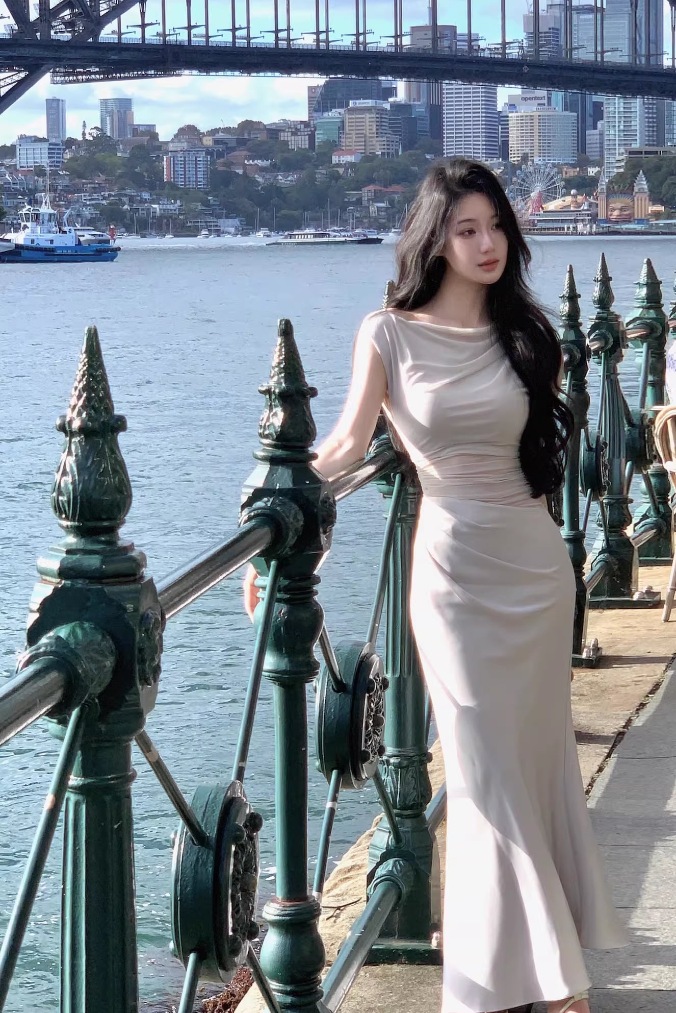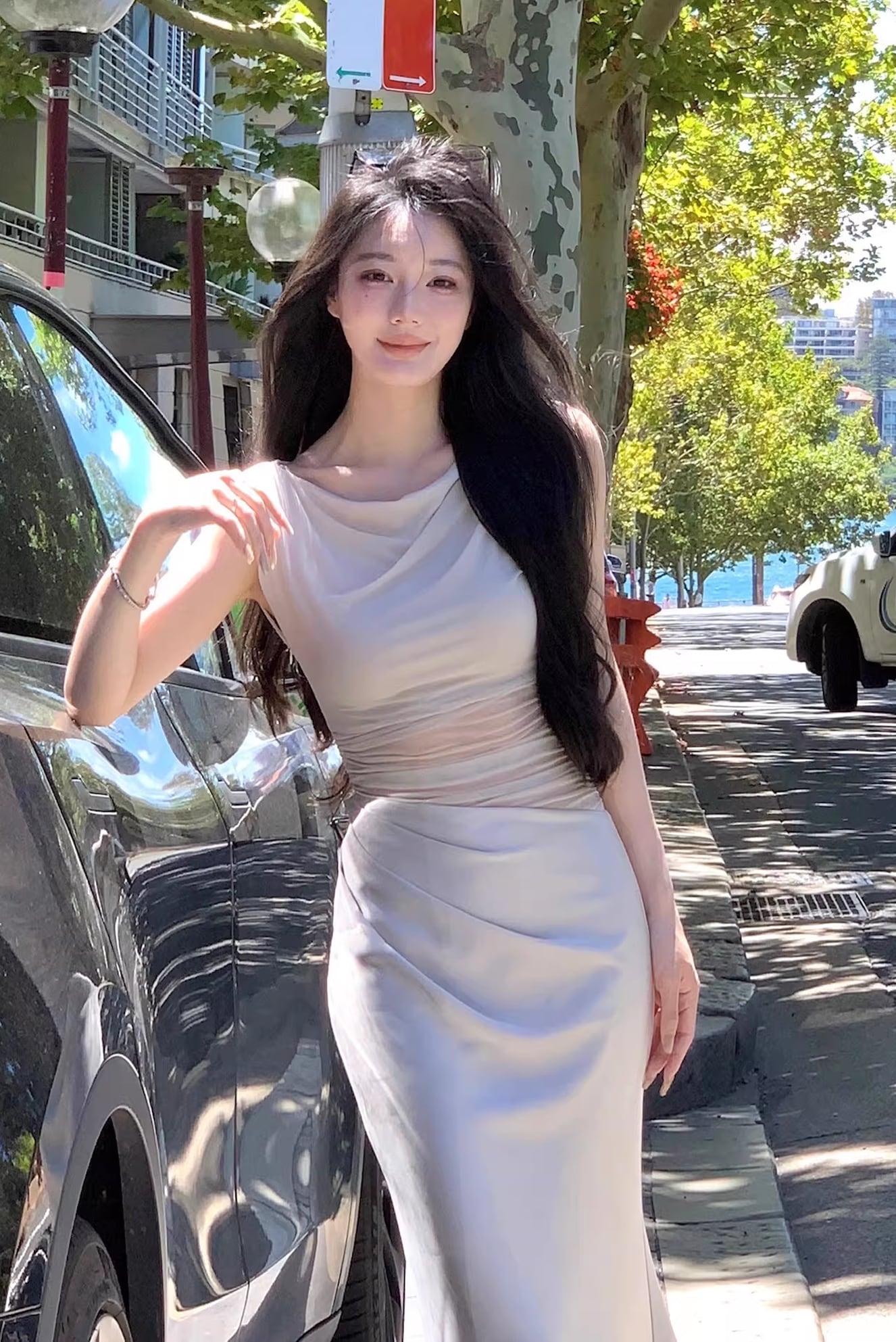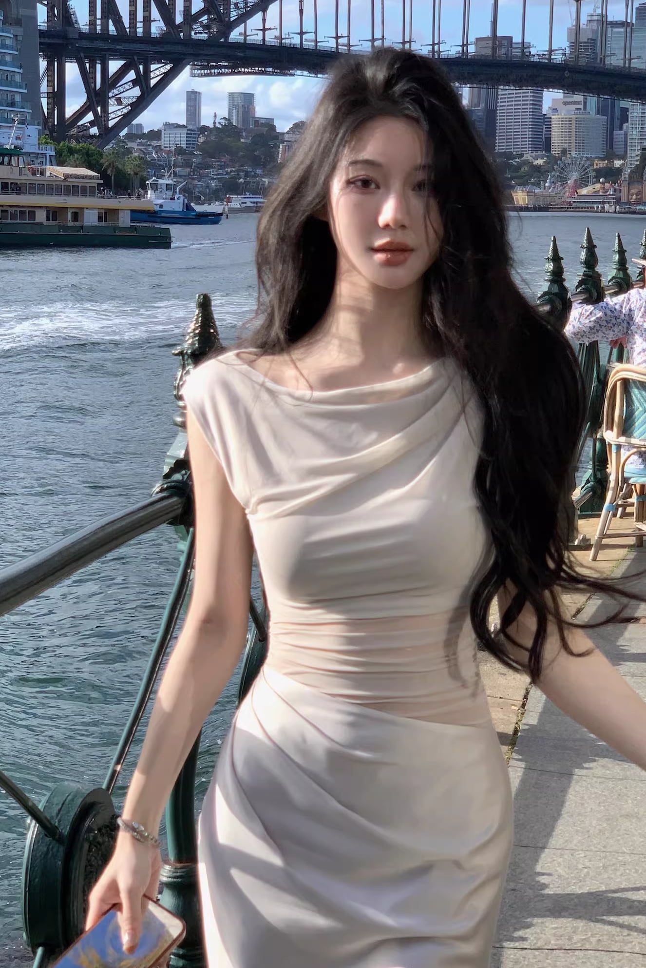 【dress】ノースリーブチュールドッキングロングワンピース Q7988