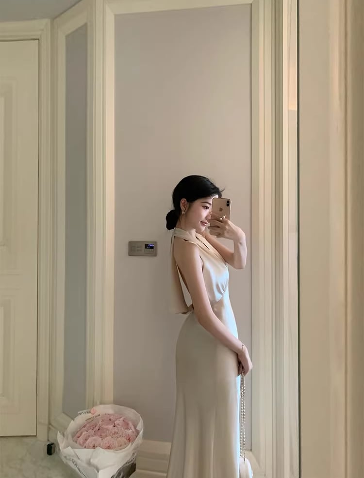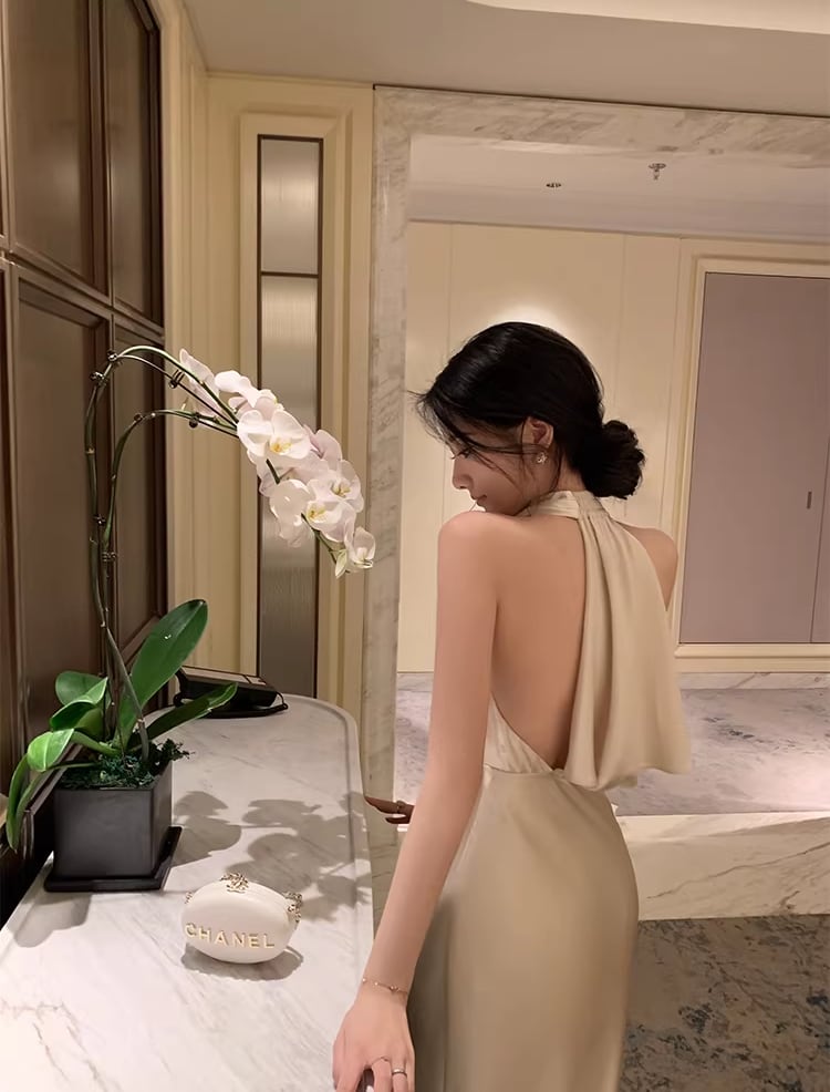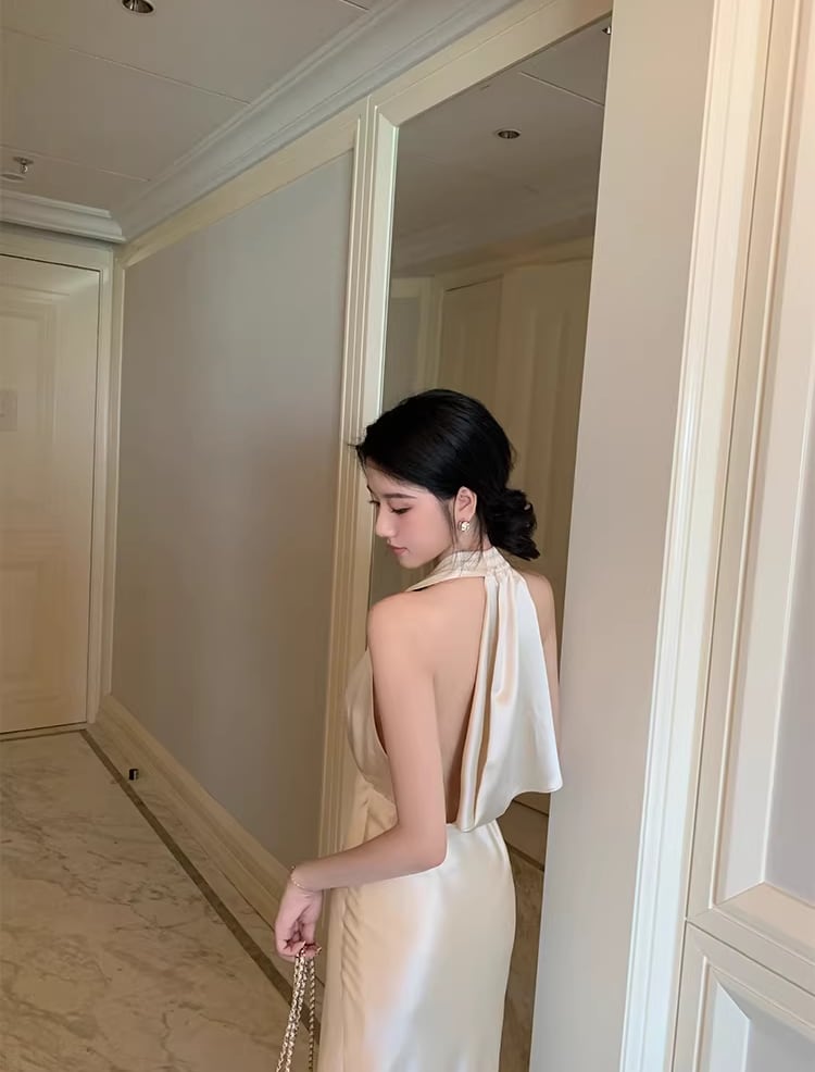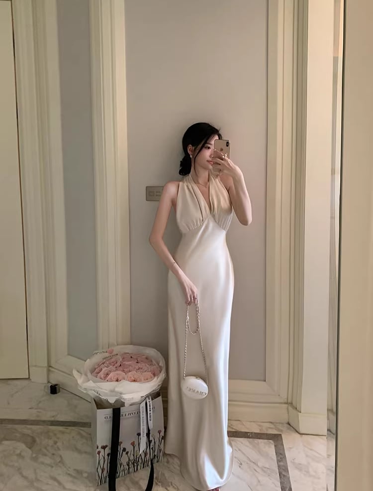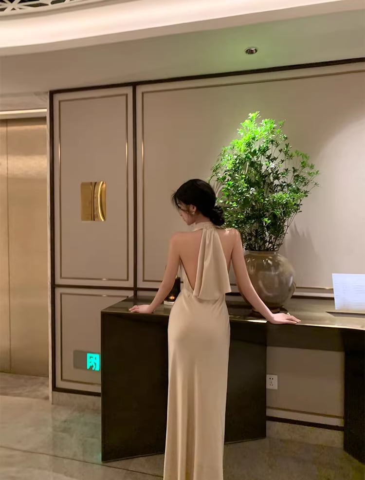 【dress】ノースリーブホルターネックロングワンピース Q7992