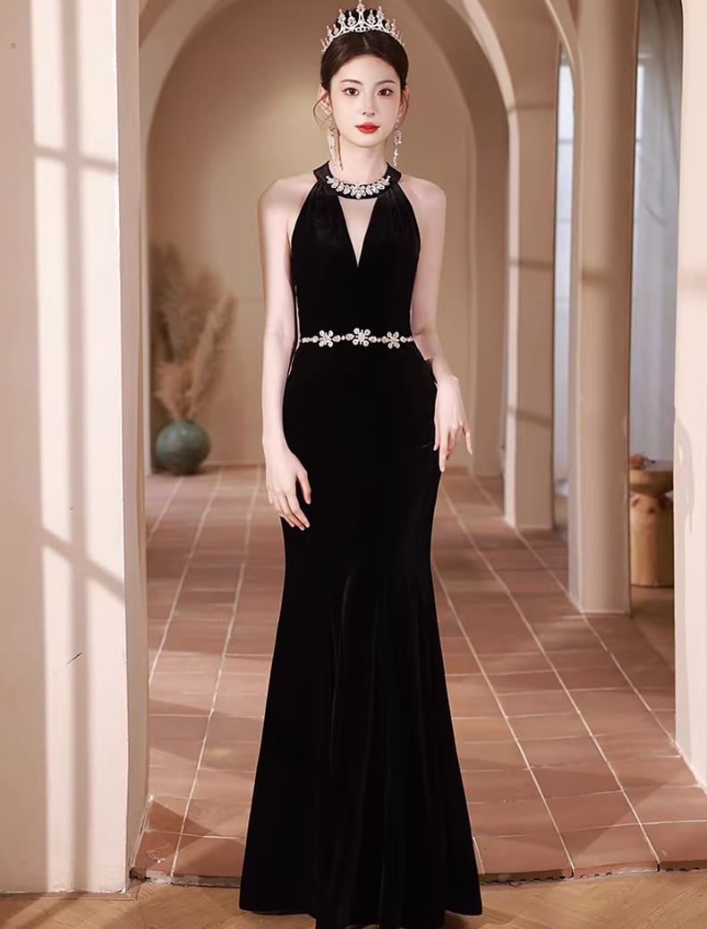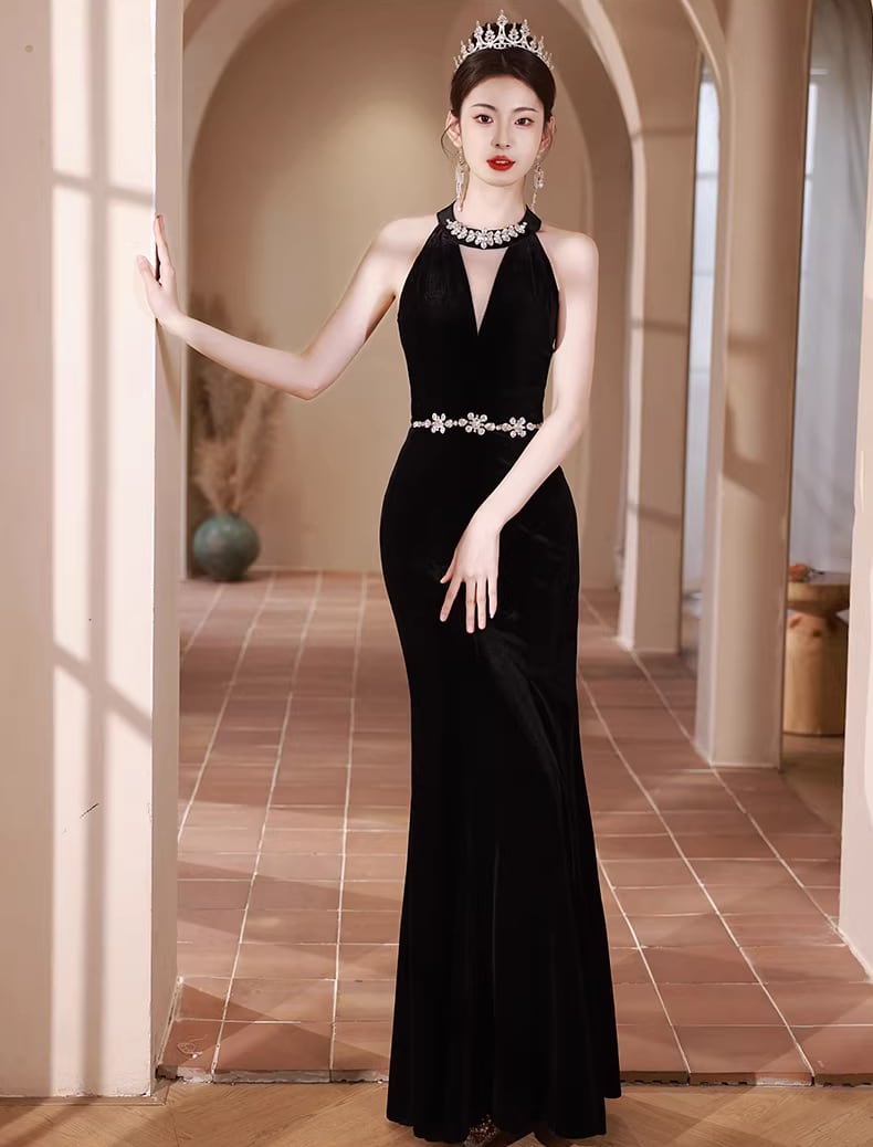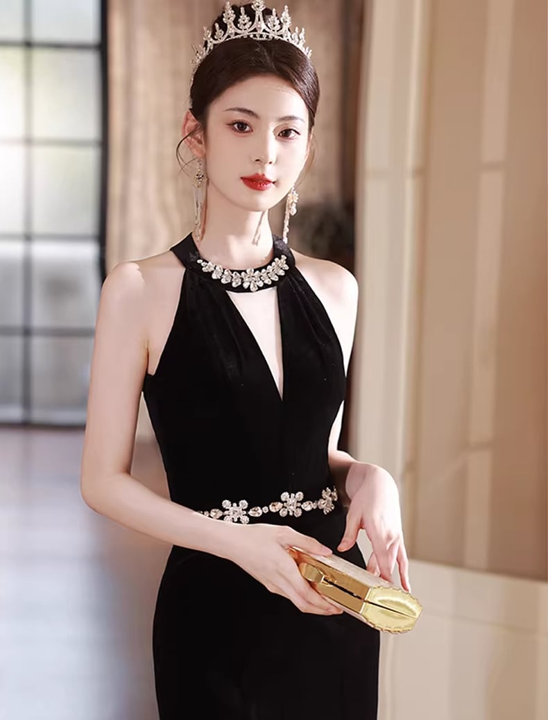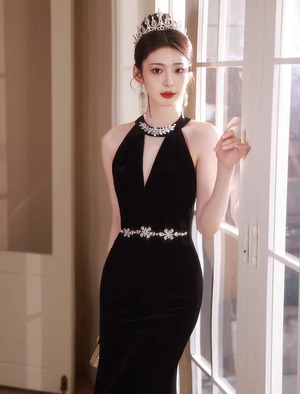 【dress】ラインストーン付きノースリーブマーメイドワンピース Q7993