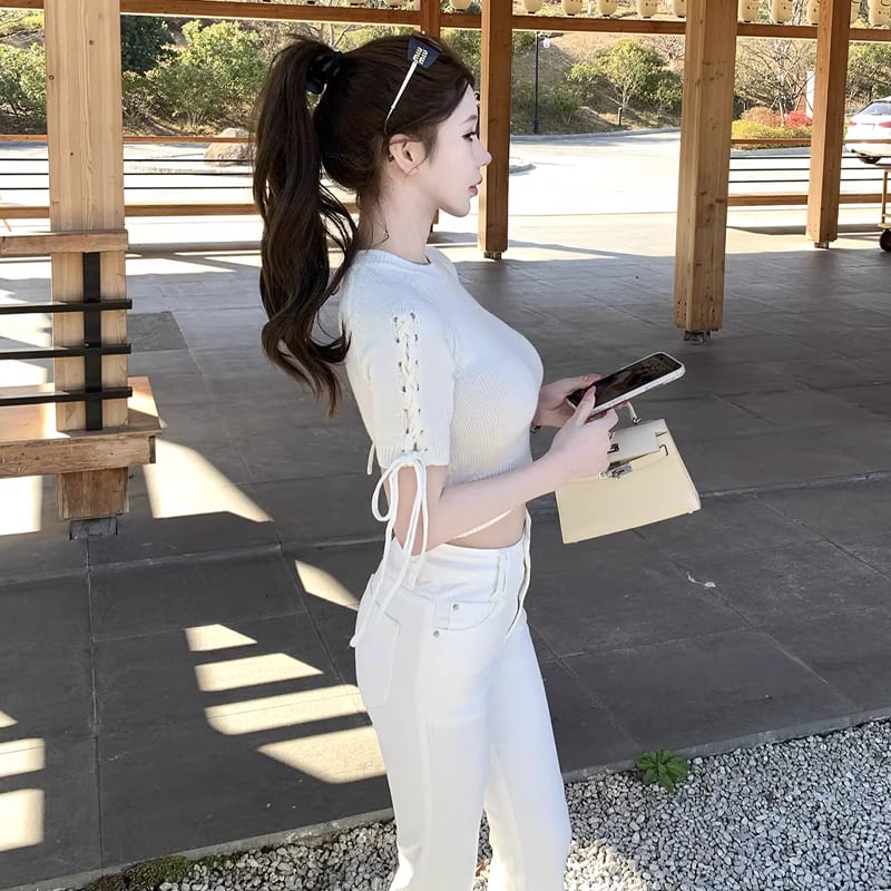 【tops】半袖ニットトップス Q7999