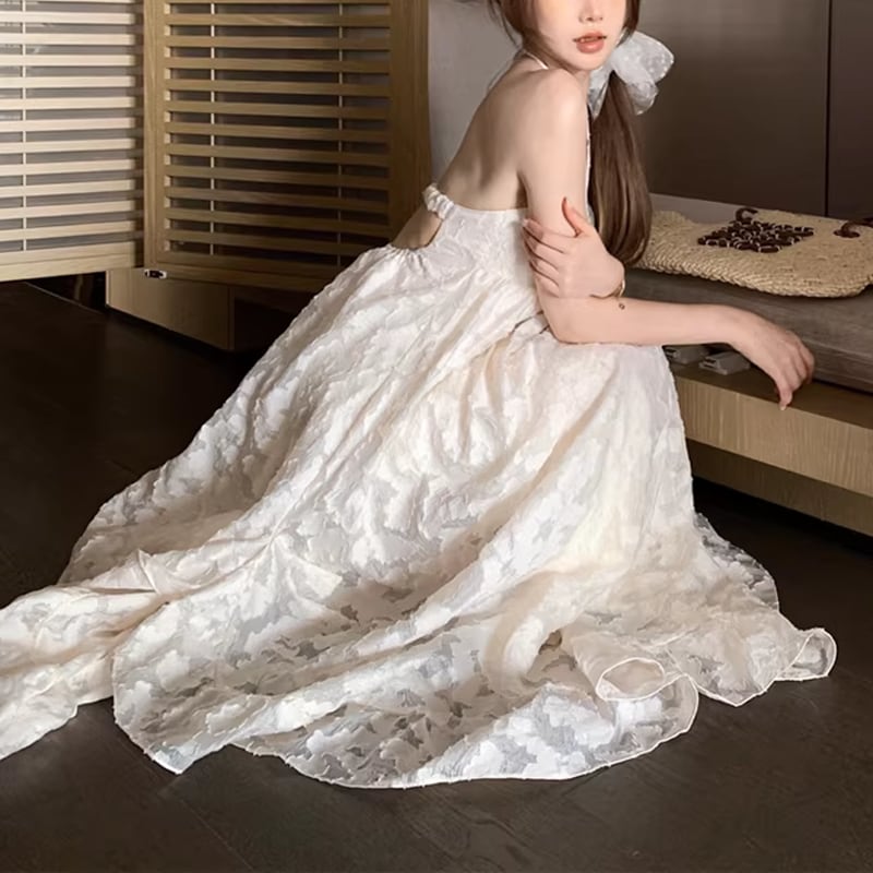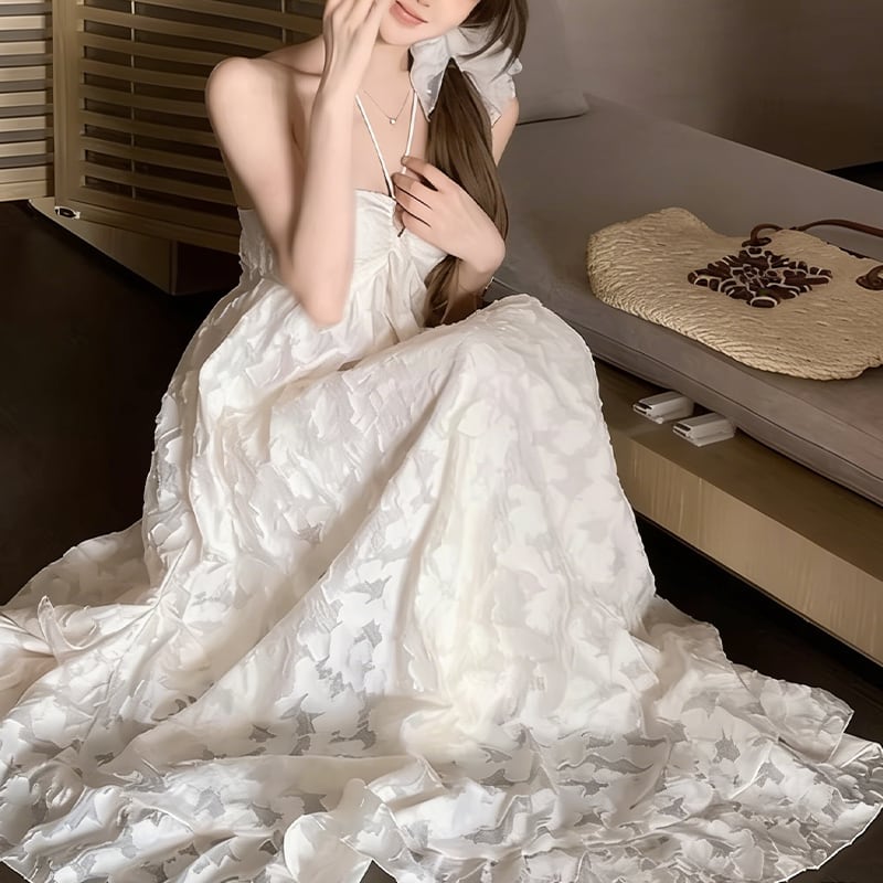 【dress】ベアバックロングレースドレス Q8011