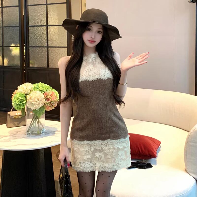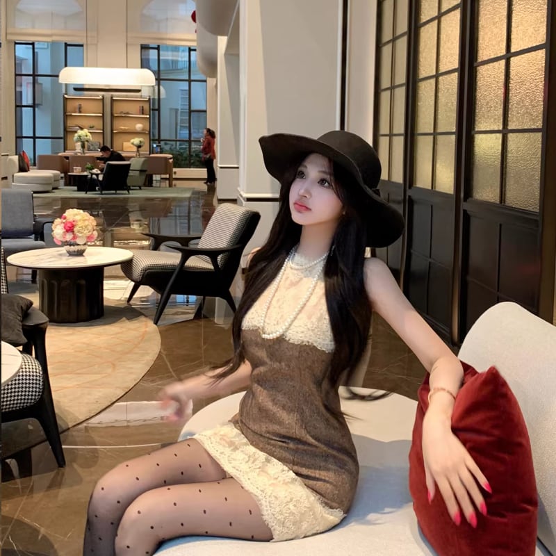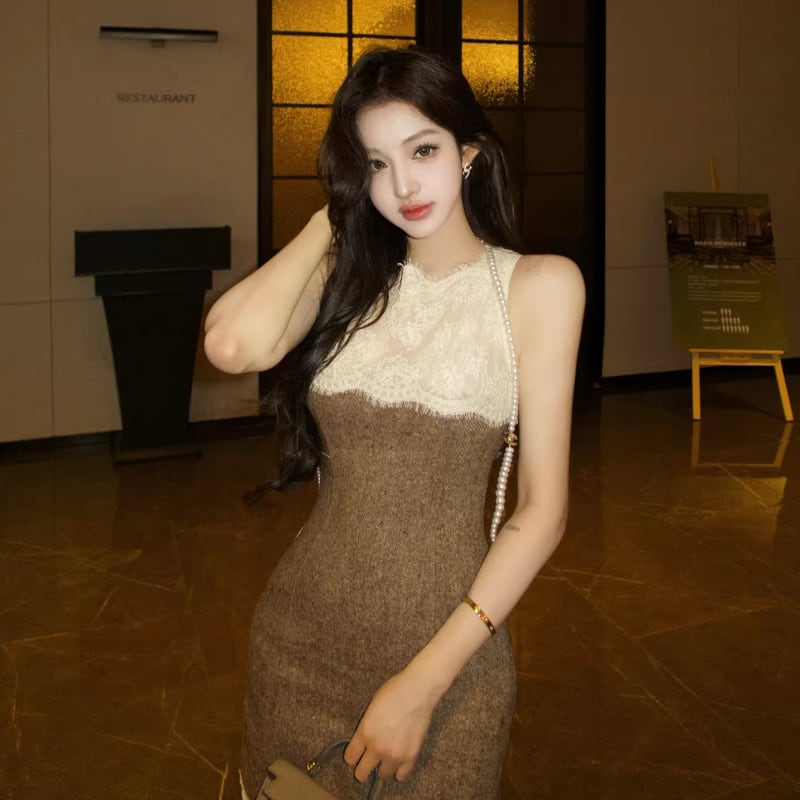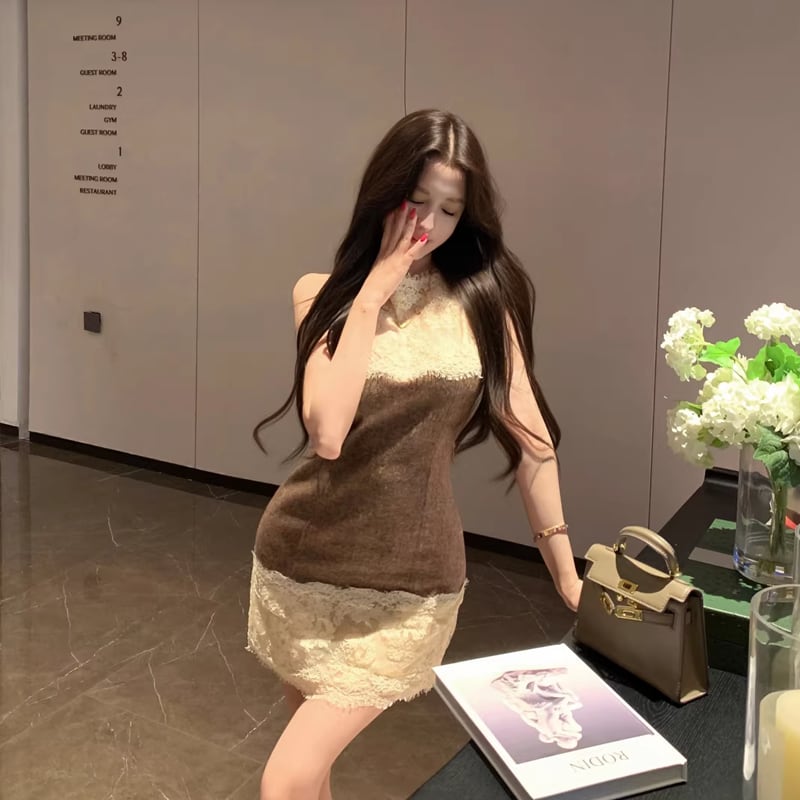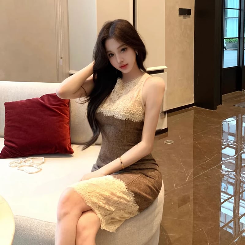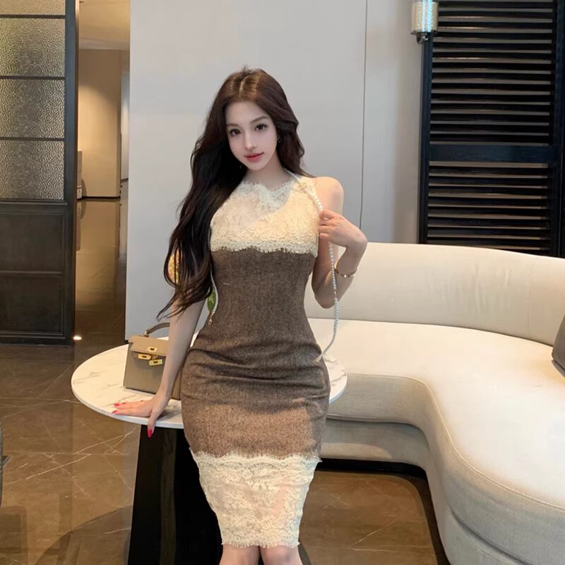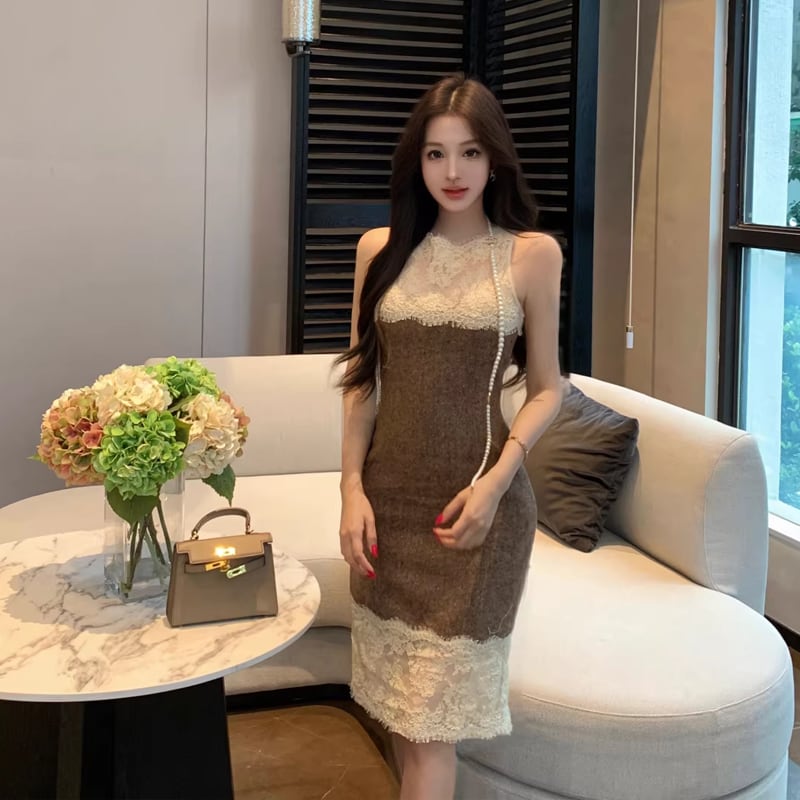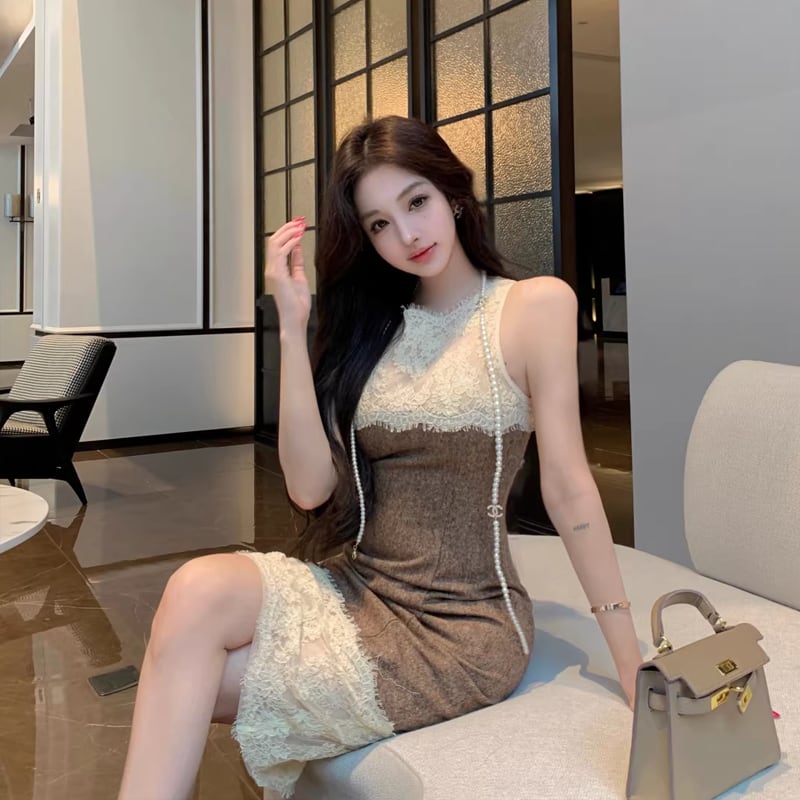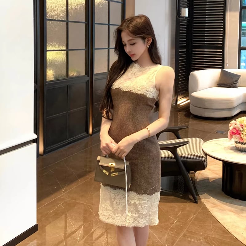 【dress】ノースリーブレースドッキングワンピース Q8023