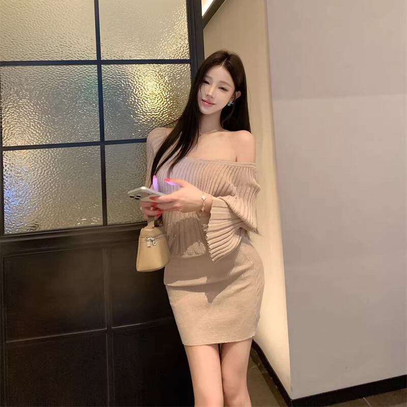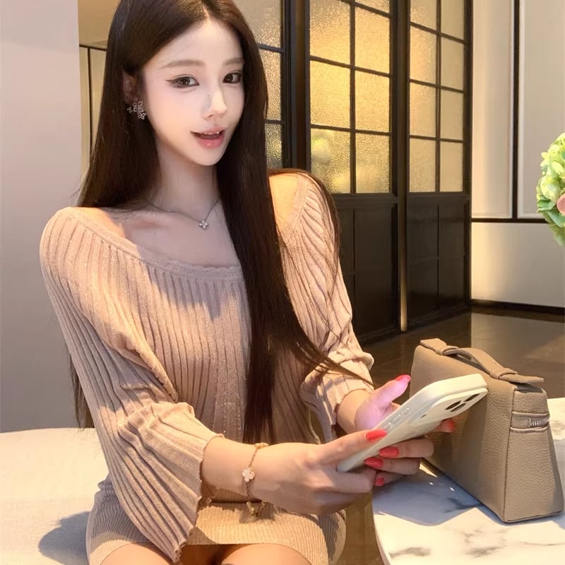 【dress】ラメ入りワンショルダーニットワンピース Q8028