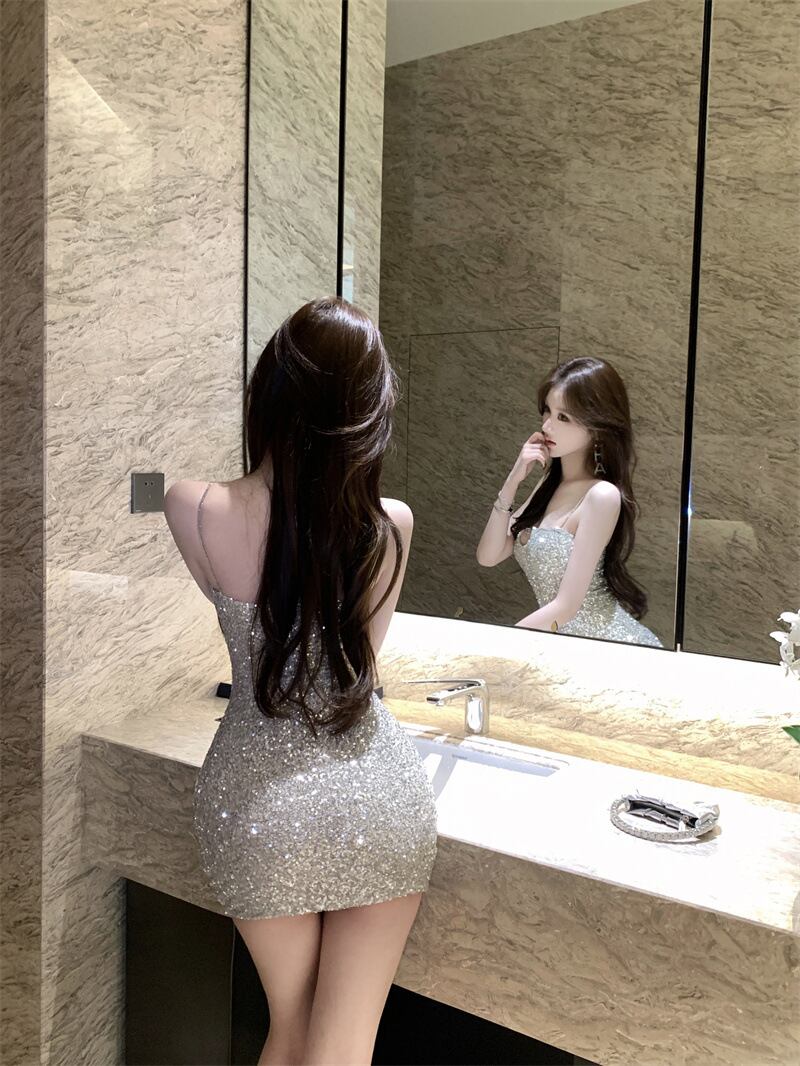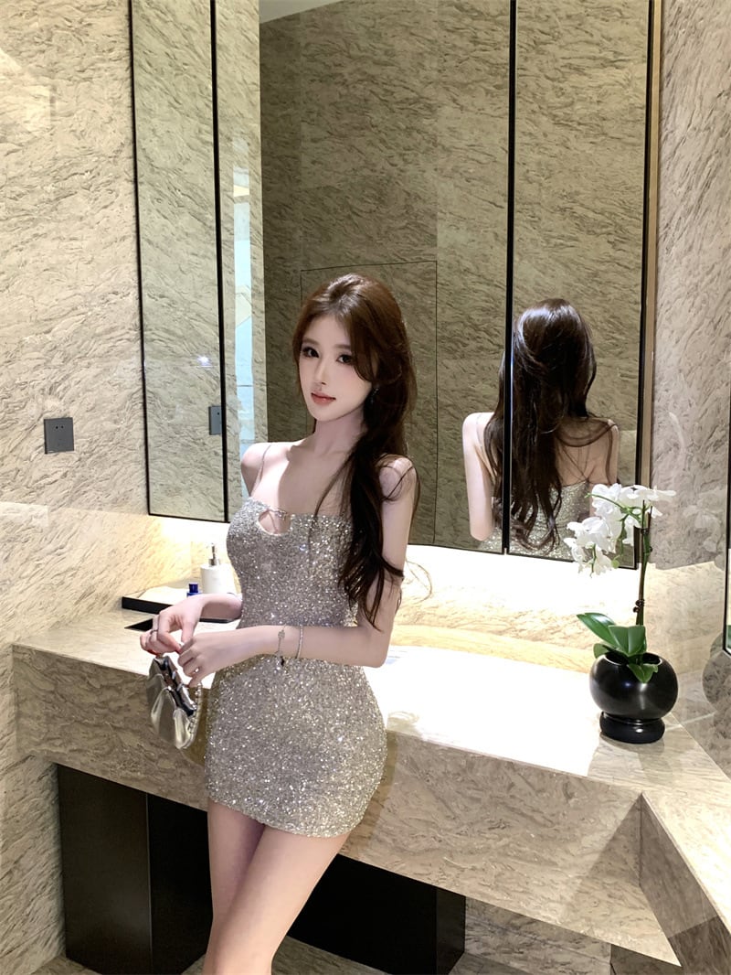 【dress】スパンコール付きタイトキャミワンピース Q8043