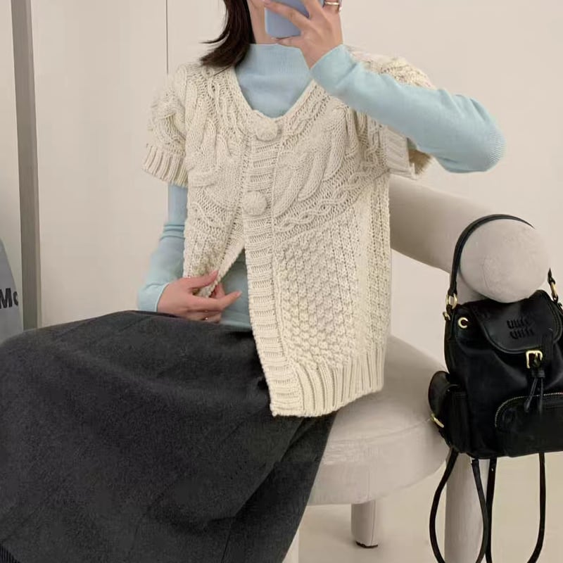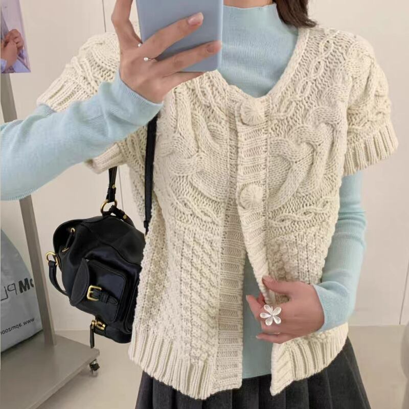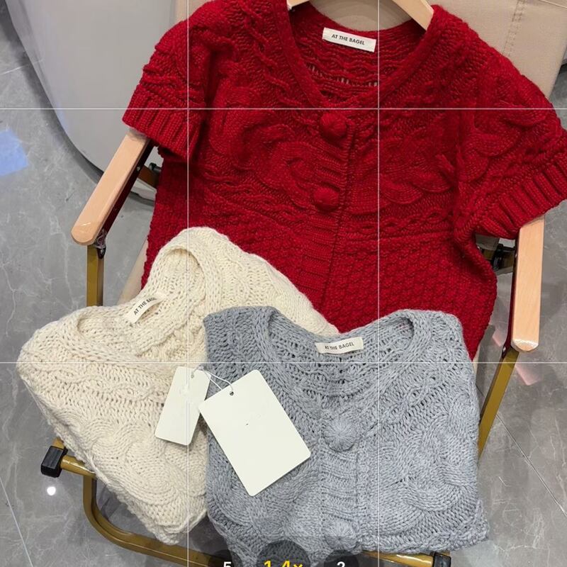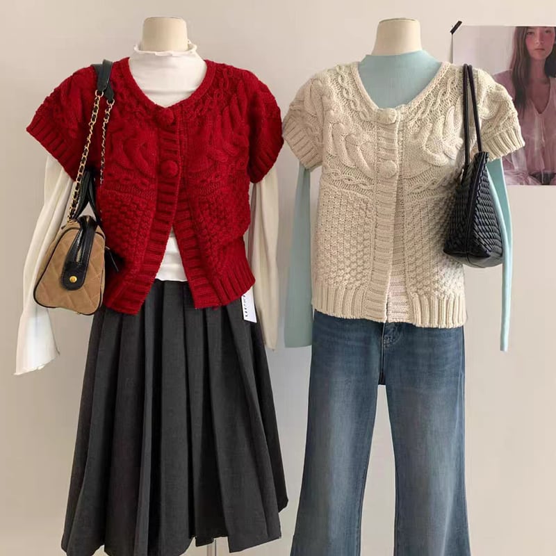 【outer】半袖ニットカーディガン Q8066