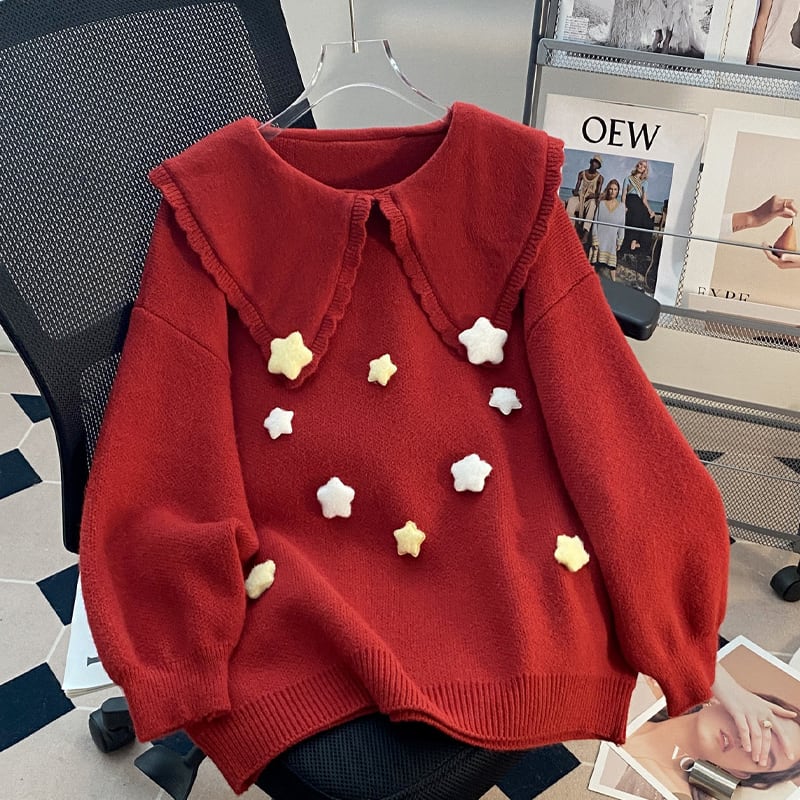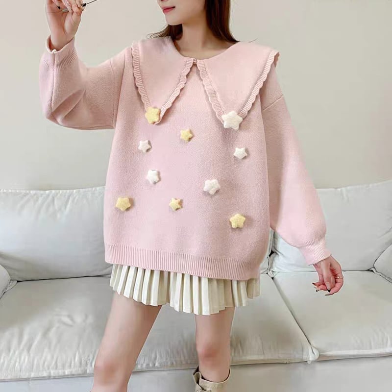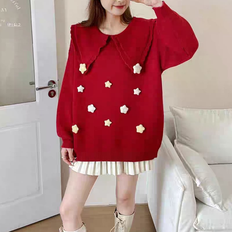【tops】ピーターパンカラーニットトップス Q8068