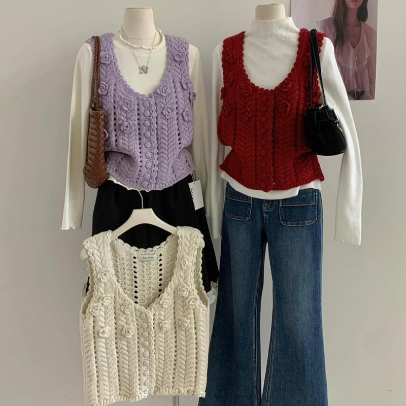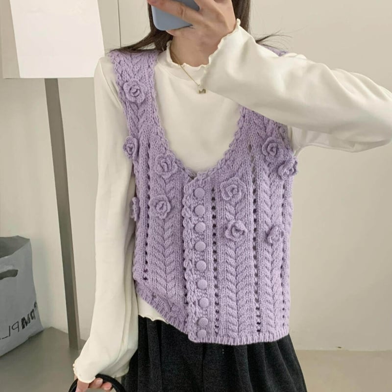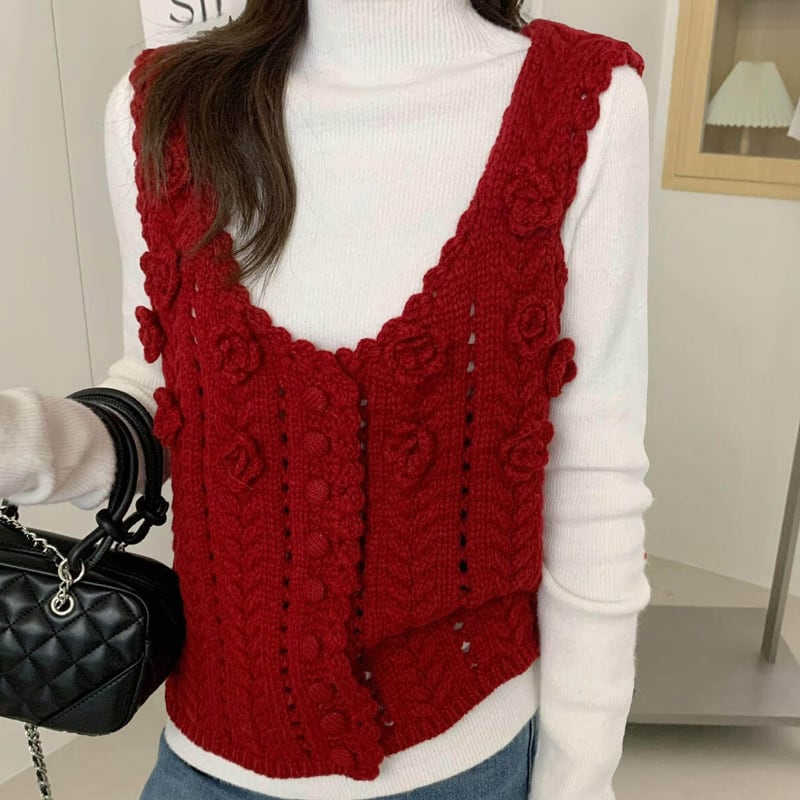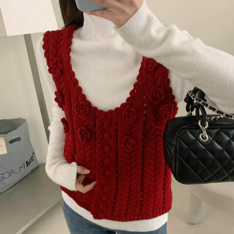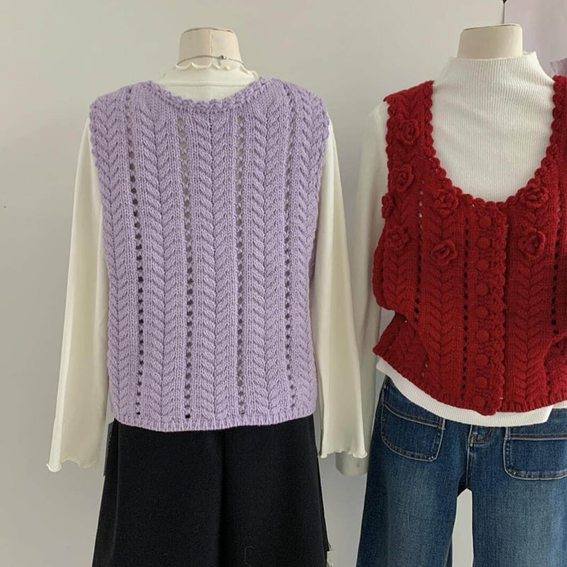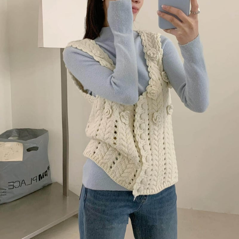 【tops】立体フラワーニットベスト Q8080