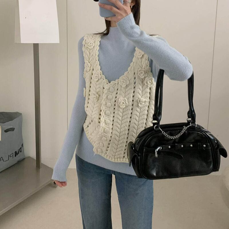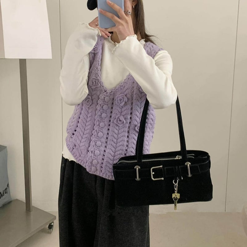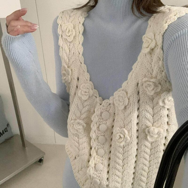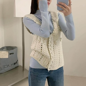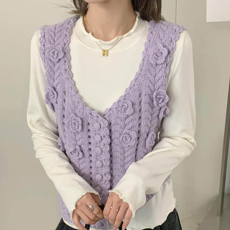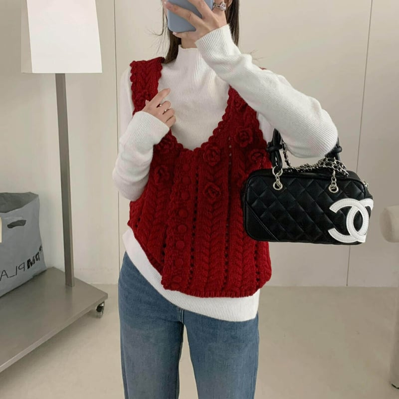 【tops】立体フラワーニットベスト Q8080