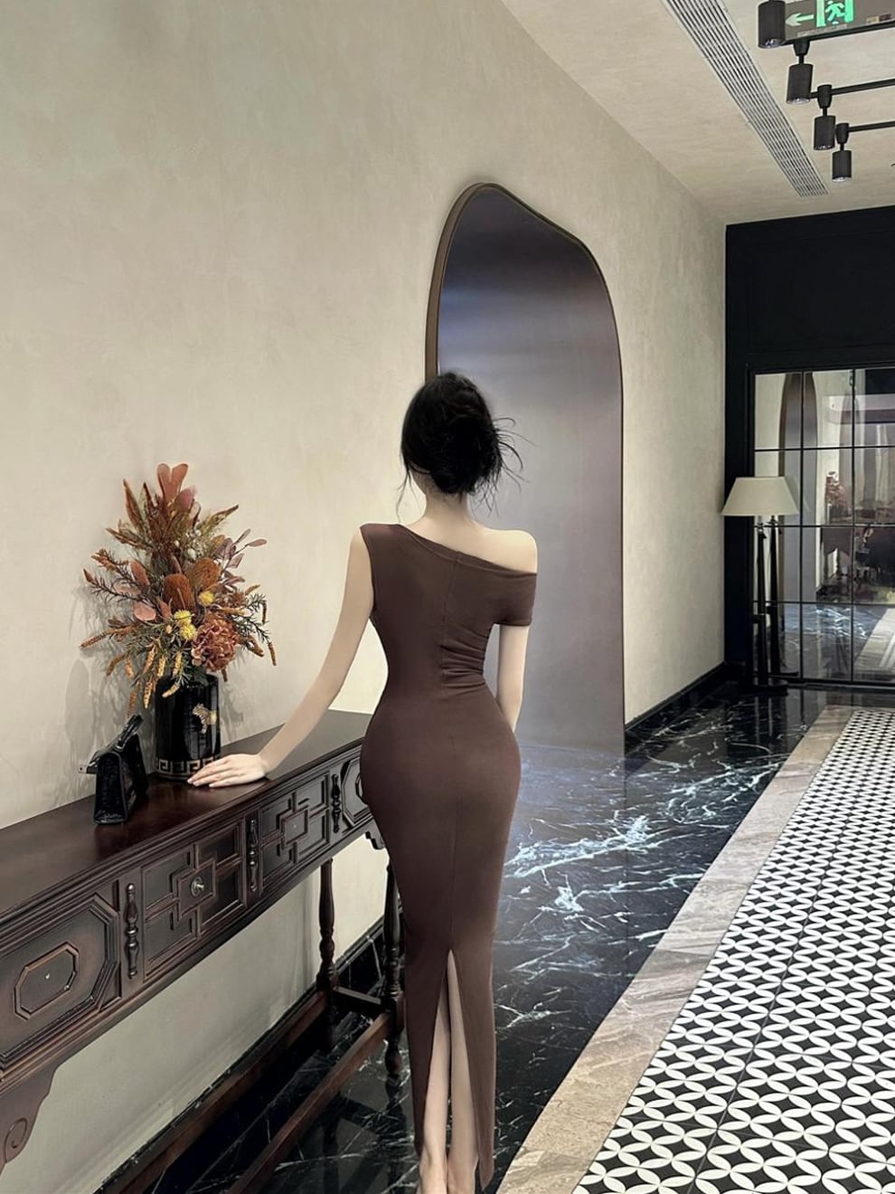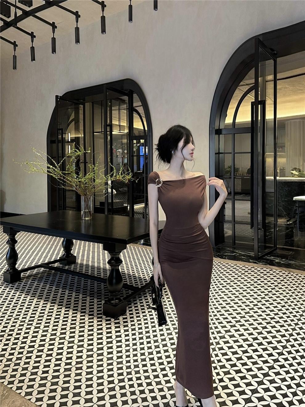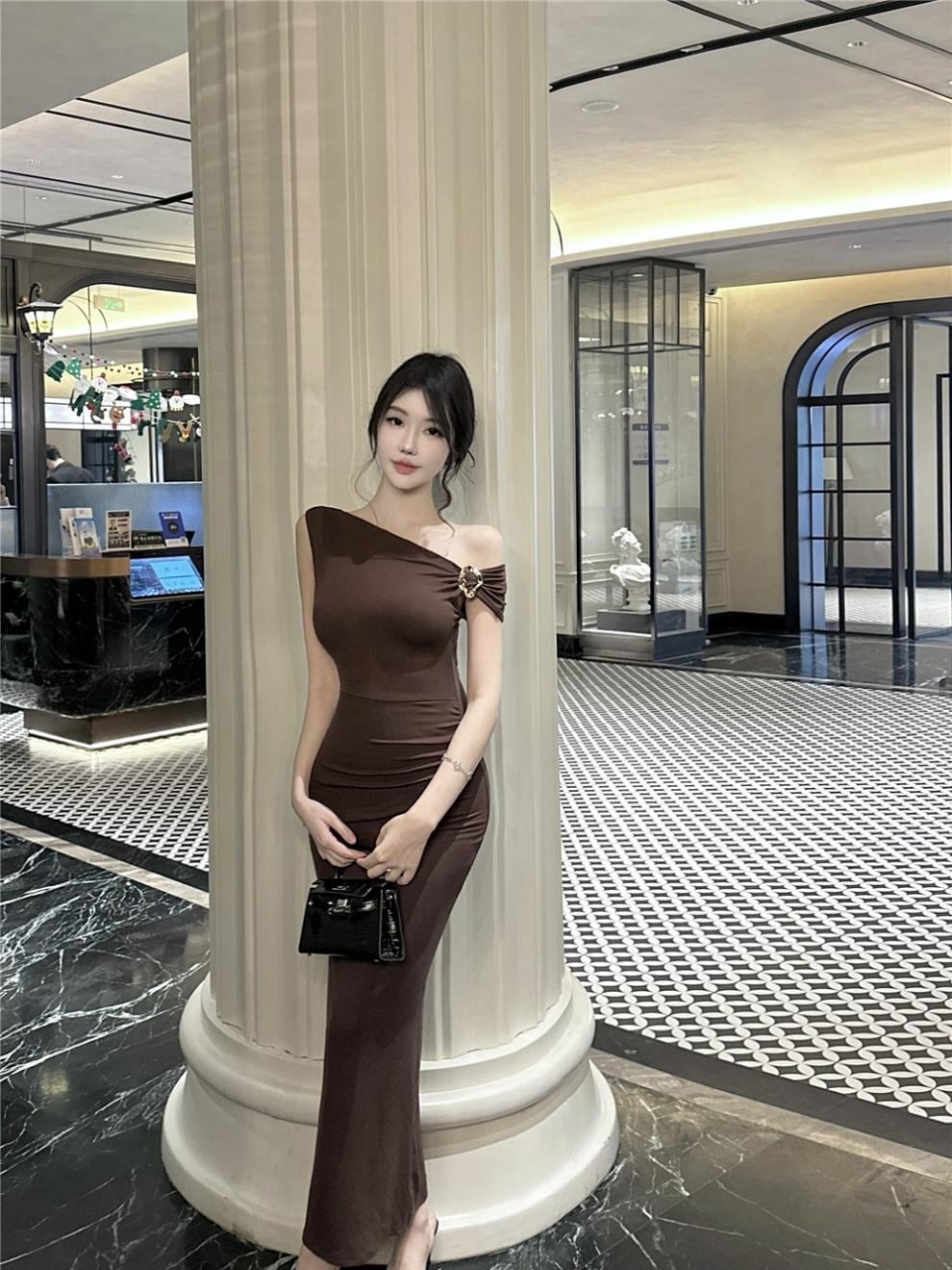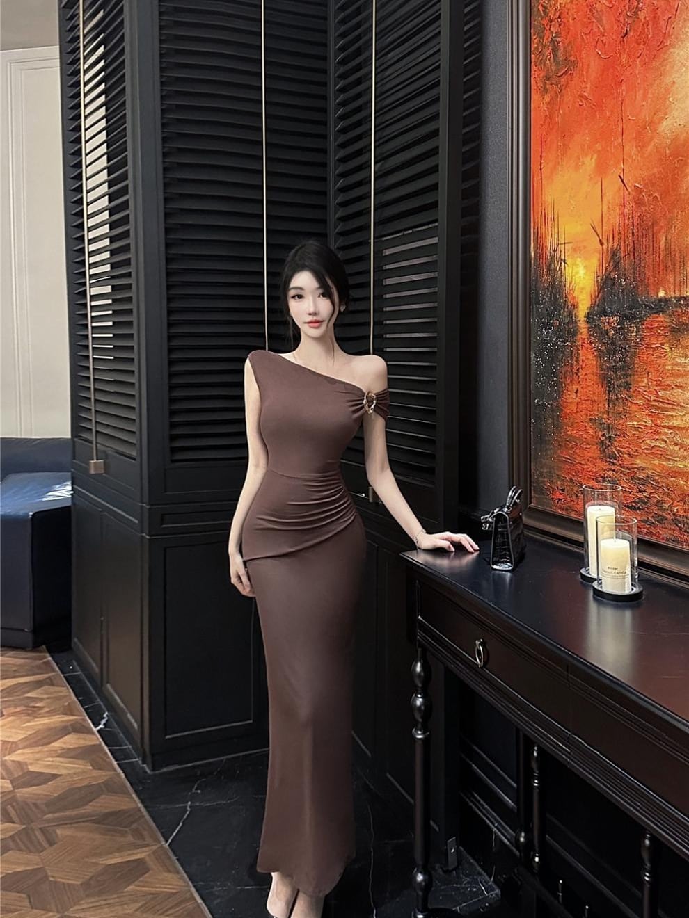 【dress】ワンショルダータイトワンピース Q8083