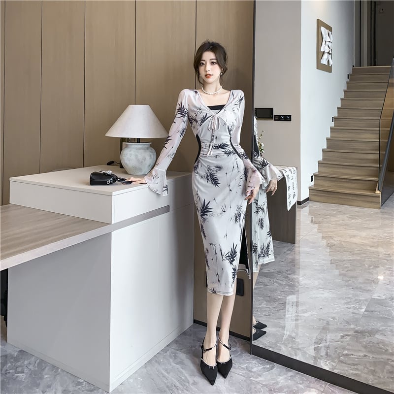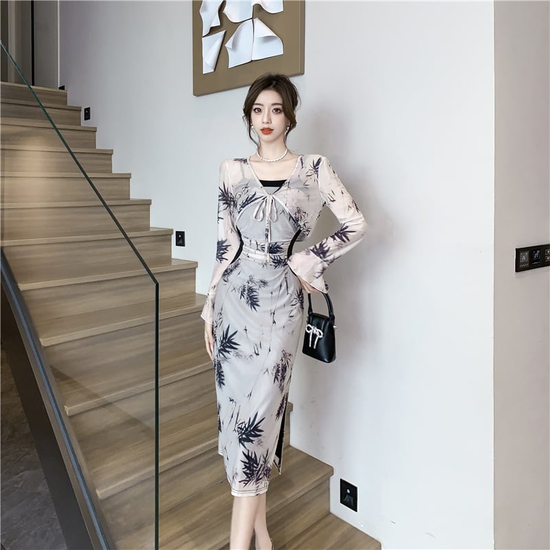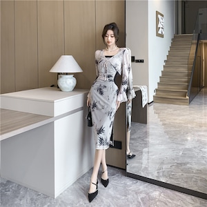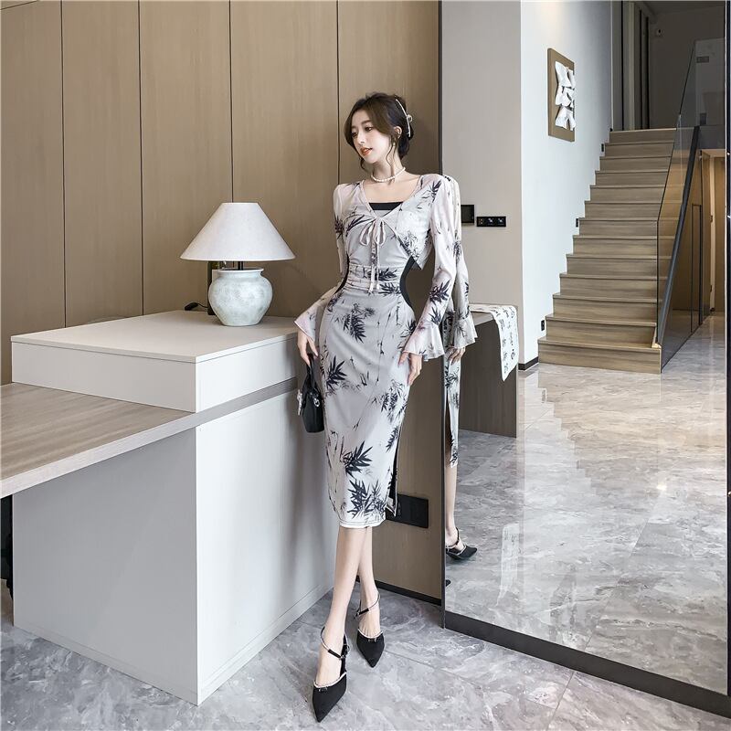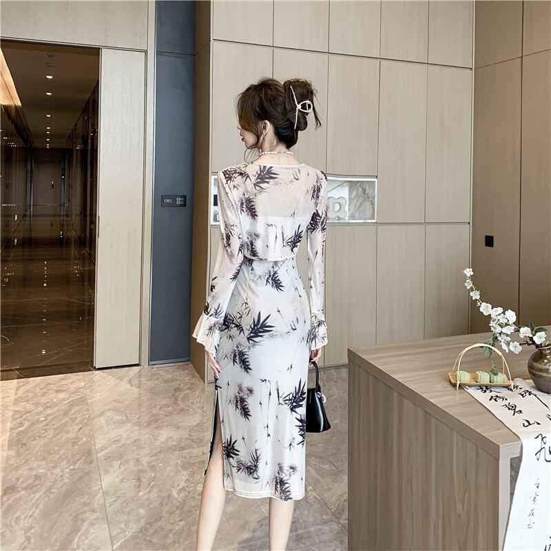 【set】フレアスリーブカーディガン×キャミワンピースセット Q8087