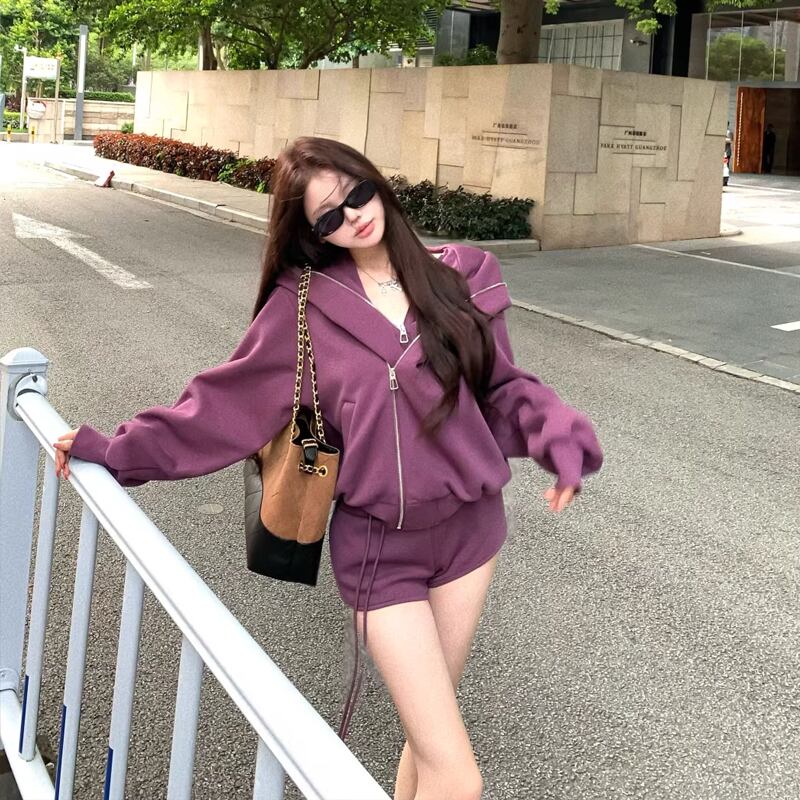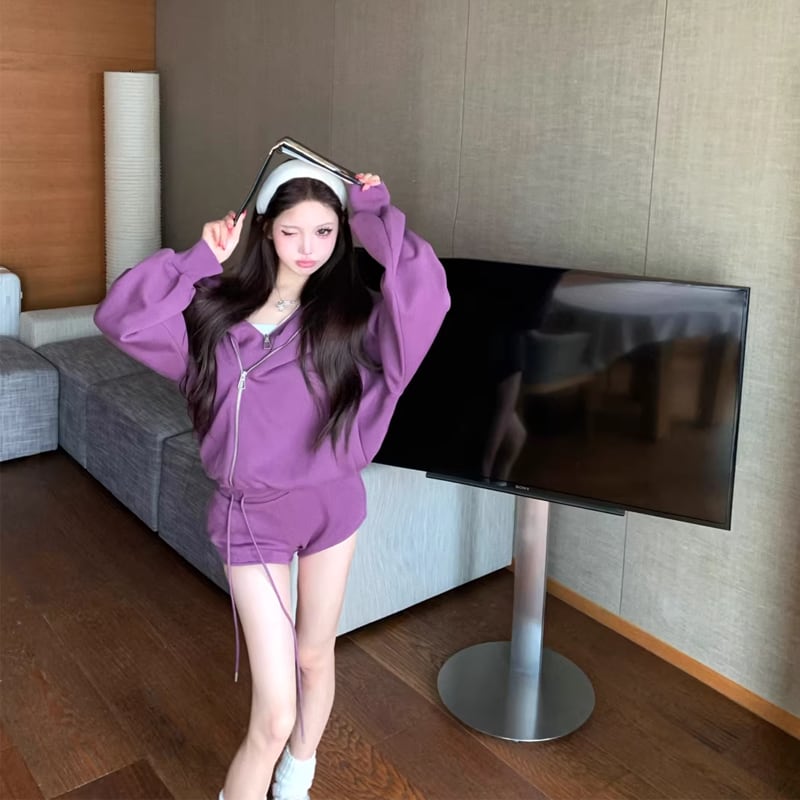 【set】ジップアップ×ショートパンツセット Q8091