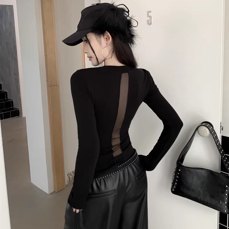 【tops】4色展開チュールドッキングトップス Q8092