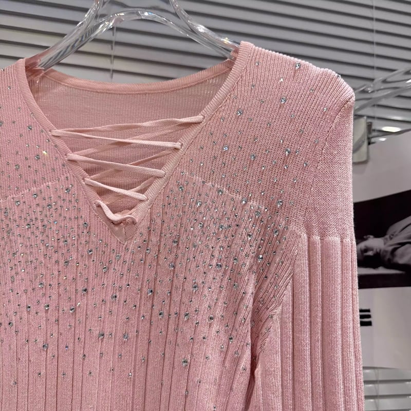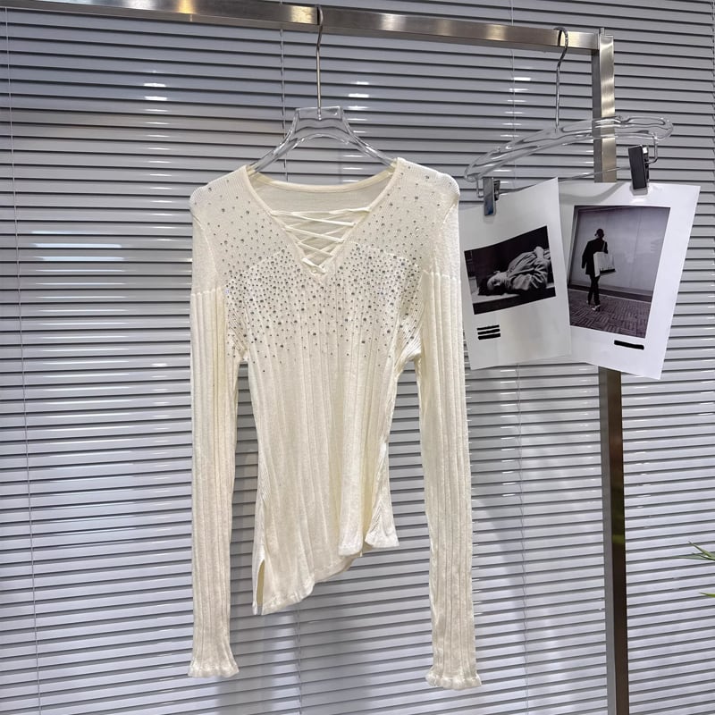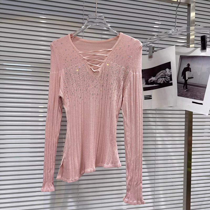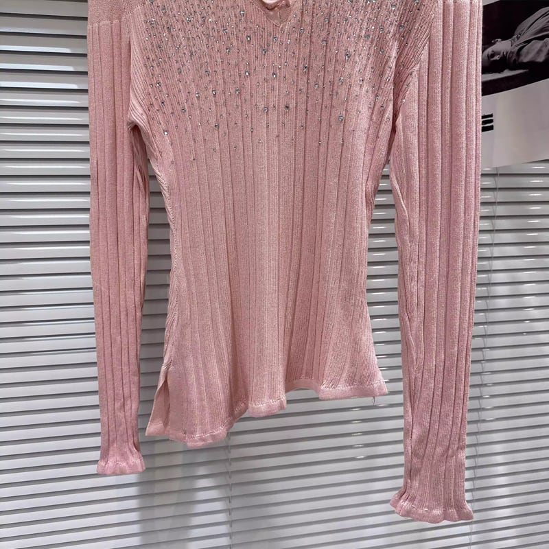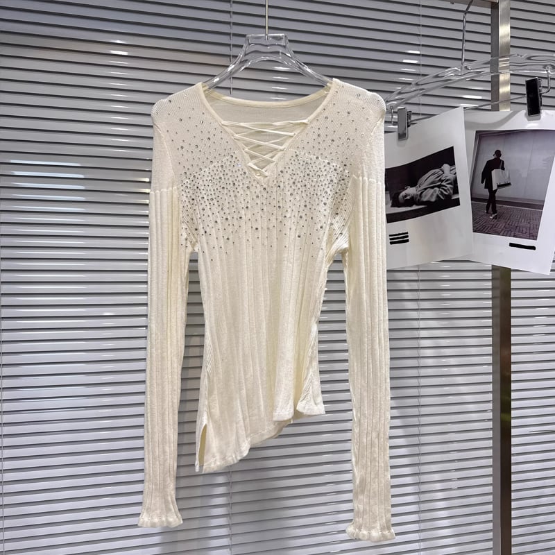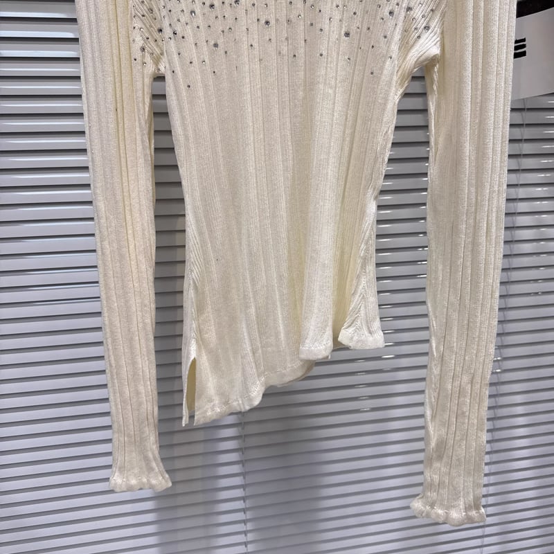 【tops】ラインストーン付きニットトップス Q8104